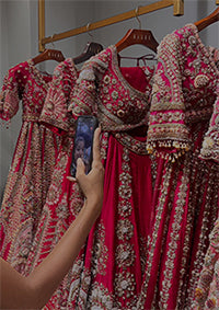 Blue Embroidered Bridal Lehenga And Blouse Set In Crushed Shimmer
