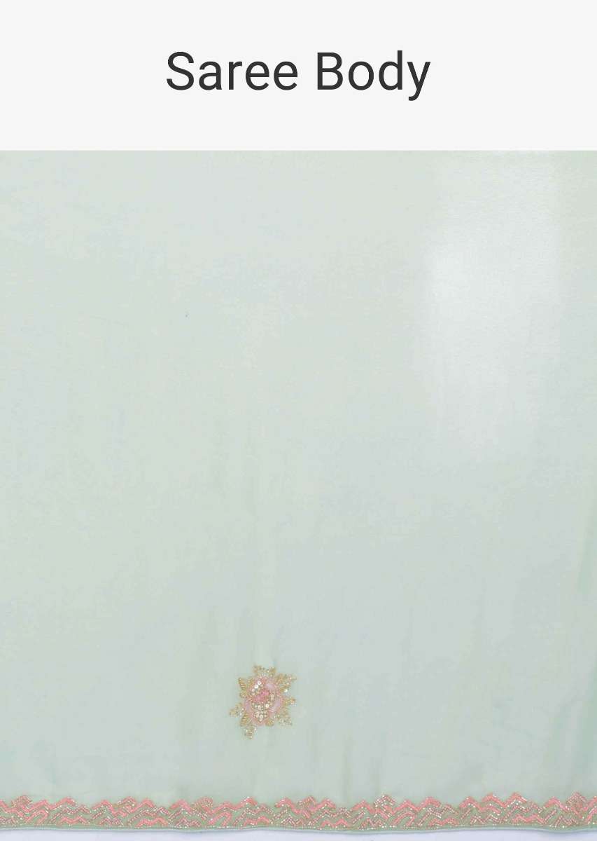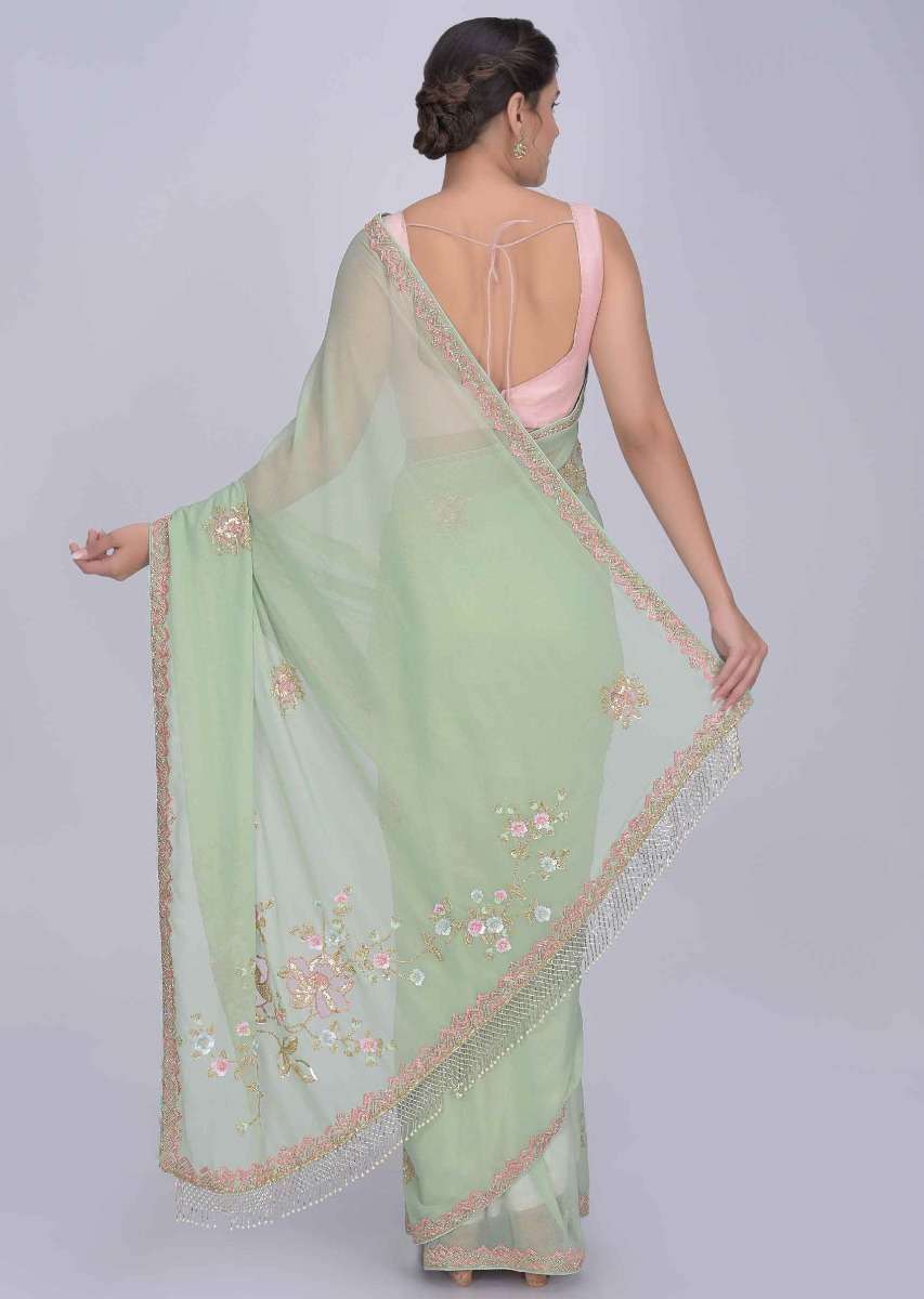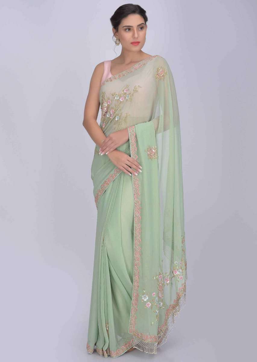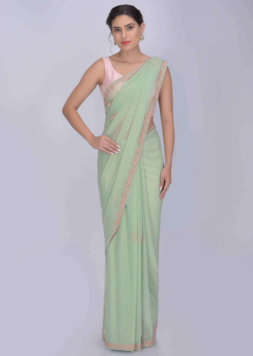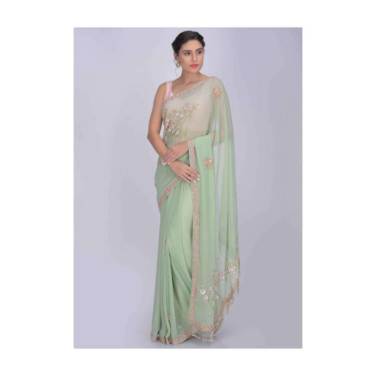 Acadia Green Saree In Shimmer Georgette With Matching Blouse Piece Online - Kalki Fashion