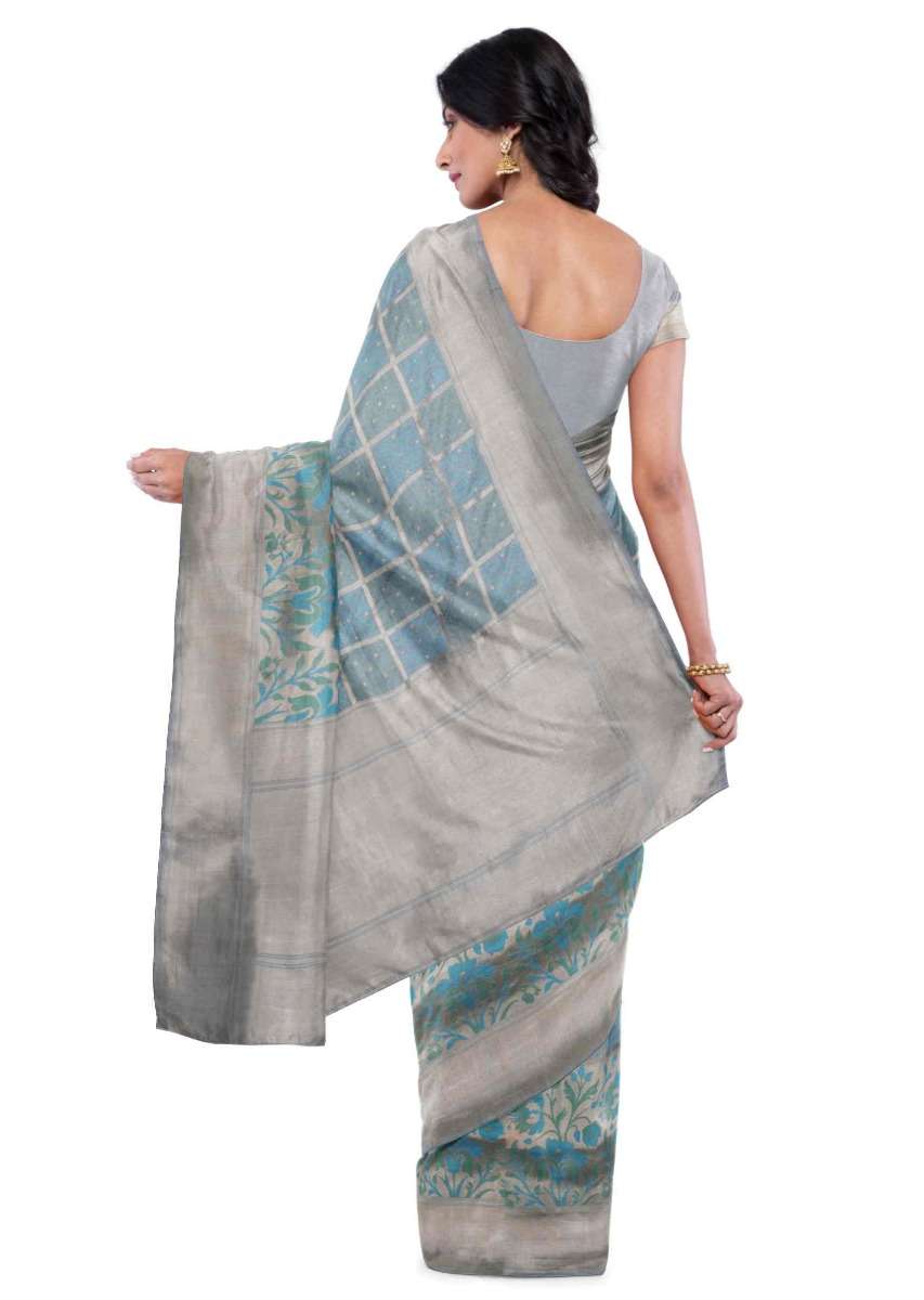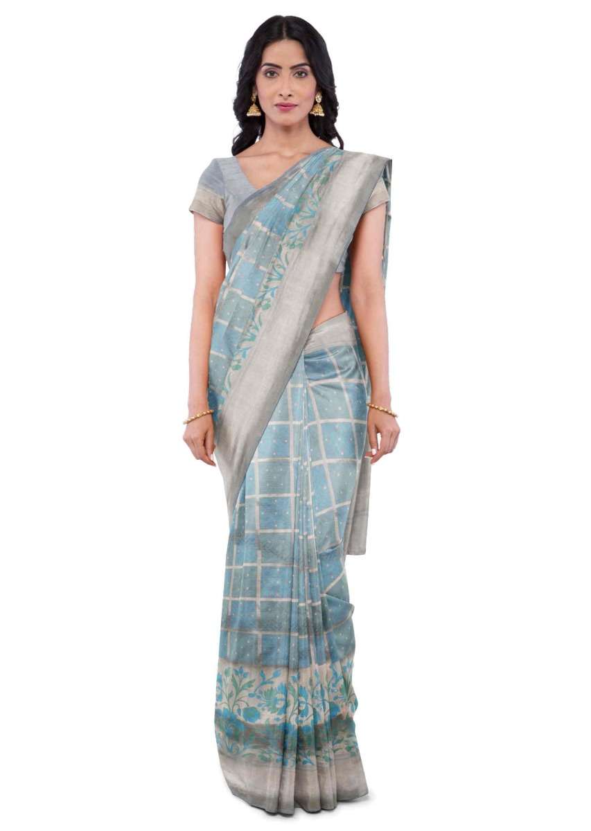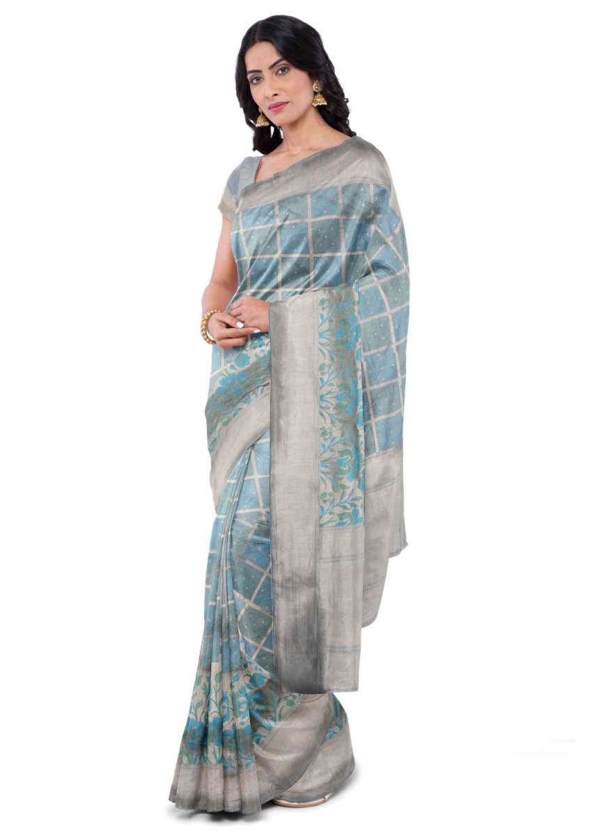Airforce Blue Banarasi Saree With Matching Blouse Piece Online - Kalki Fashion