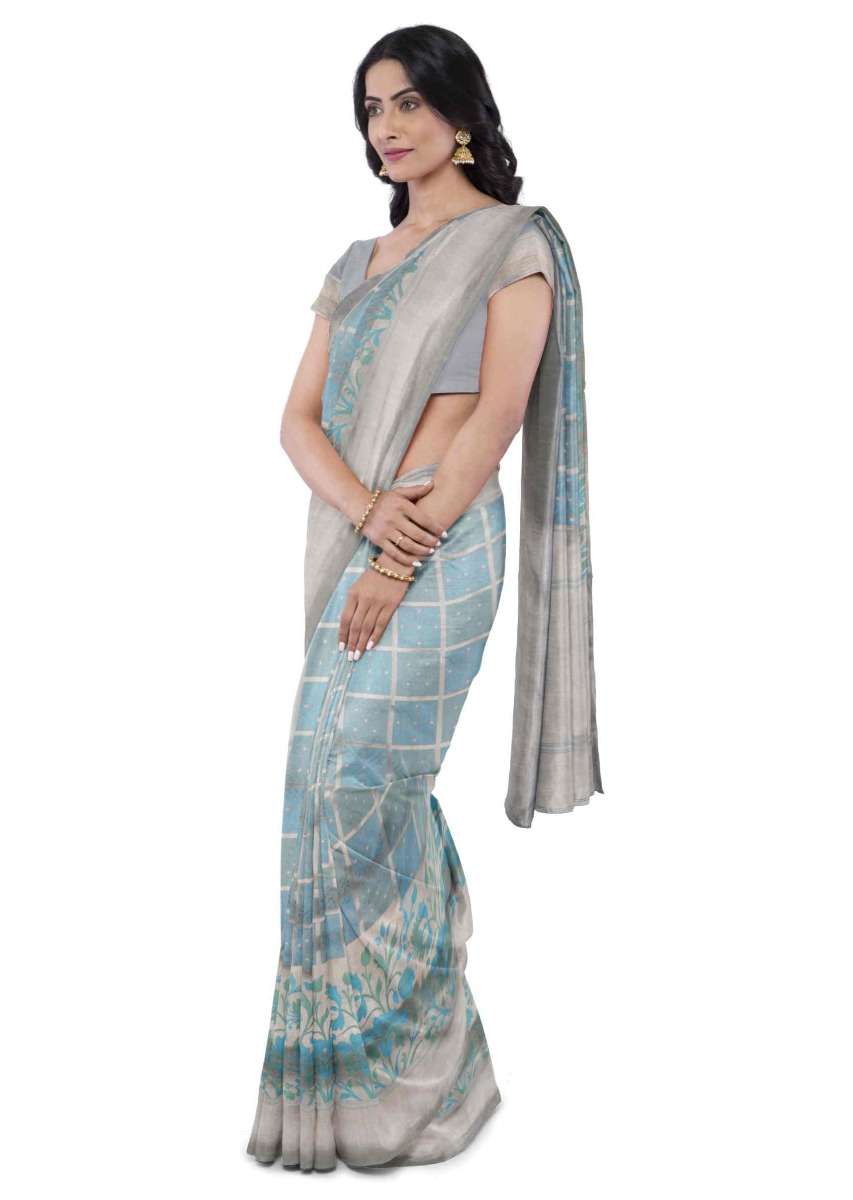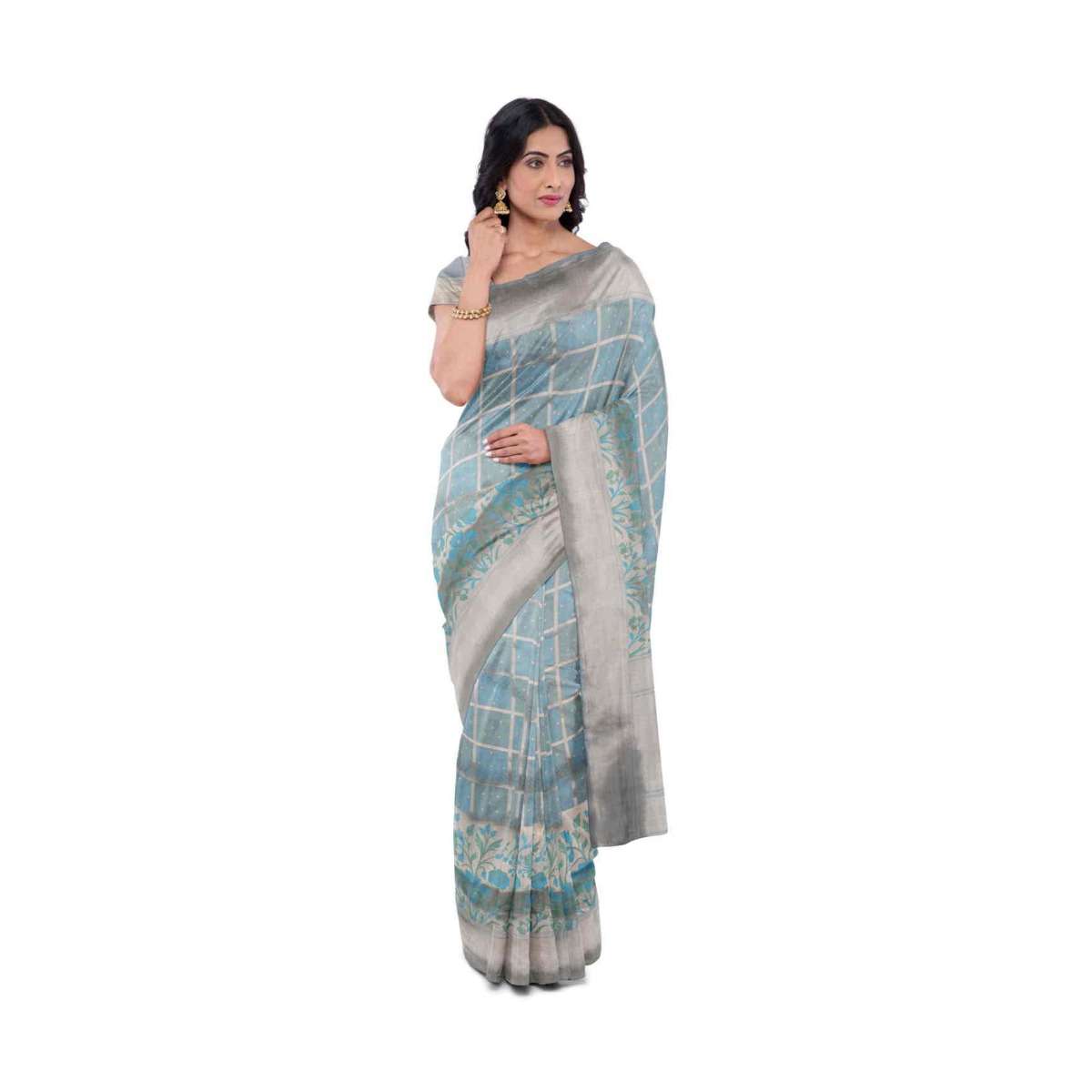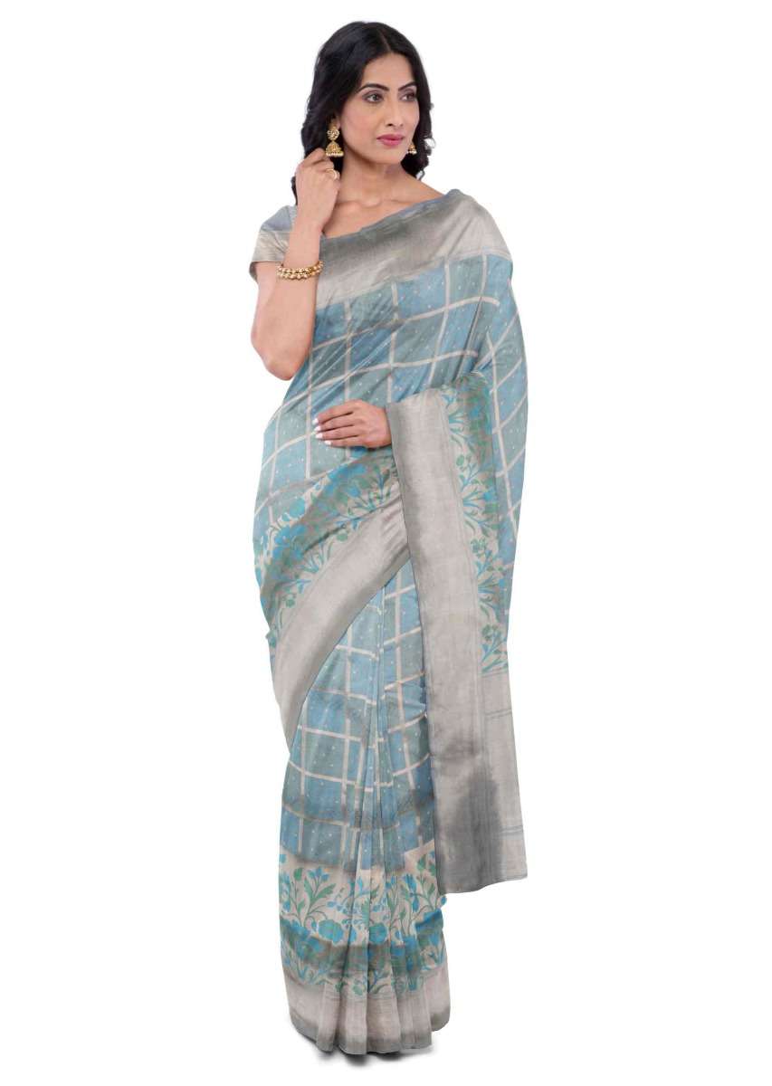 Airforce Blue Banarasi Saree With Matching Blouse Piece Online - Kalki Fashion