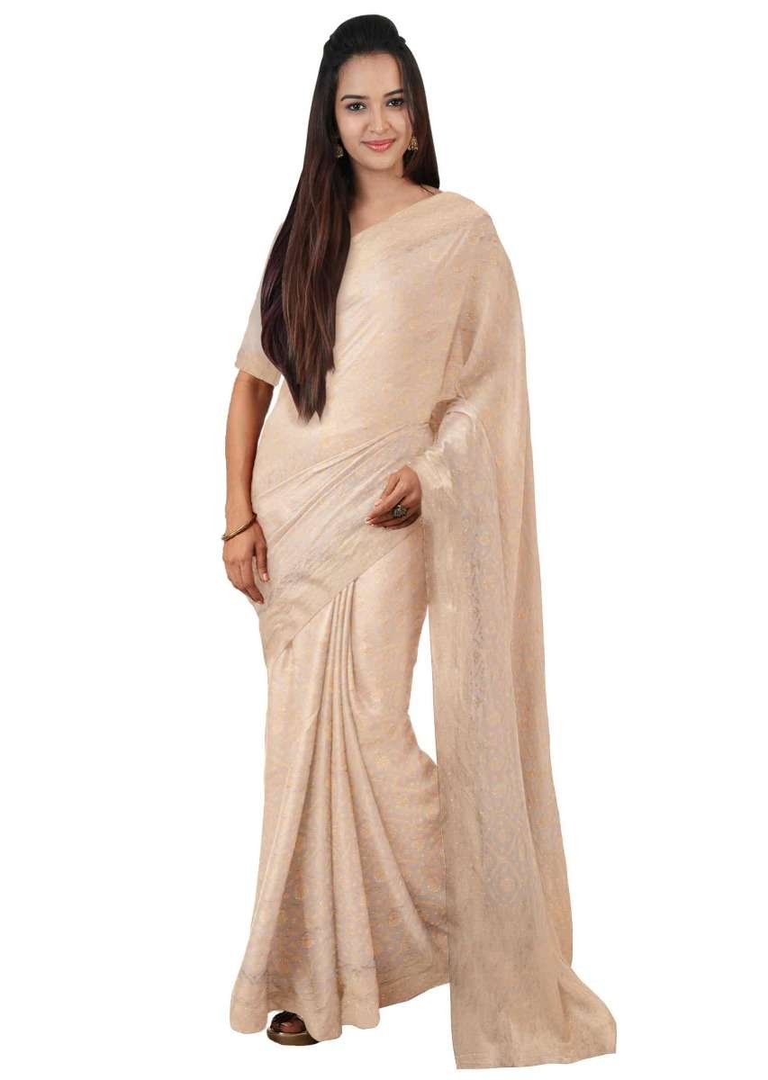 Alabaster White Banarasi Saree In Georgette With Matching Blouse Piece Online - Kalki Fashion