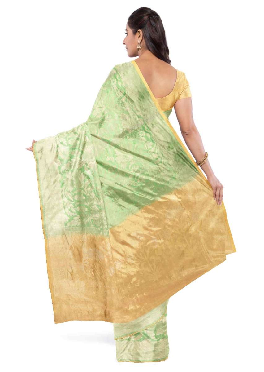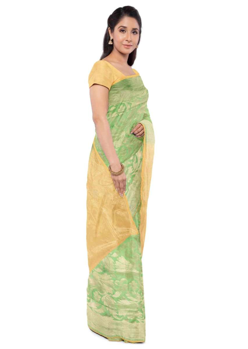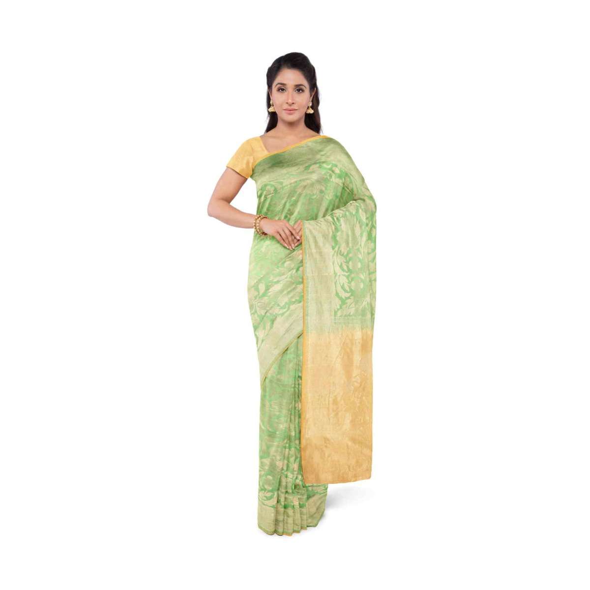 Apple Green Saree In Banarasi Silk With Yellow Silk Blouse Online - Kalki Fashion