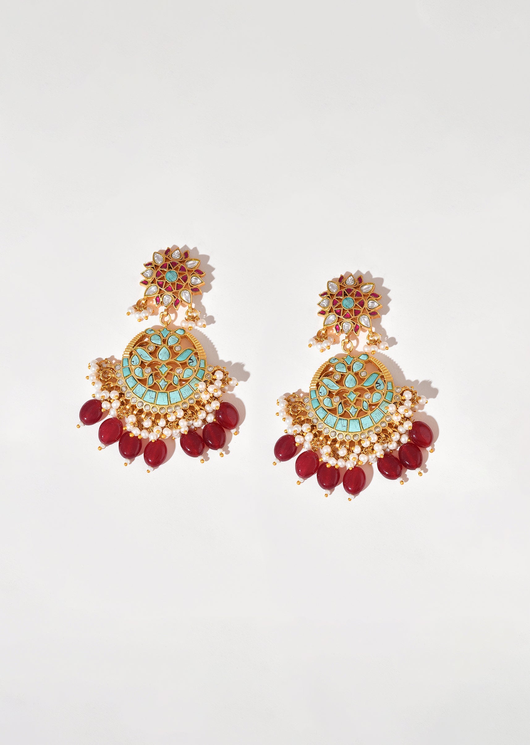 These aqua blue multi colored earrings feature intricate pachi kundan work for a vibrant and festive look. Perfect for weddings, mehendi, or festive celebrations, they add a playful yet elegant touch to traditional outfits. The combination of aqua and colorful tones creates a statement piece that enhances ethnic ensembles beautifully.Awarded as the Most Trusted Brand, we're delivering styles you love, just as promised.