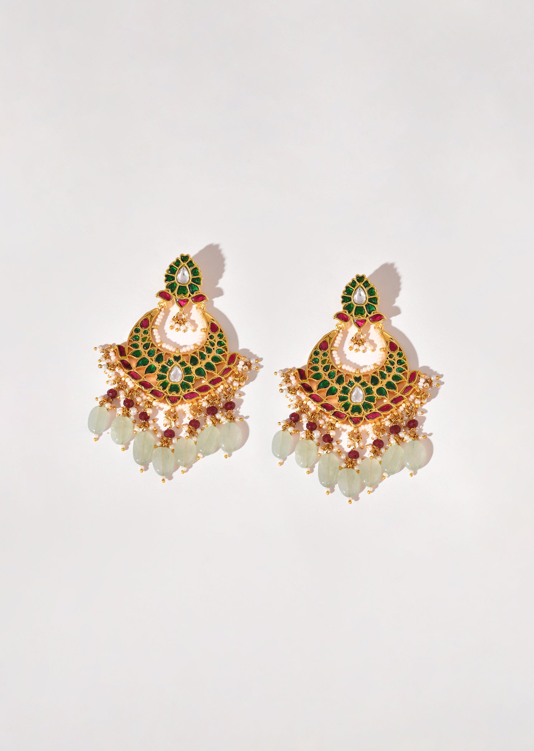 These aqua blue multi colored earrings feature intricate pachi kundan work for a vibrant and festive appeal. Perfect for weddings, mehendi, or festive celebrations, they add charm and elegance to... More Product Details