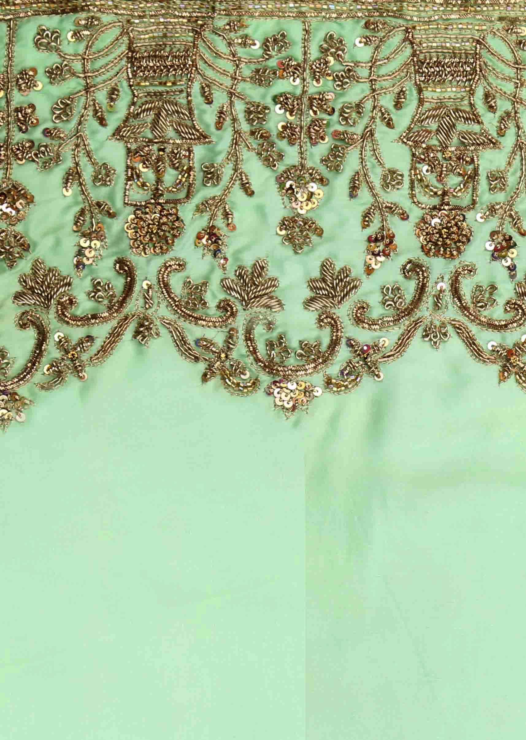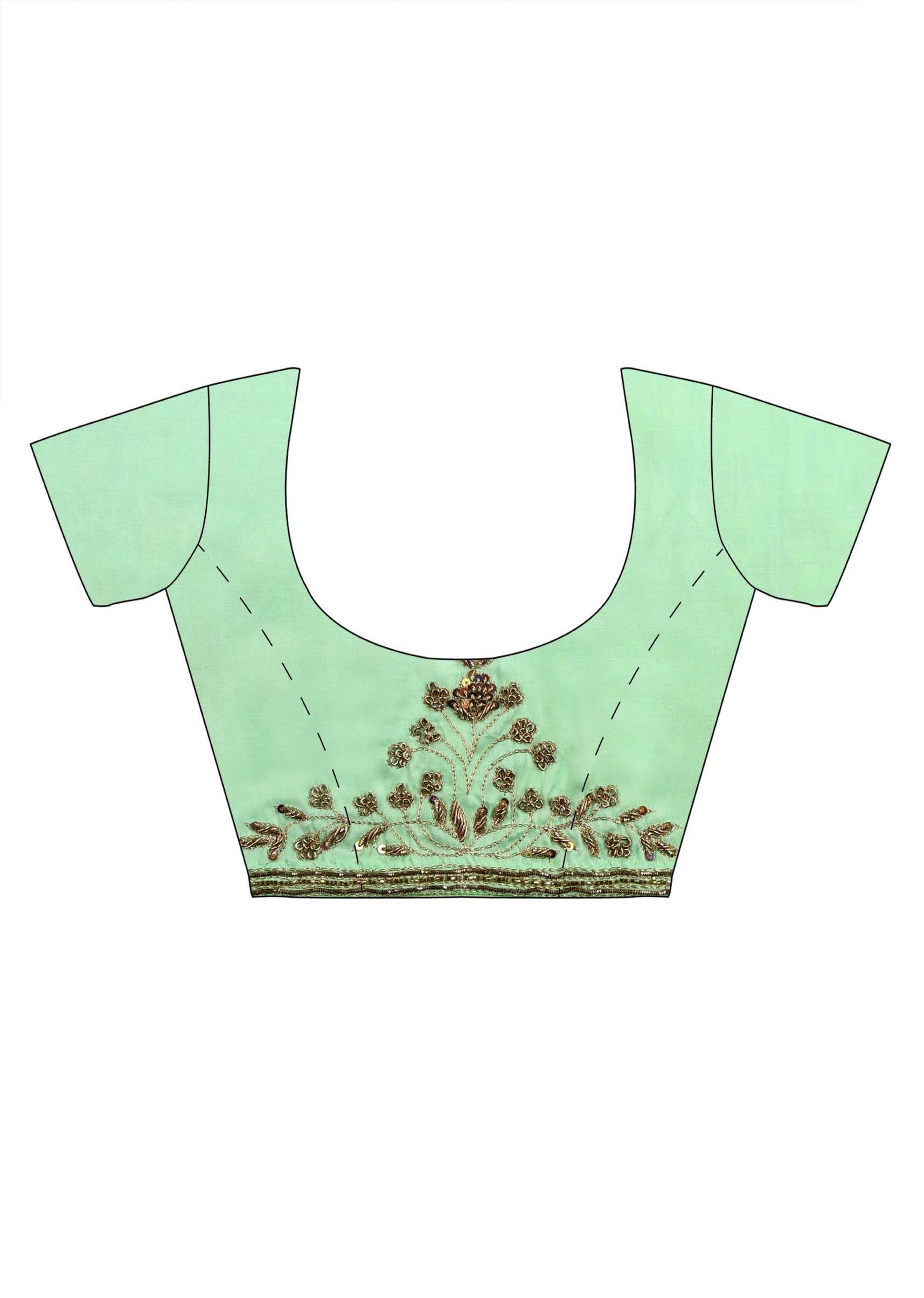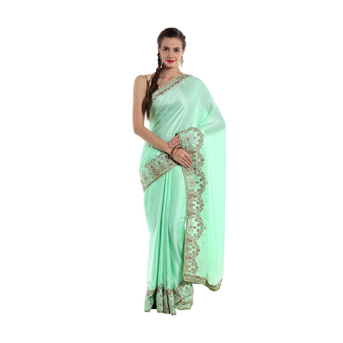Aqua Blue Saree In Satin Decorated With Ornate Zardosi Work Online - Kalki Fashion