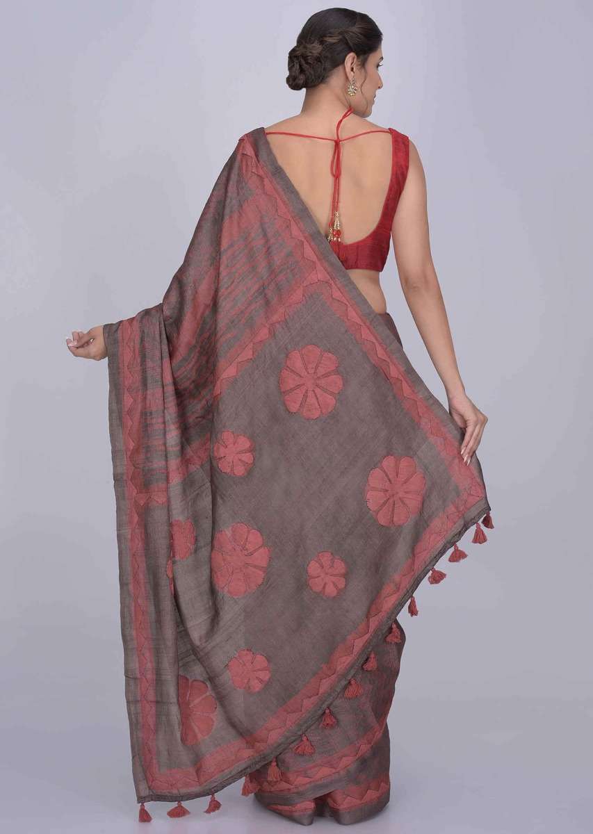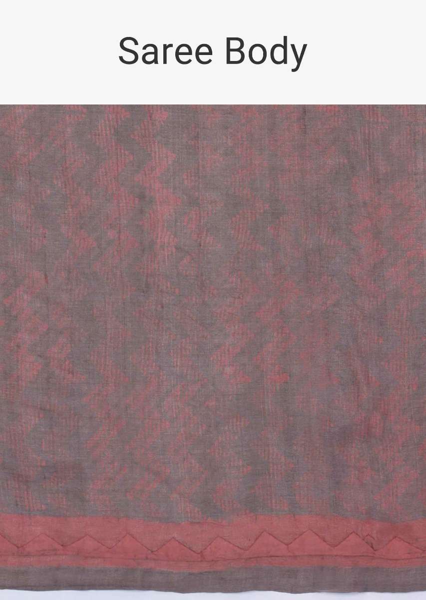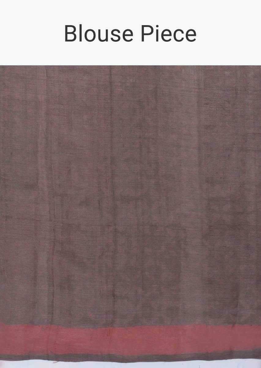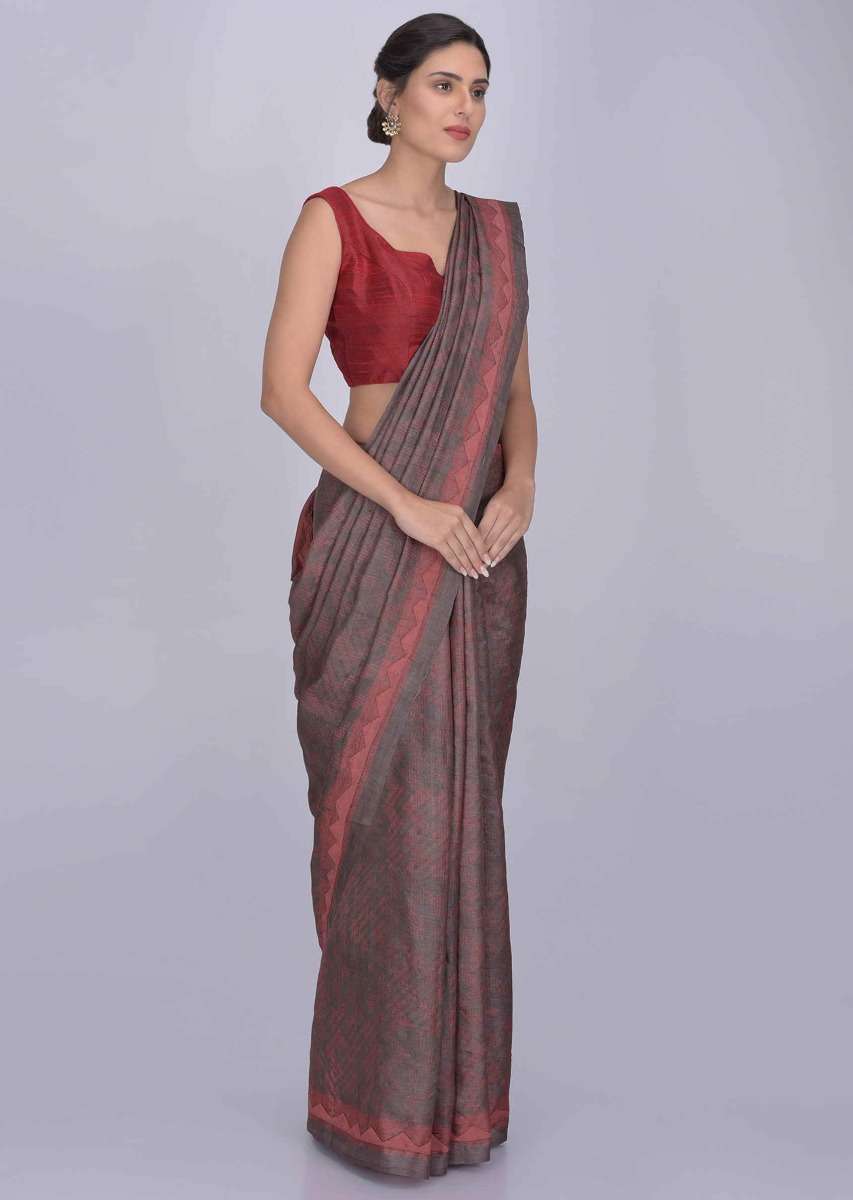 Ash Grey And Red Saree In Tussar Silk With Batik Print Online - Kalki Fashion