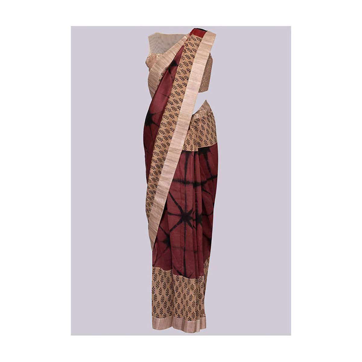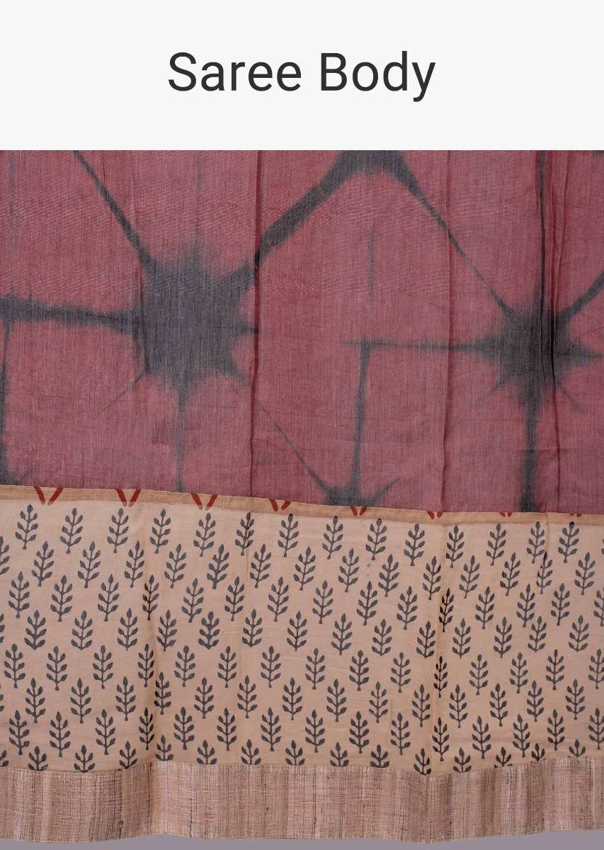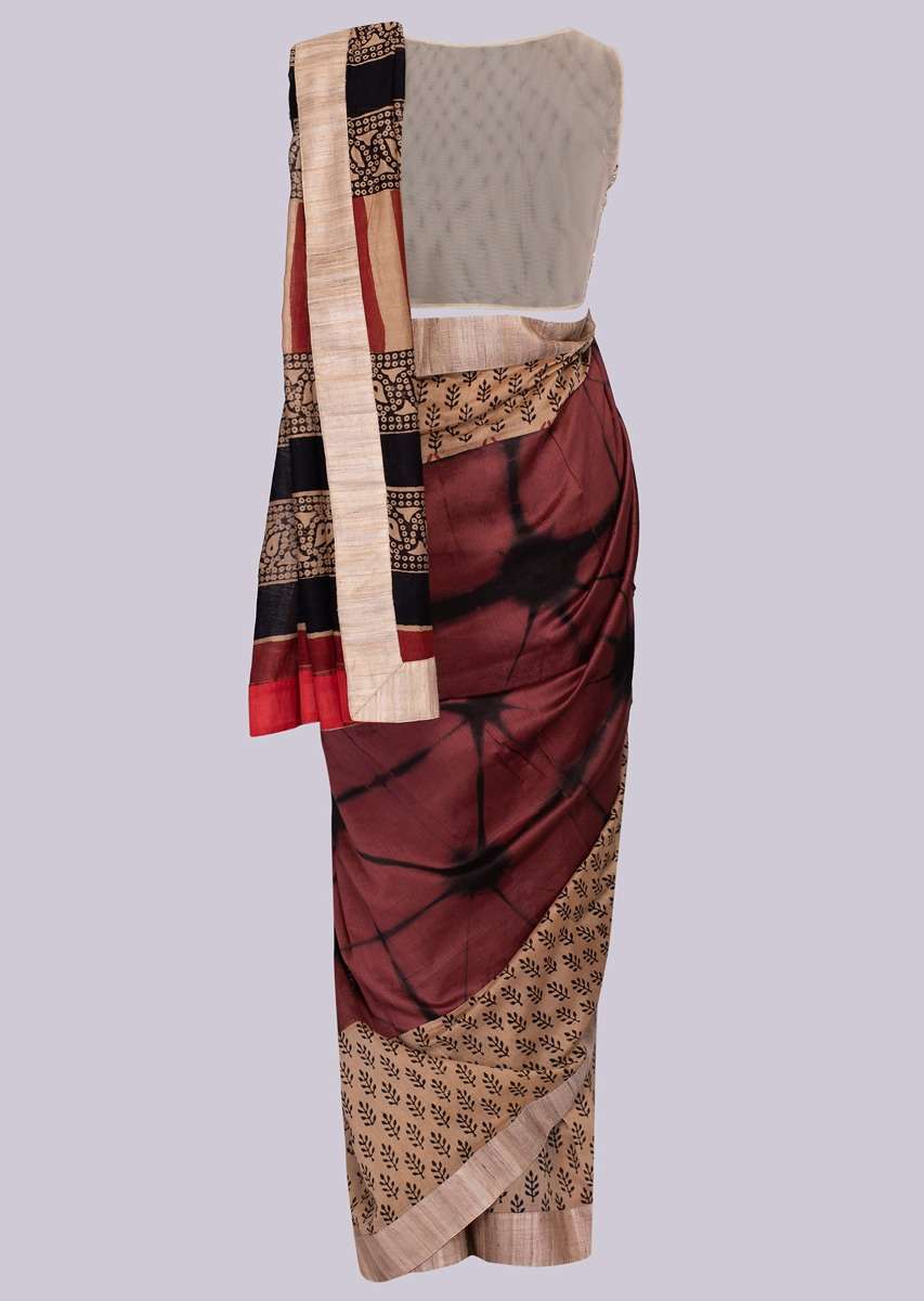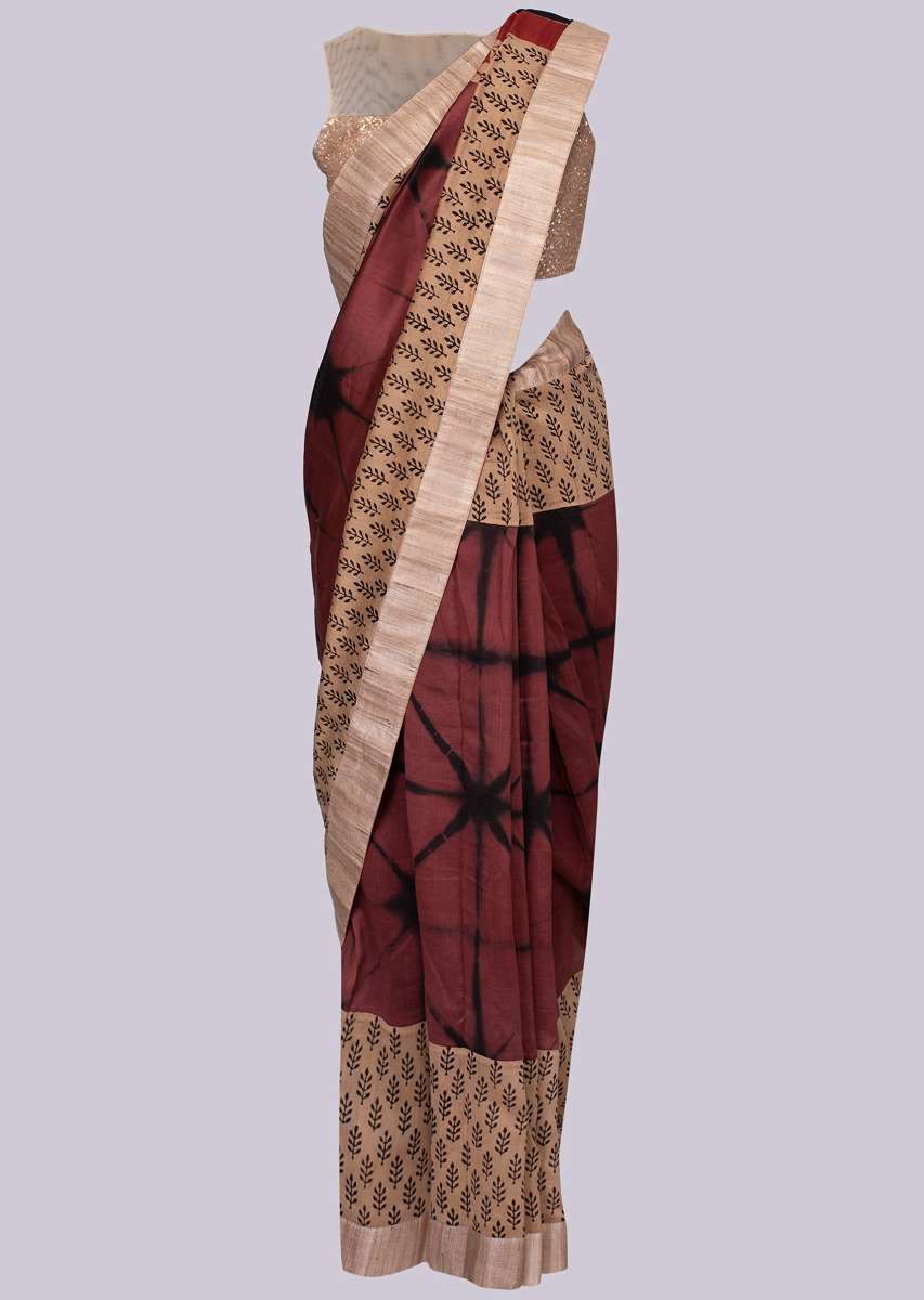 Beige And Rust Saree With Batik Print And Tie And Dye Pattern Online - Kalki Fashion