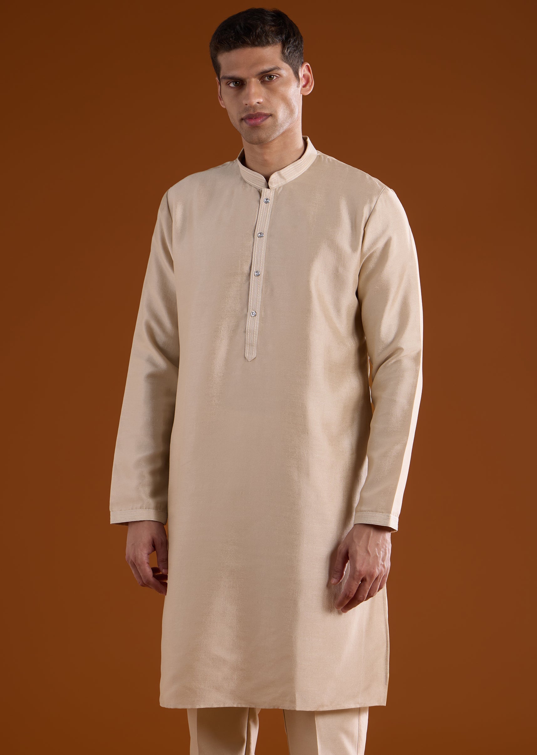 Beige Silk Mens Kurta Jacket Set With Thread And Motif Work