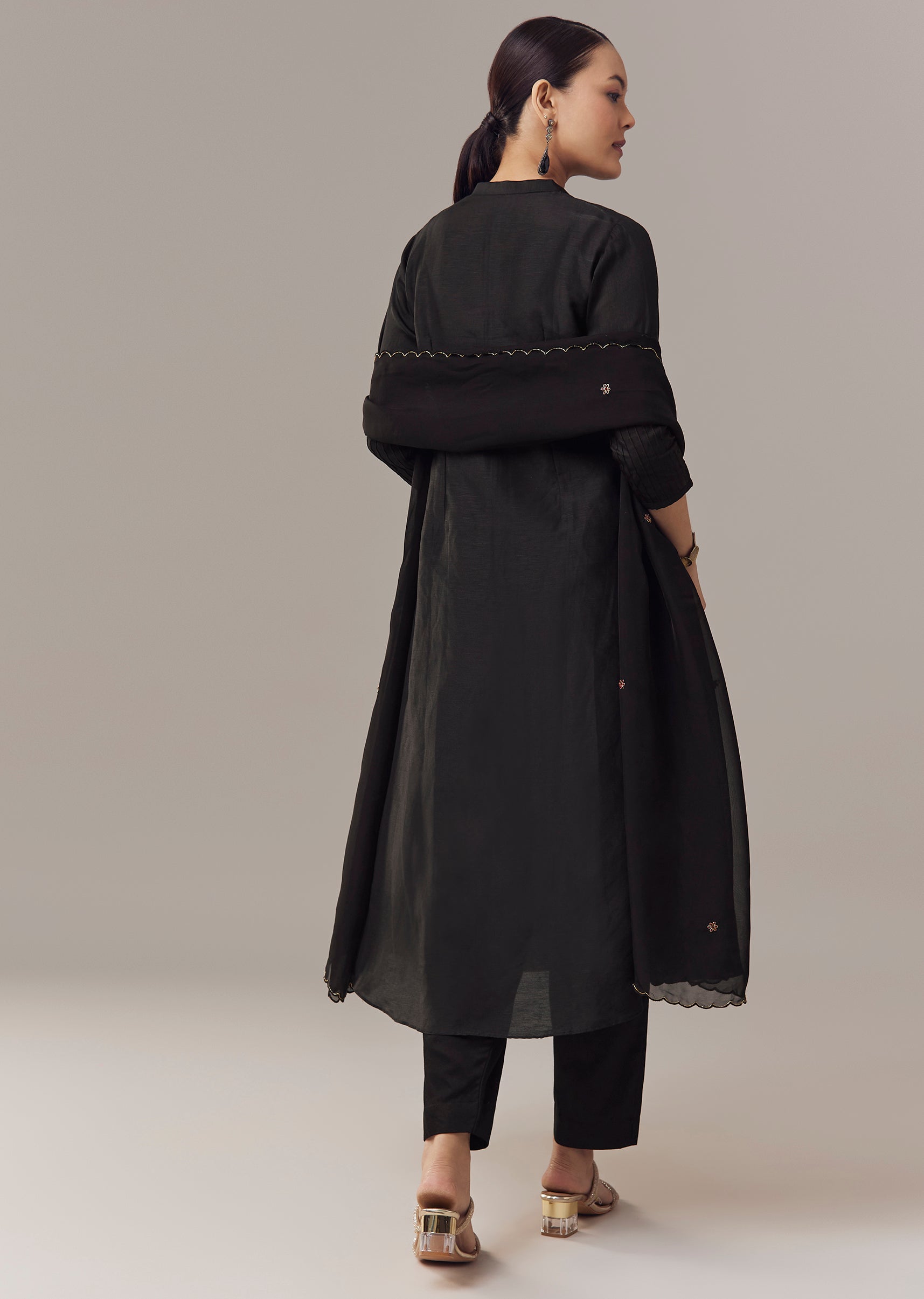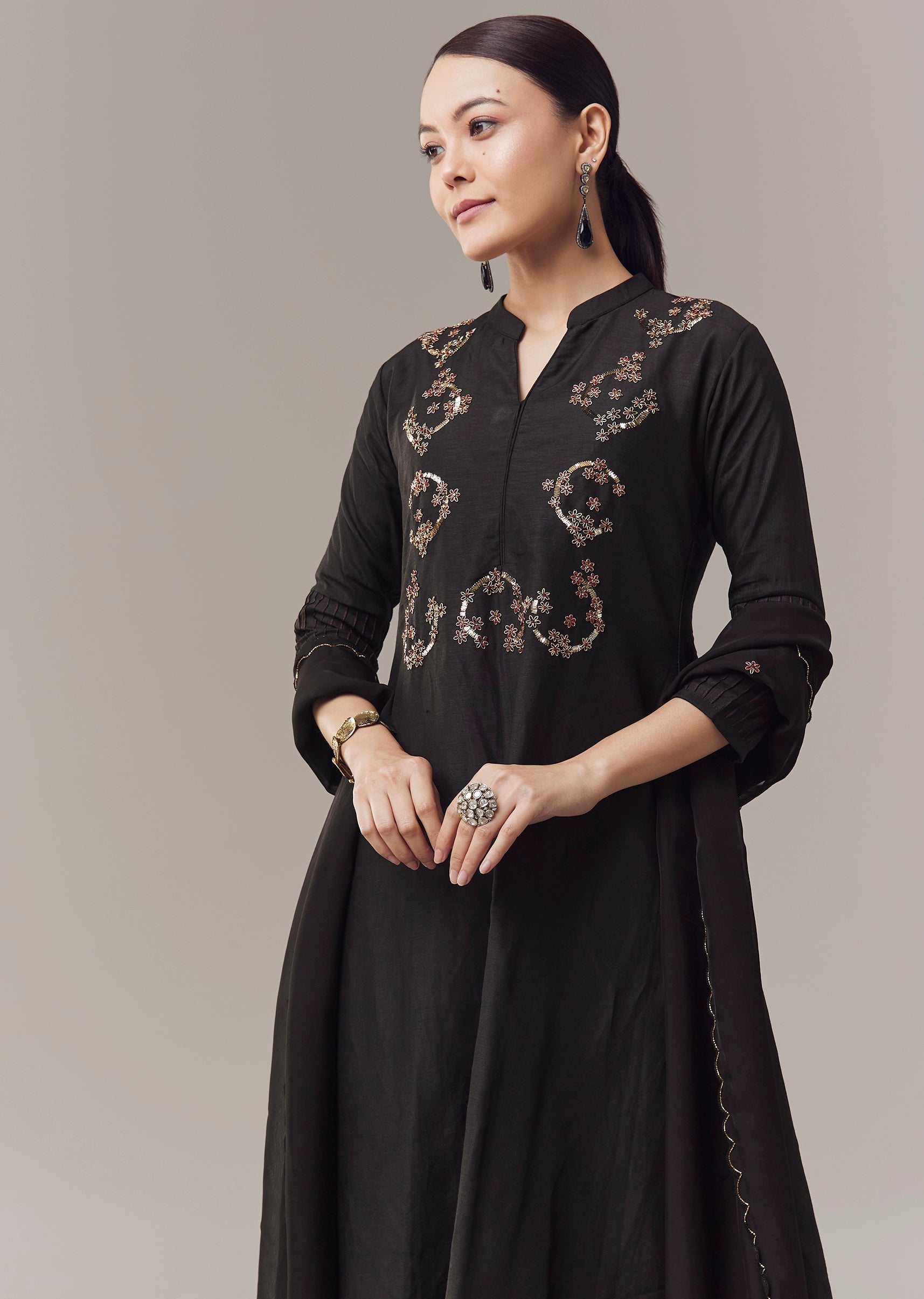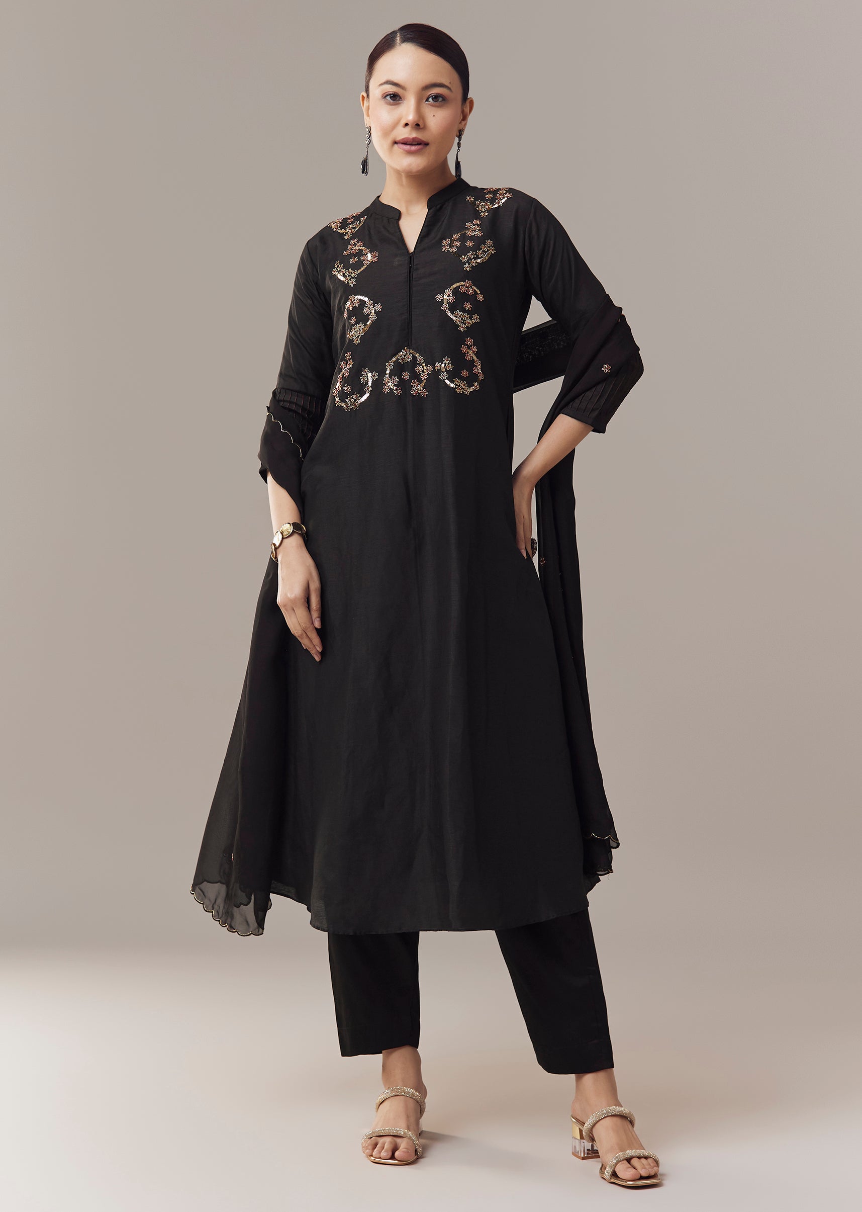 Black Anarkali Suit With French Knot And Zardosi Hand Work And Dupatta