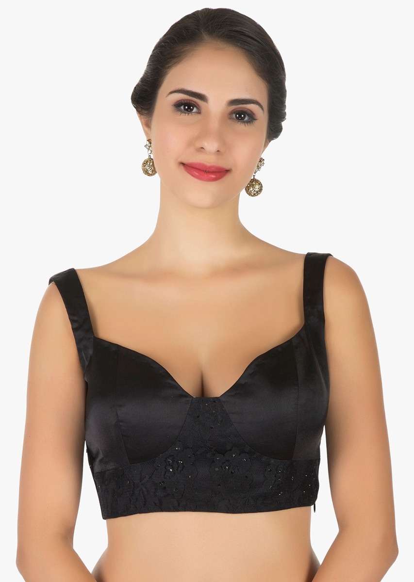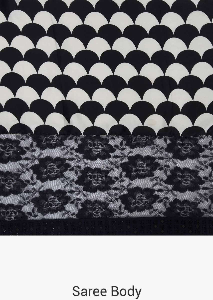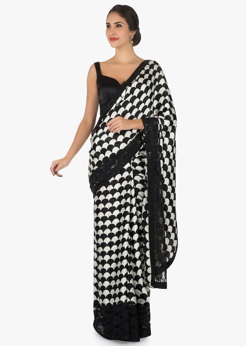 Black and white satin silk saree with unstitched blouse only on Kalki