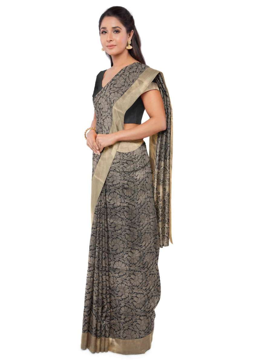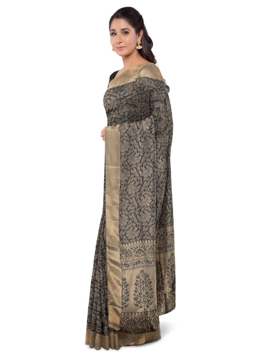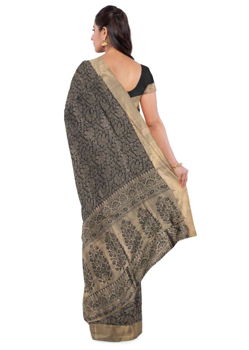 Black Banarasi Saree In Silk With Matching Blouse Piece Online - Kalki Fashion