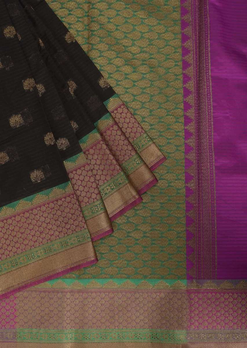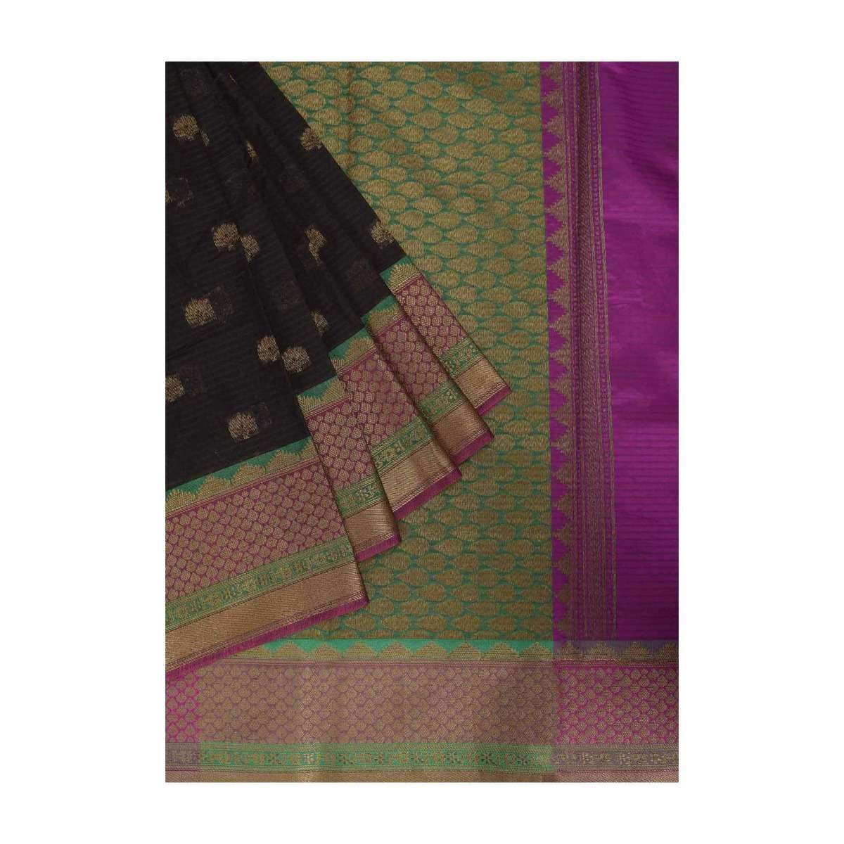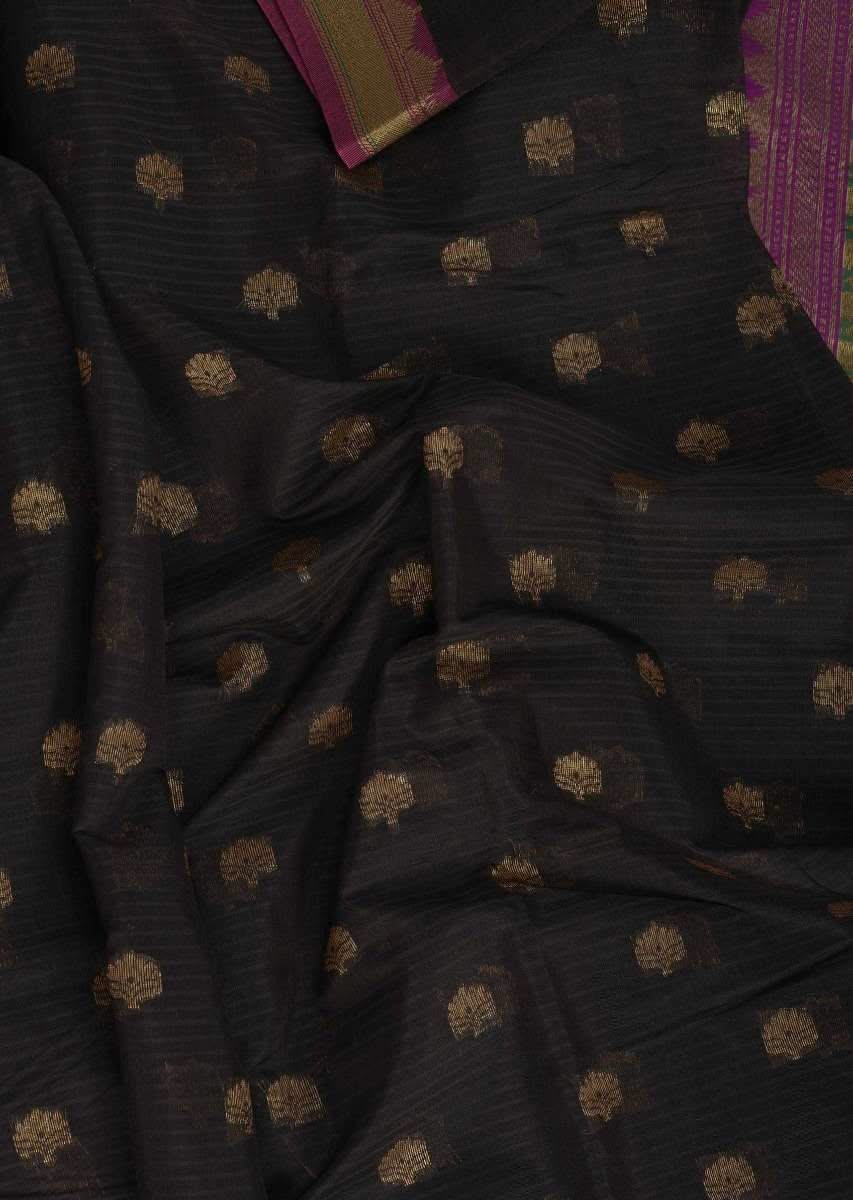 Black Banarasi Saree In Silk With Weaved Floral Buttis Online - Kalki Fashion