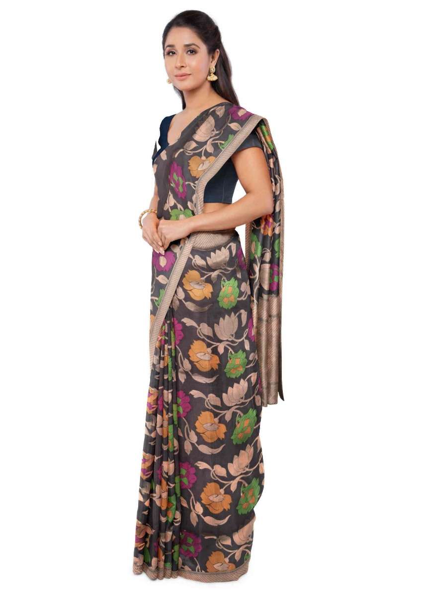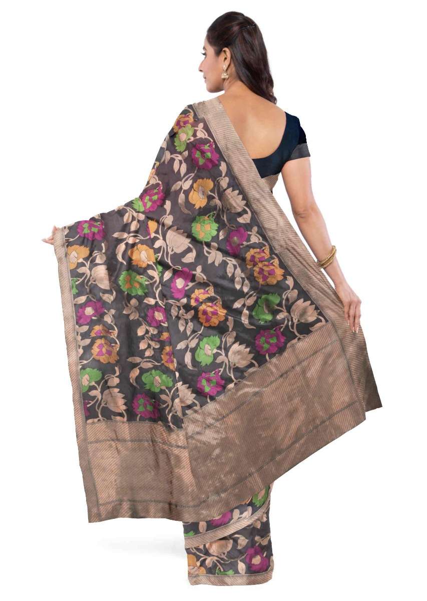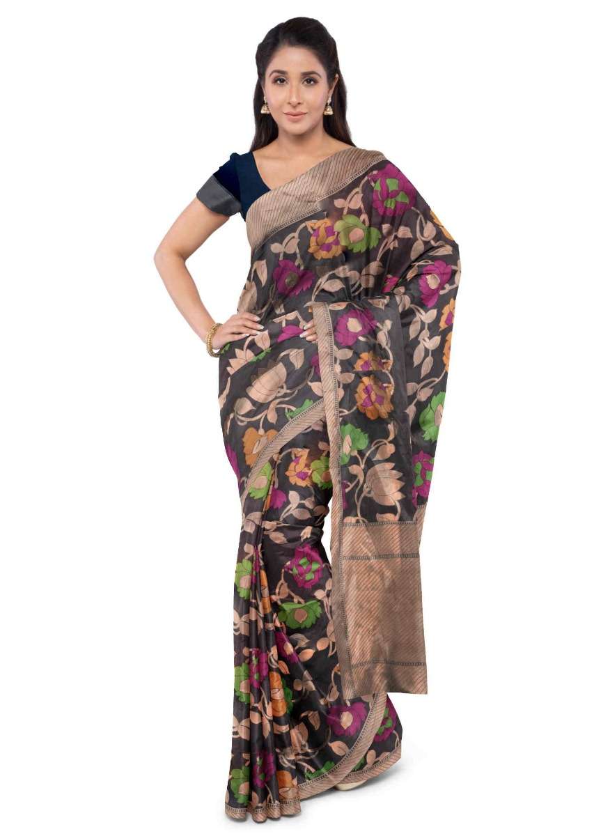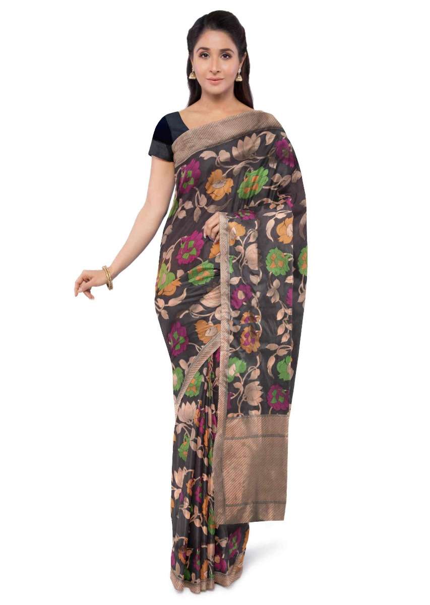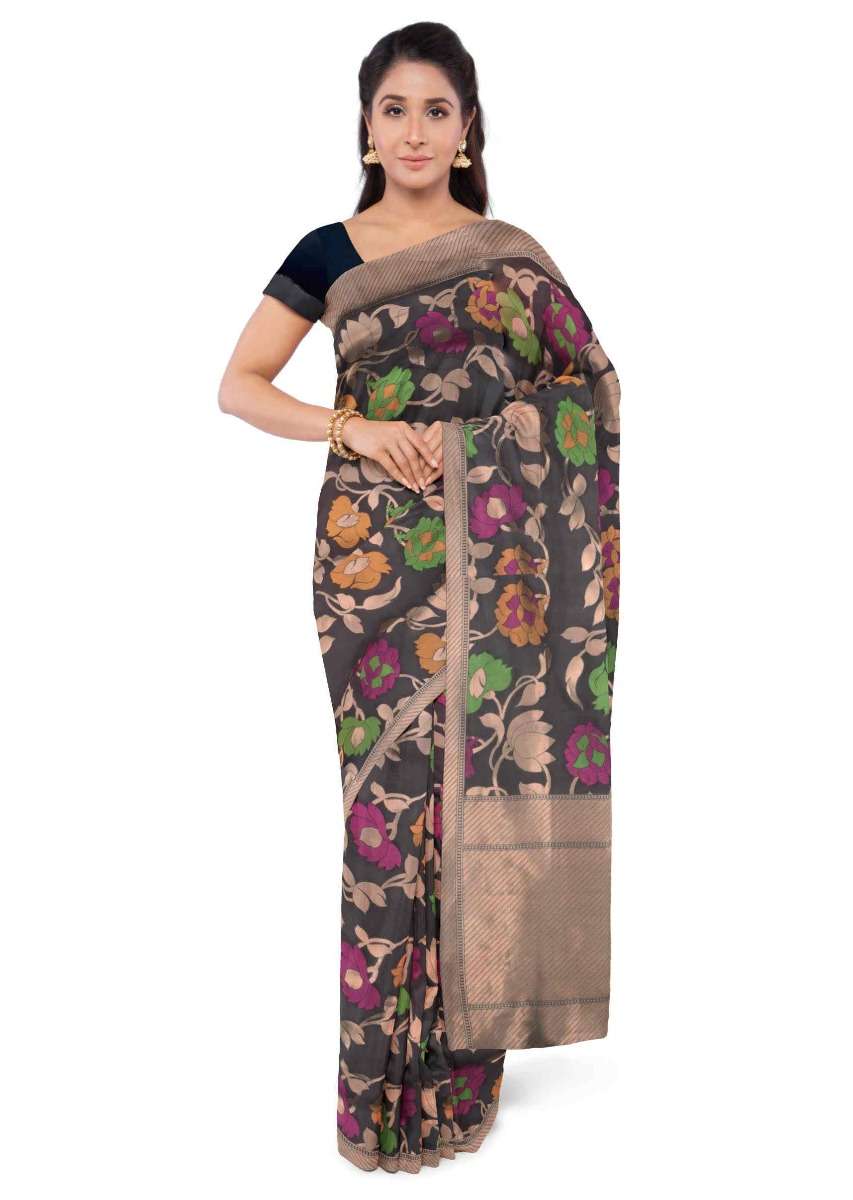 Black Banarasi Saree With Colorful Weaved Floral Pattern Online - Kalki Fashion