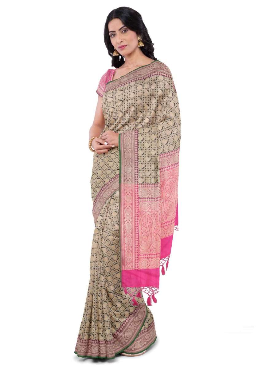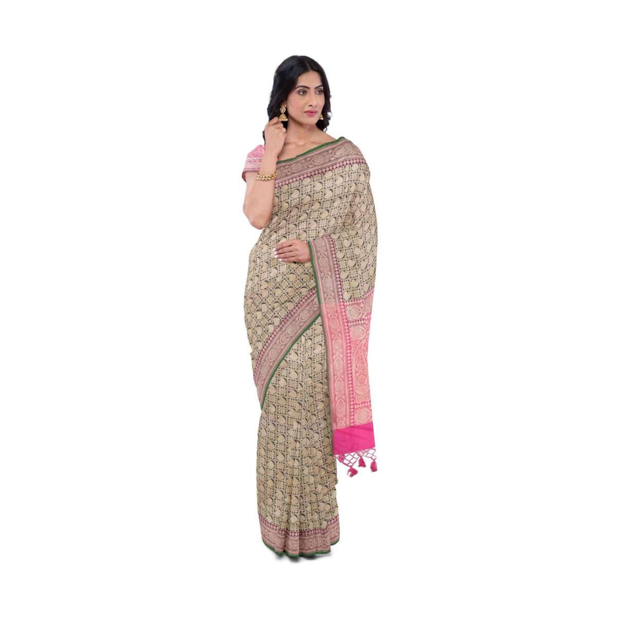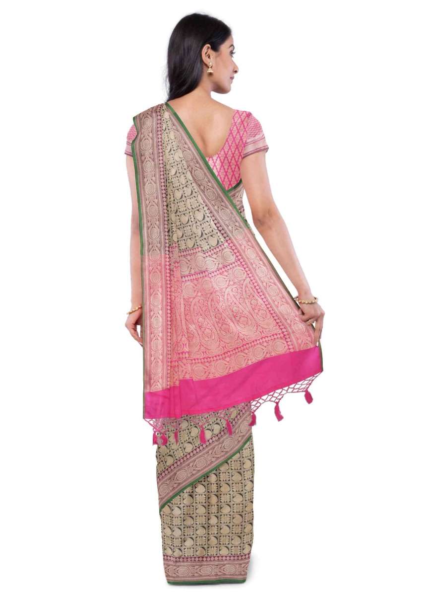 Black Banarasi Saree With Fuchsia Brocade Blouse Piece Online - Kalki Fashion