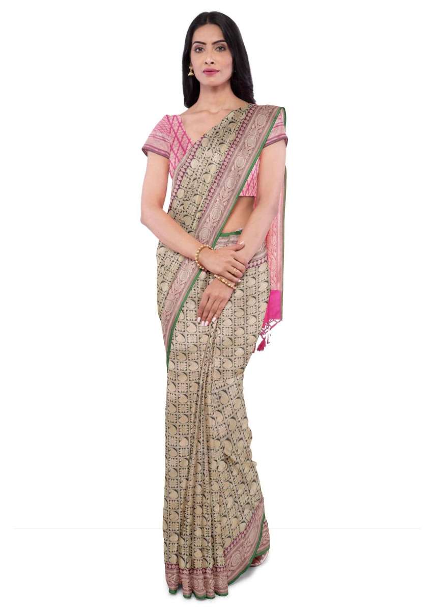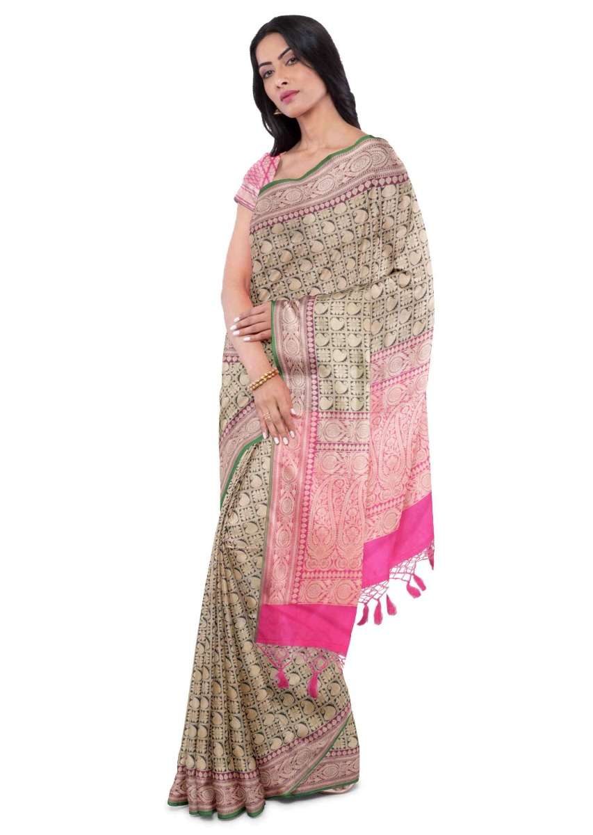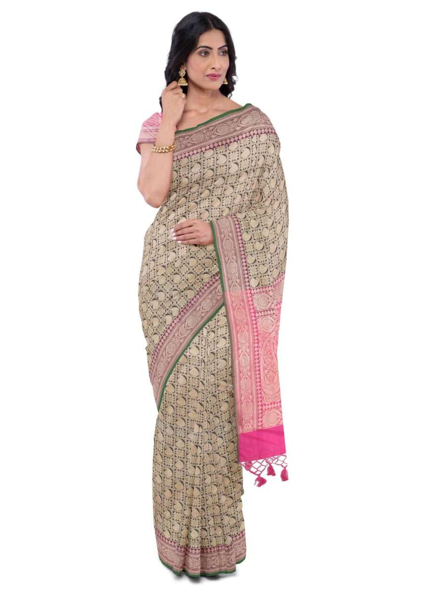 Black Banarasi Saree With Fuchsia Brocade Blouse Piece Online - Kalki Fashion