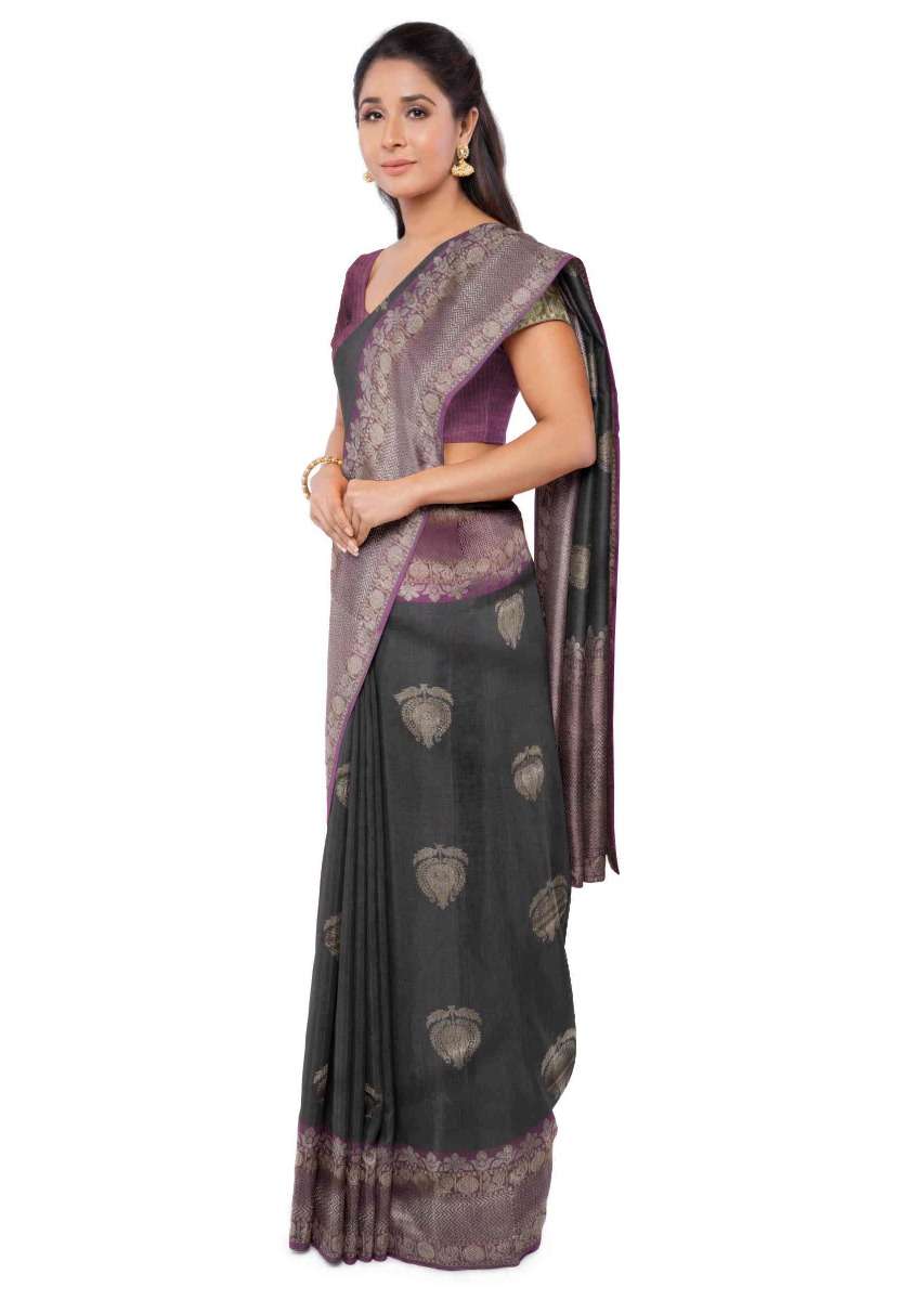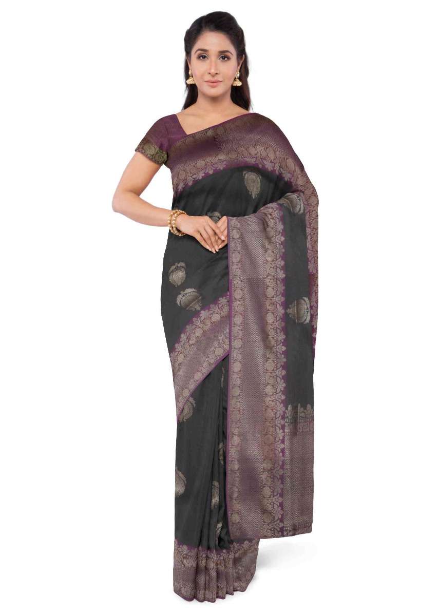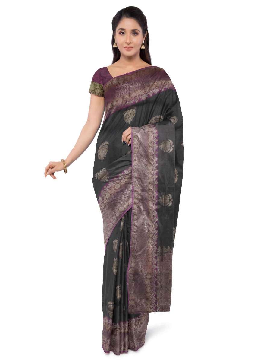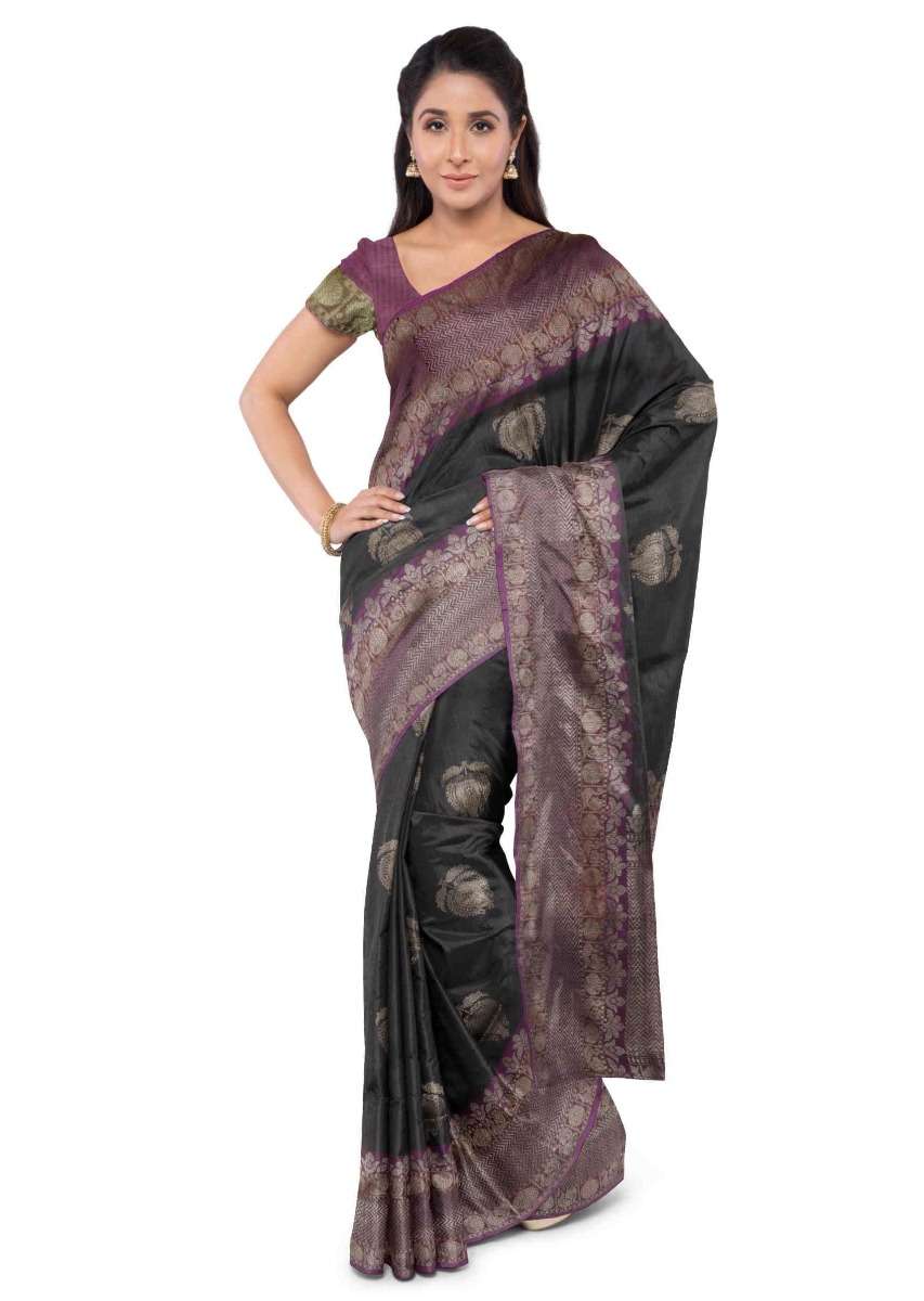 Black Banarasi Saree With Purple Blouse Piece Online - Kalki Fashion
