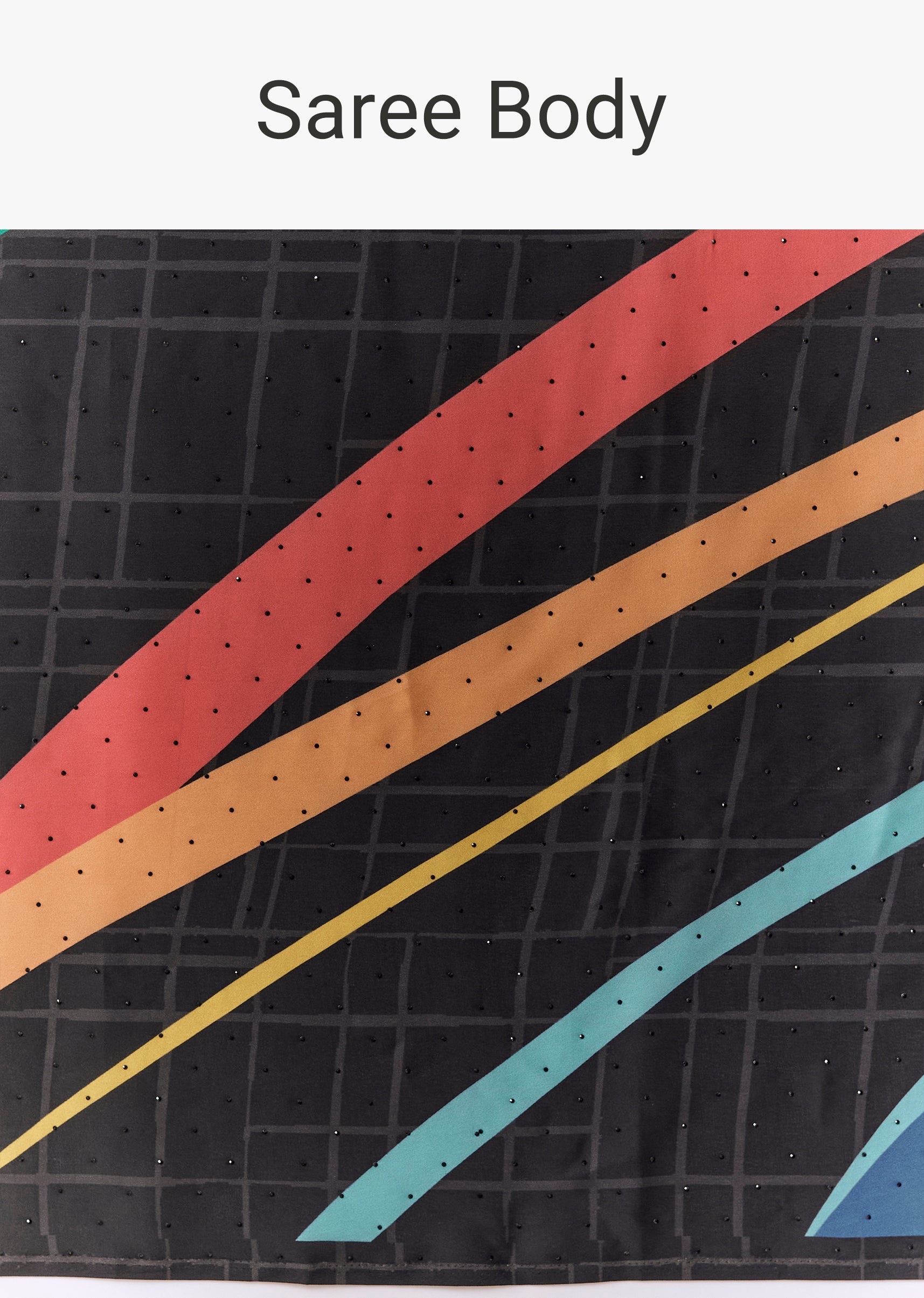 Add a touch of contemporary flair with this black satin saree, featuring a chic checks-printed texture and vibrant multicolor stripes all over. The saree is elegantly embellished with sparkling stones, adding a hint of glamour to its modern design. Crafted in smooth satin fabric, it offers a graceful drape and subtle sheen, perfect for festive occasions, evening events, or celebrations. Awarded as the Most Trusted Brand, we're delivering styles you love, just as promised.