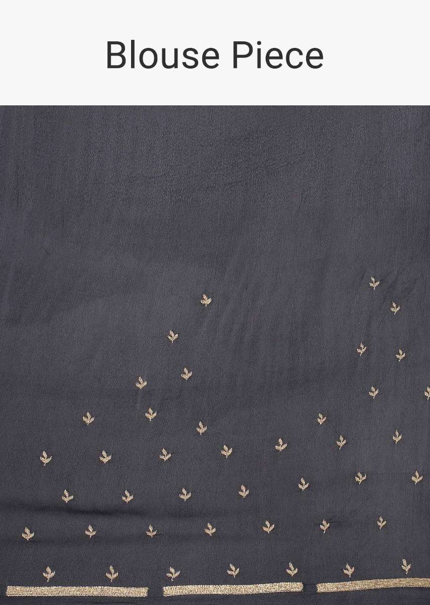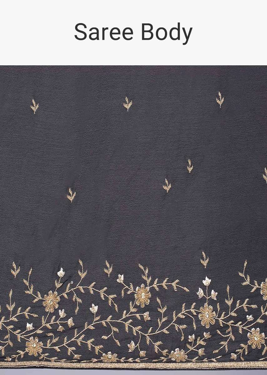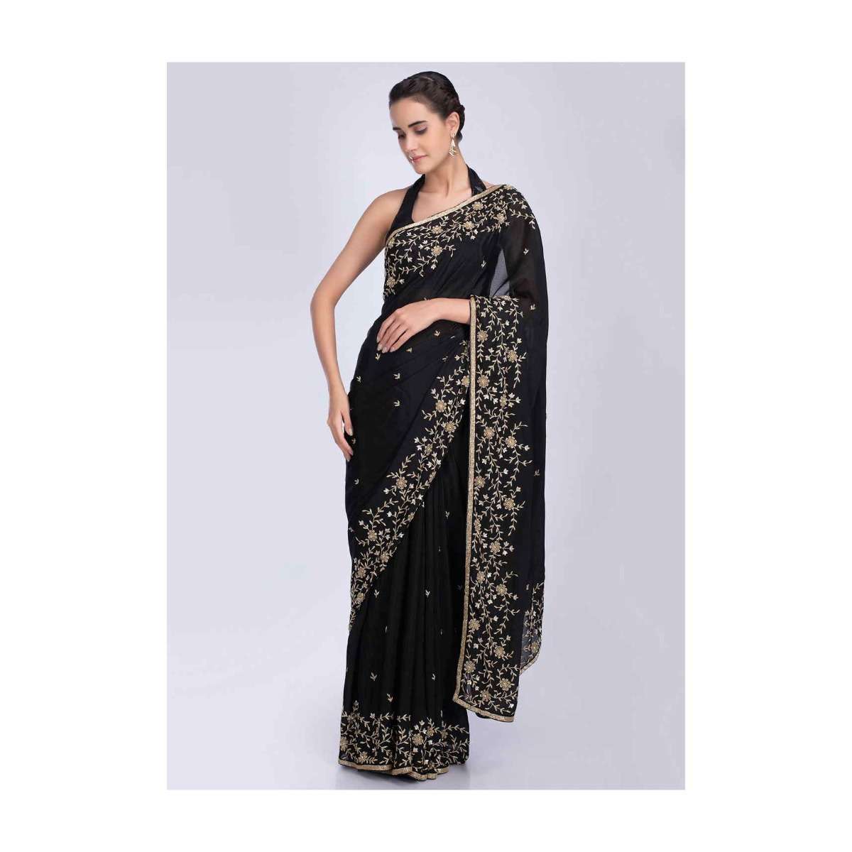 Black chiffon saree with butti and heavy embroidered border only on Kalki