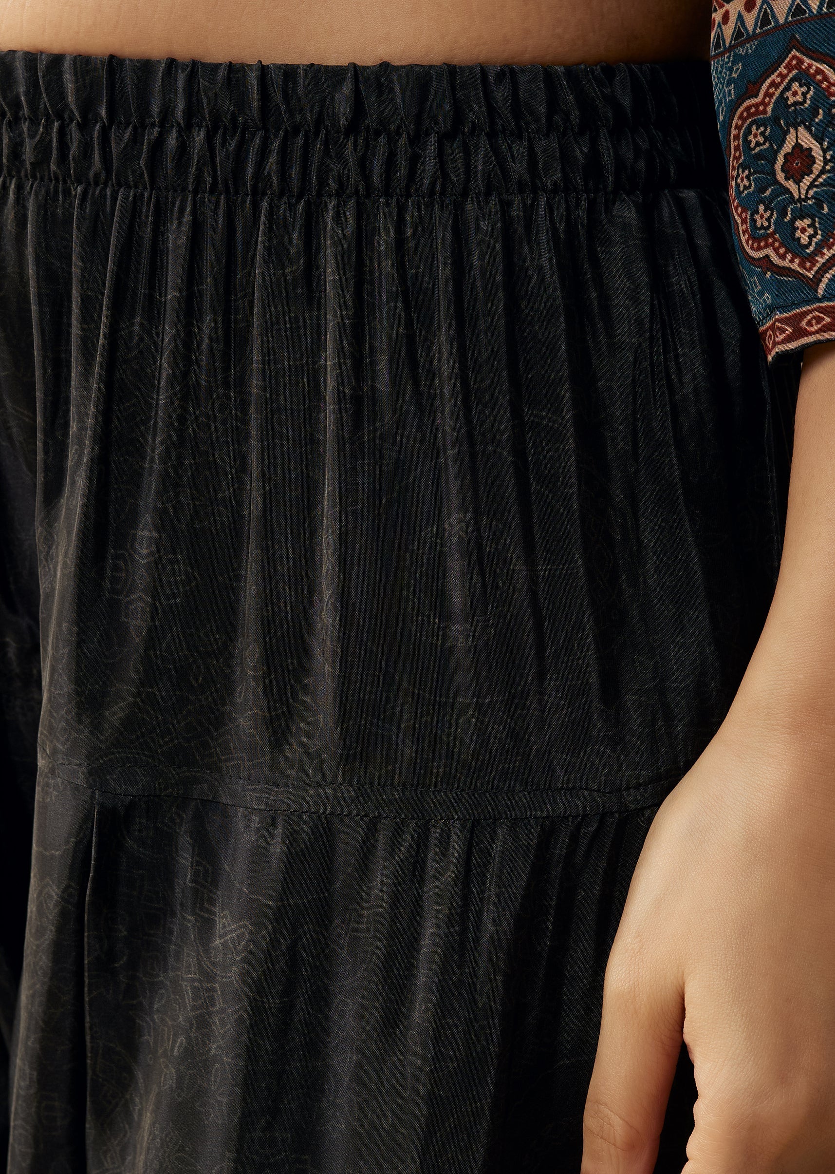 Black Crepe Indie Printed Kurta and Pant Set