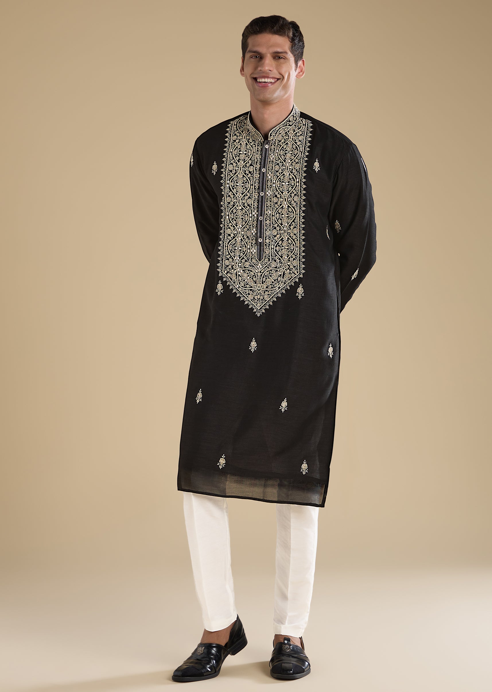 Black Embroidered Kurta Set With Pants