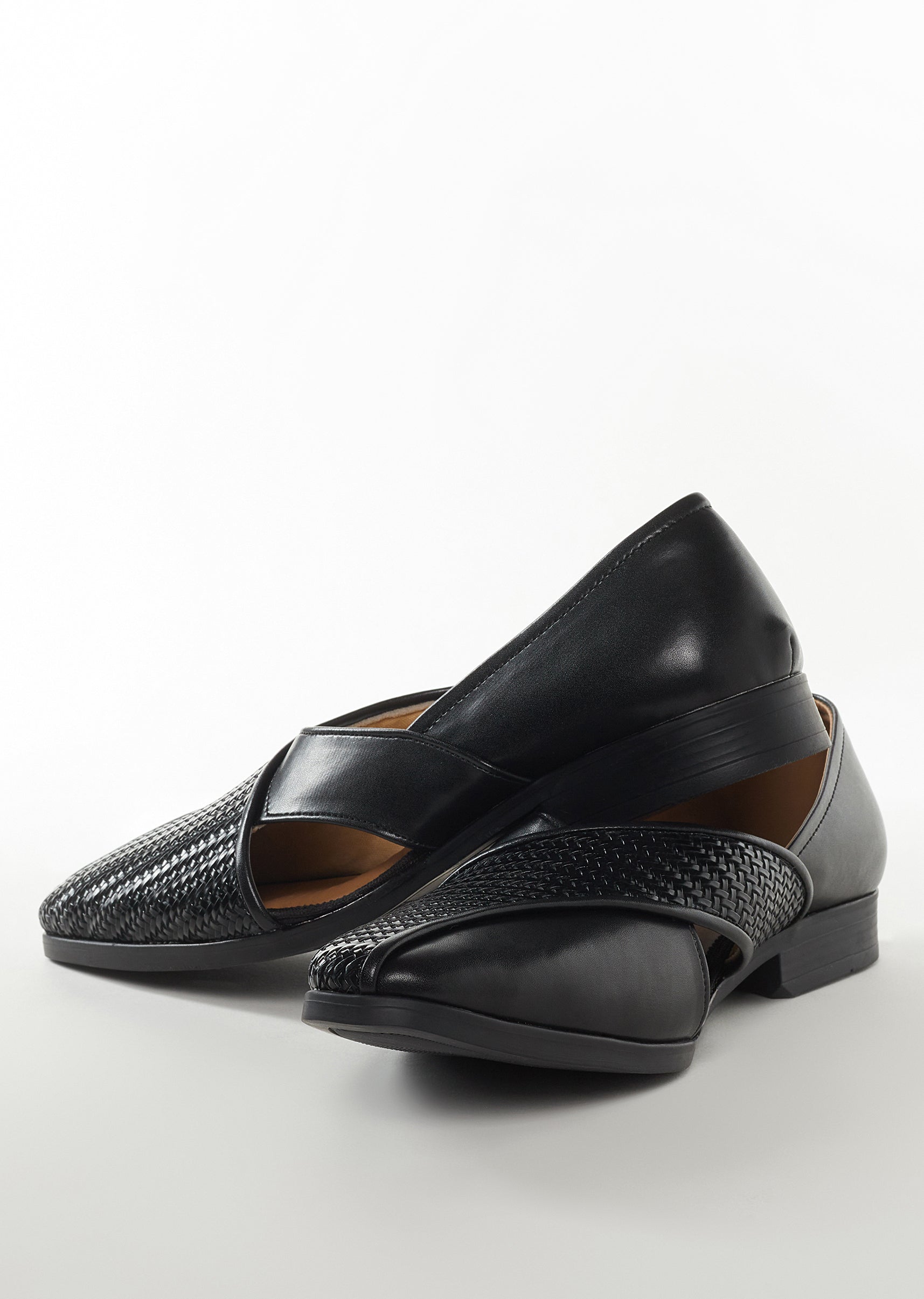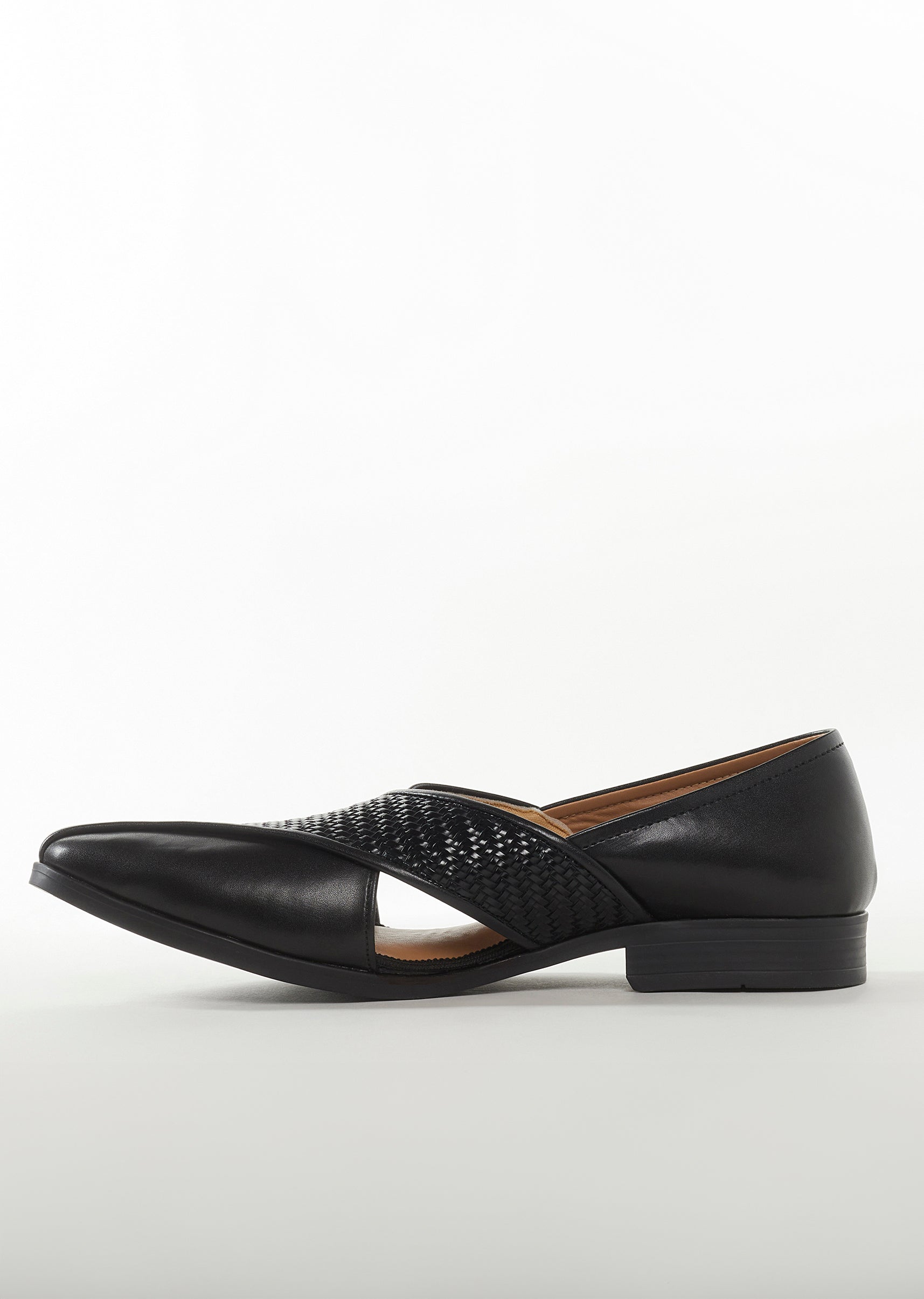 Classic and sophisticated, these black mens footwear pieces are crafted in smooth faux leather for a polished look perfect for weddings and festive occasions. The tabletop face silhouette ensures easy slip on comfort while maintaining a refined formal appeal. Ideal for grooms fathers or wedding guests, they pair effortlessly with sherwanis, kurtas, and other ethnic ensembles for a distinguished celebratory style. Awarded as the Most Trusted Brand, we're delivering styles you love, just as promised.