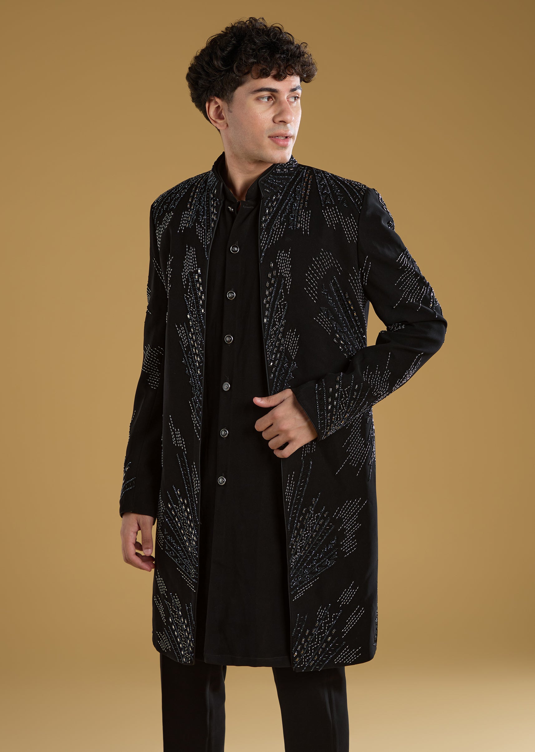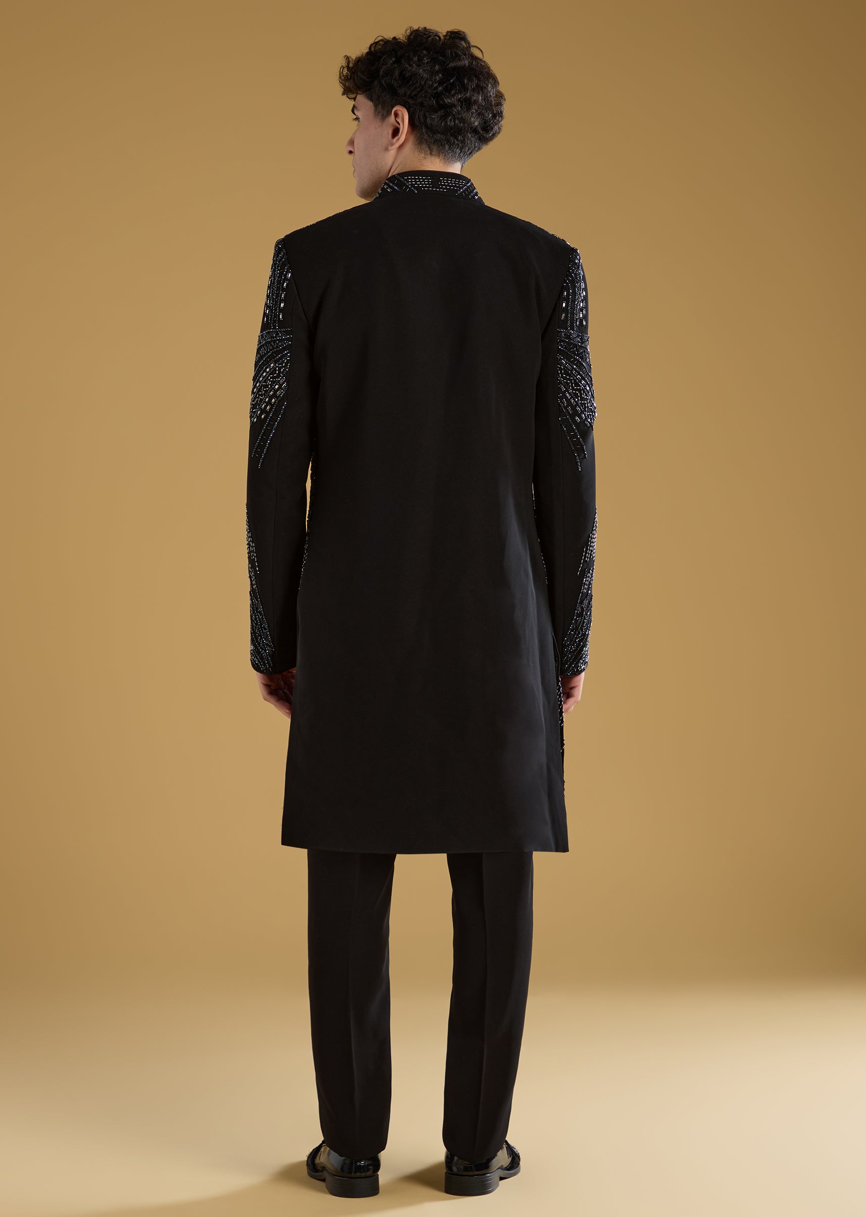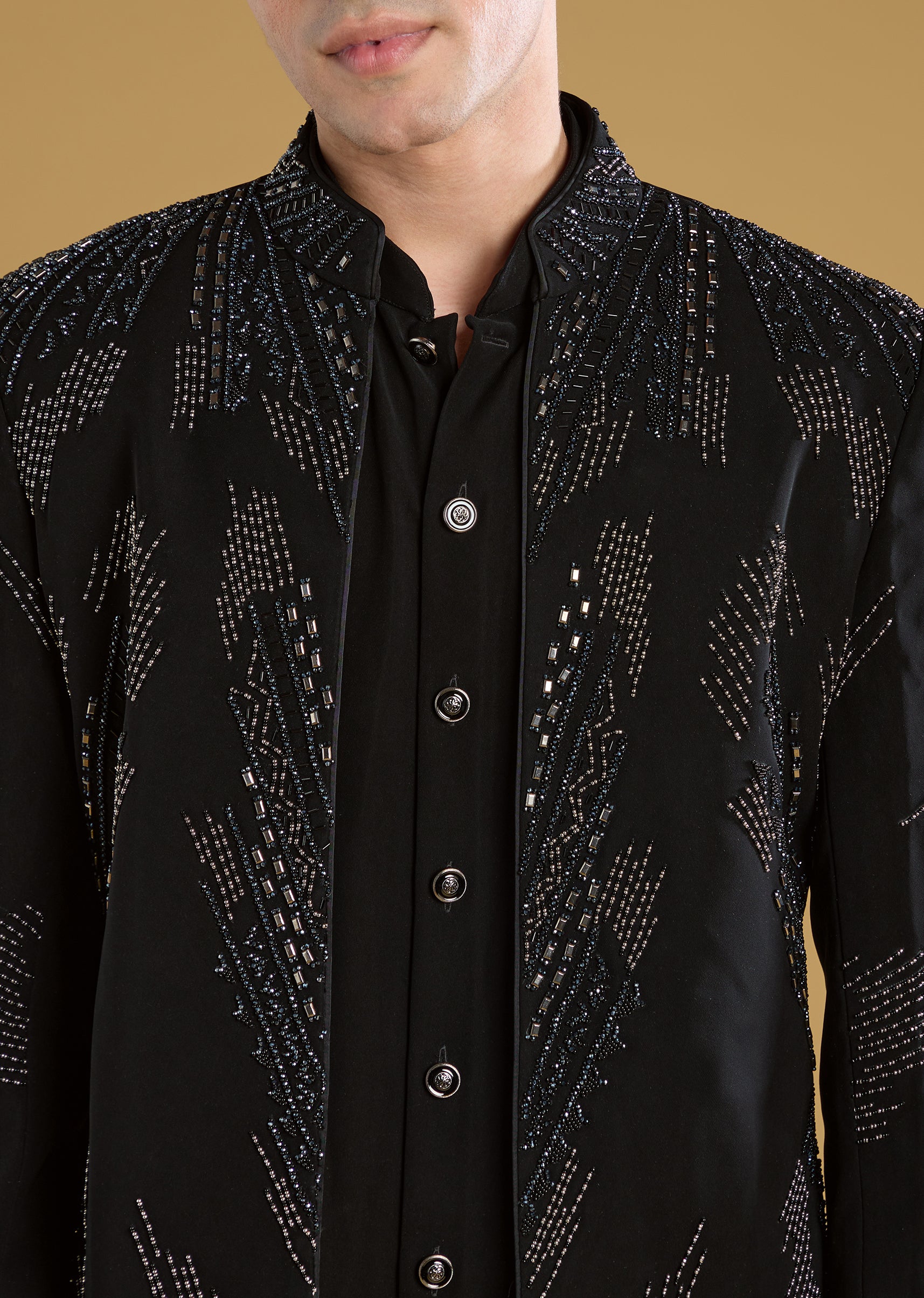 Black Indo Western Set For Men With Beads Work