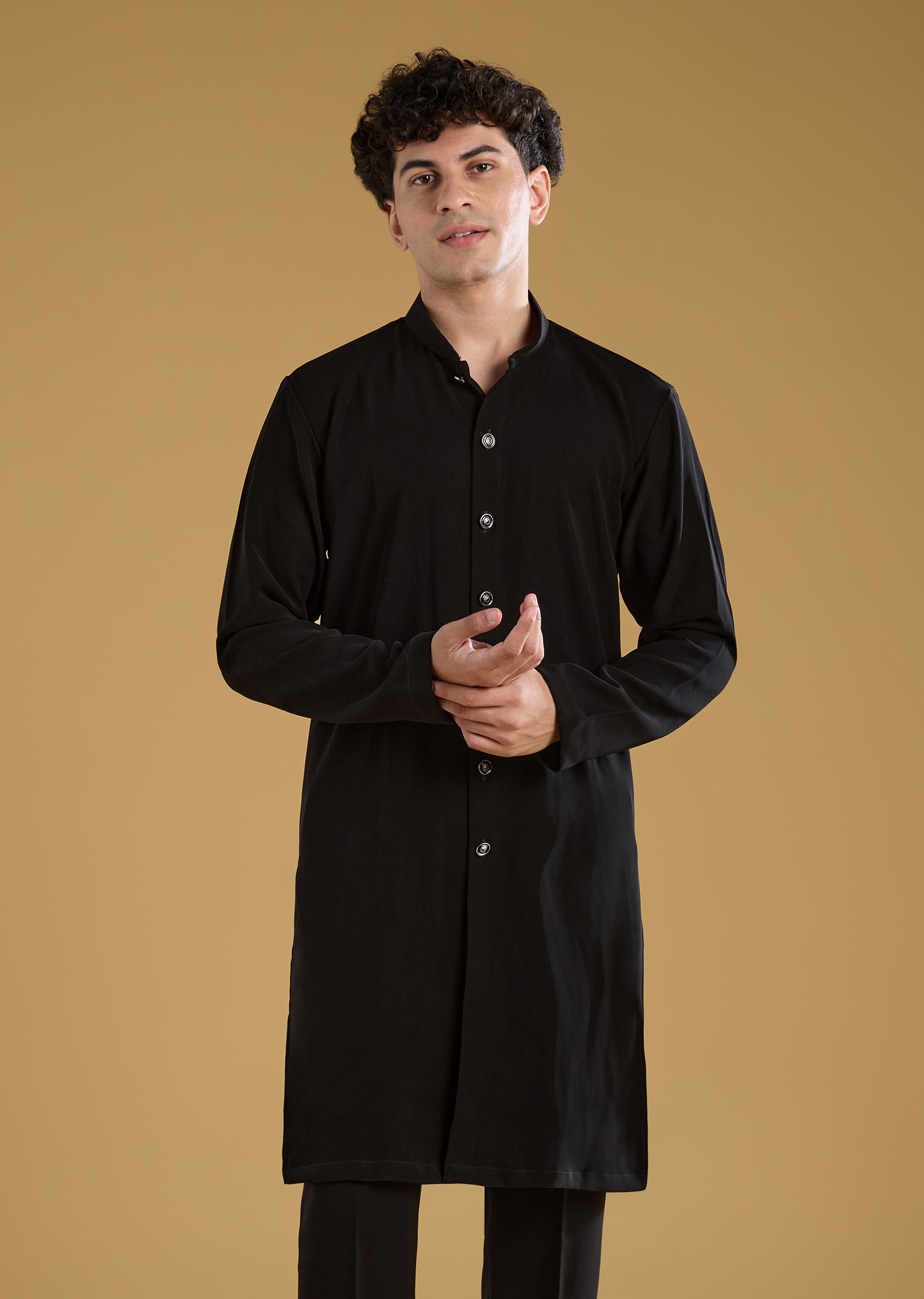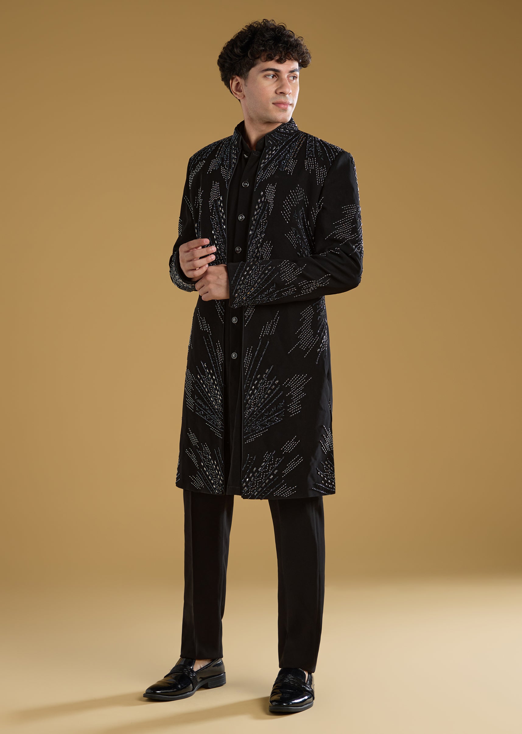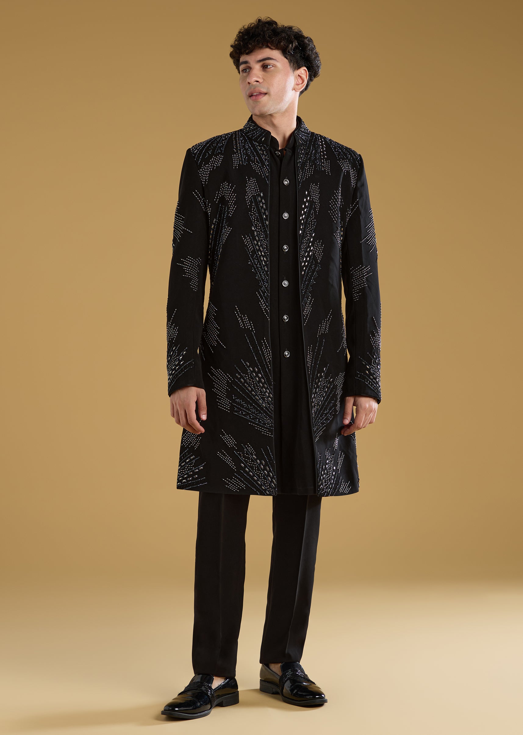 Black Indo Western Set For Men With Beads Work