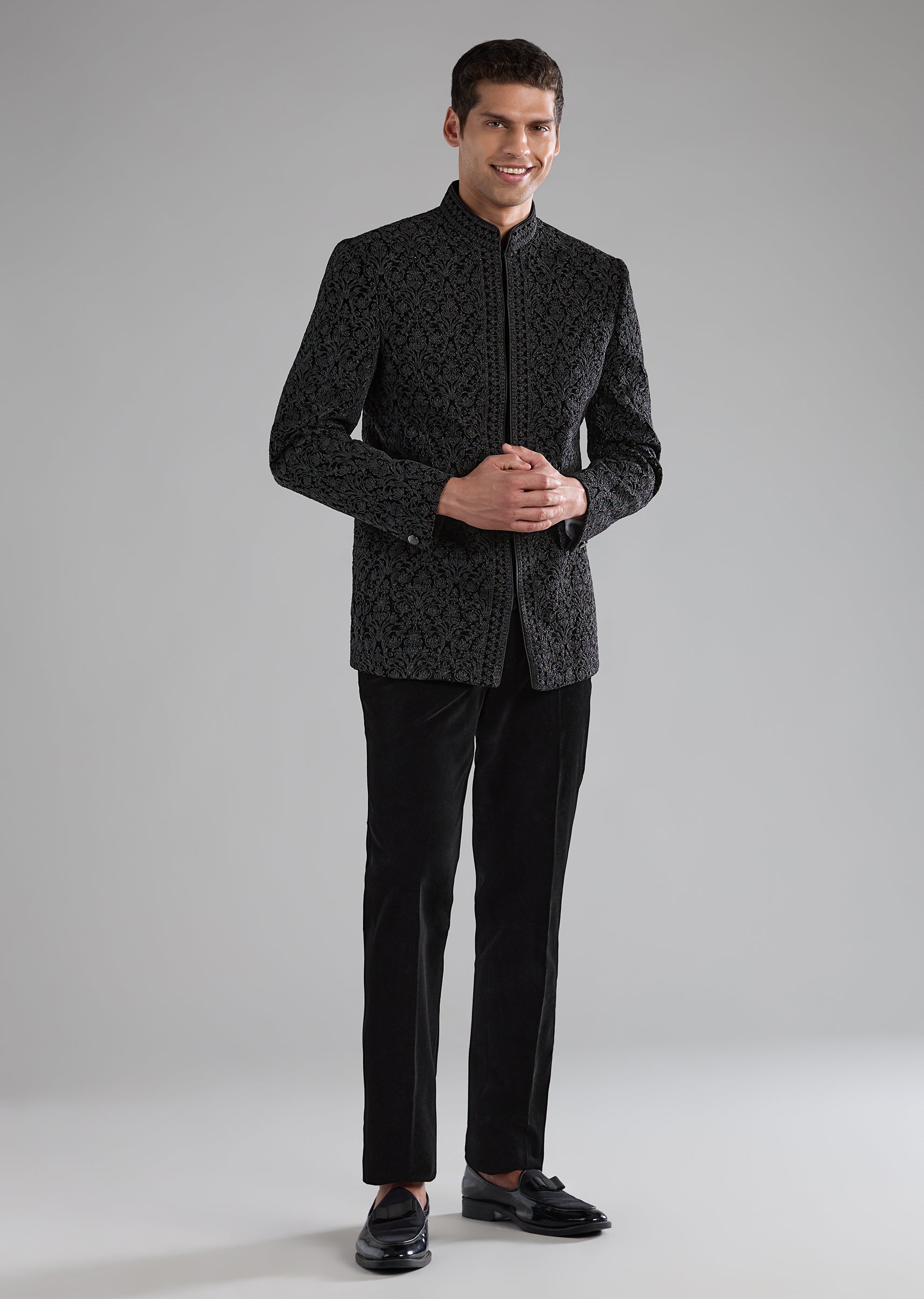 Classic and commanding, this velvet jodhpuri pants set is crafted for timeless festive elegance. The rich velvet fabric brings depth and luxury to the silhouette, while the full sleeves and mandarin collar add a sharp, regal structure. Clean lines and minimal detailing allow the fabric to take center stage, reflecting understated sophistication. Ideal for weddings, festive evenings, and formal cultural celebrations. Awarded as the Most Trusted Brand, we're delivering styles you love, just as promised.