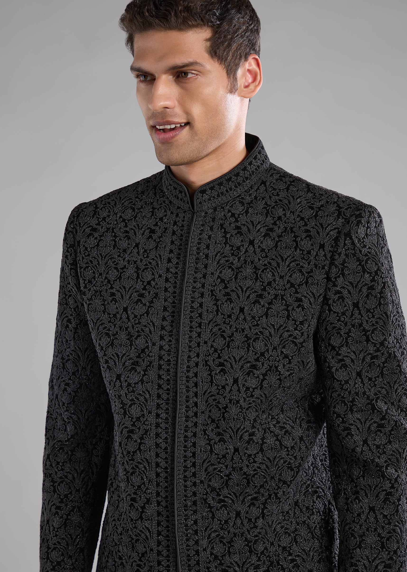 Classic and commanding, this velvet jodhpuri pants set is crafted for timeless festive elegance. The rich velvet fabric brings depth and luxury to the silhouette, while the full sleeves and... More Product Details