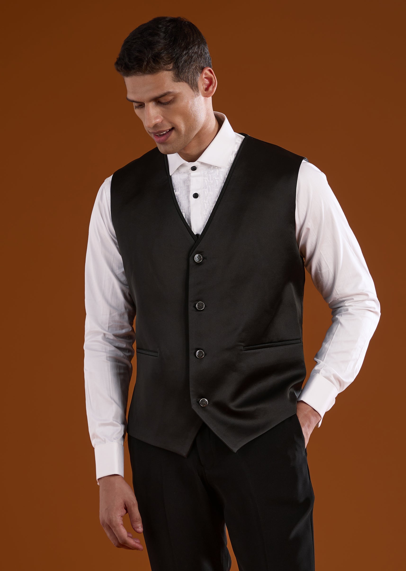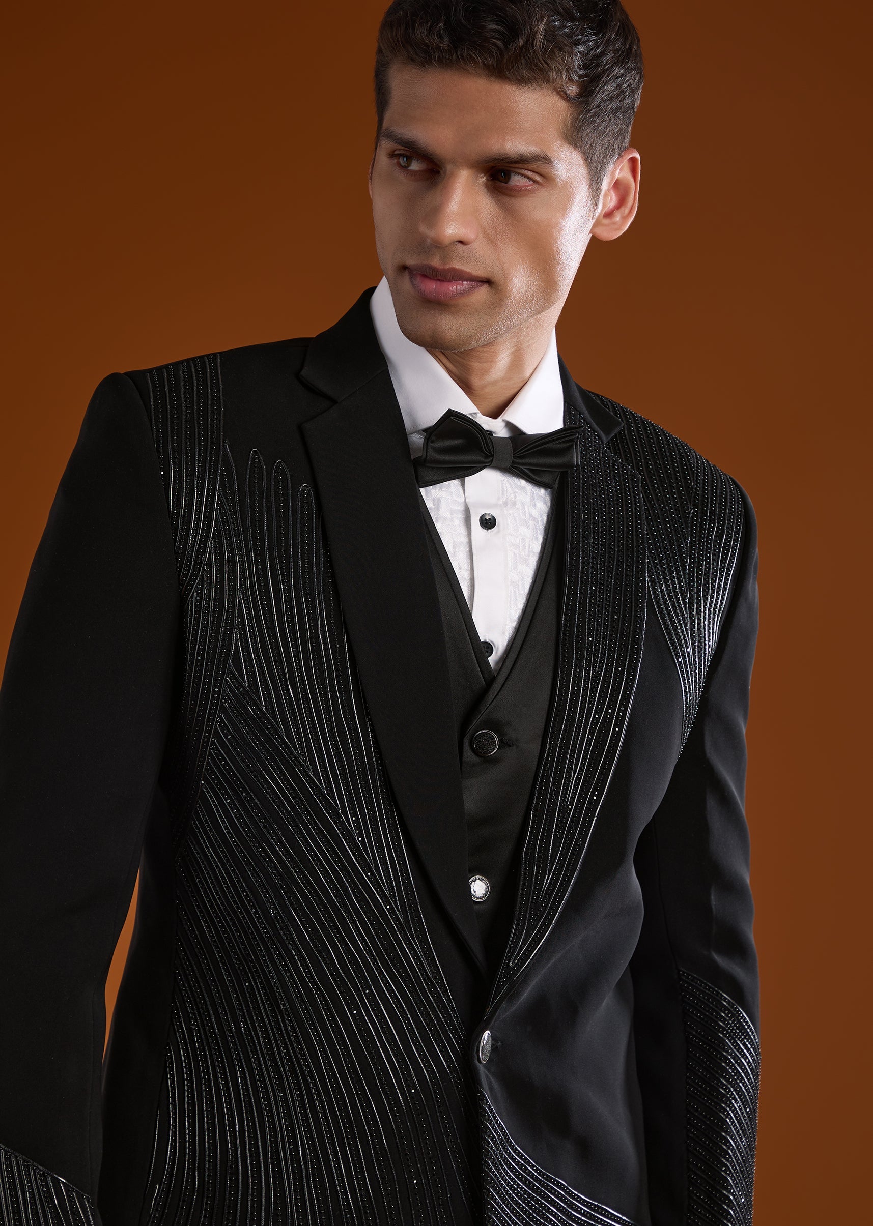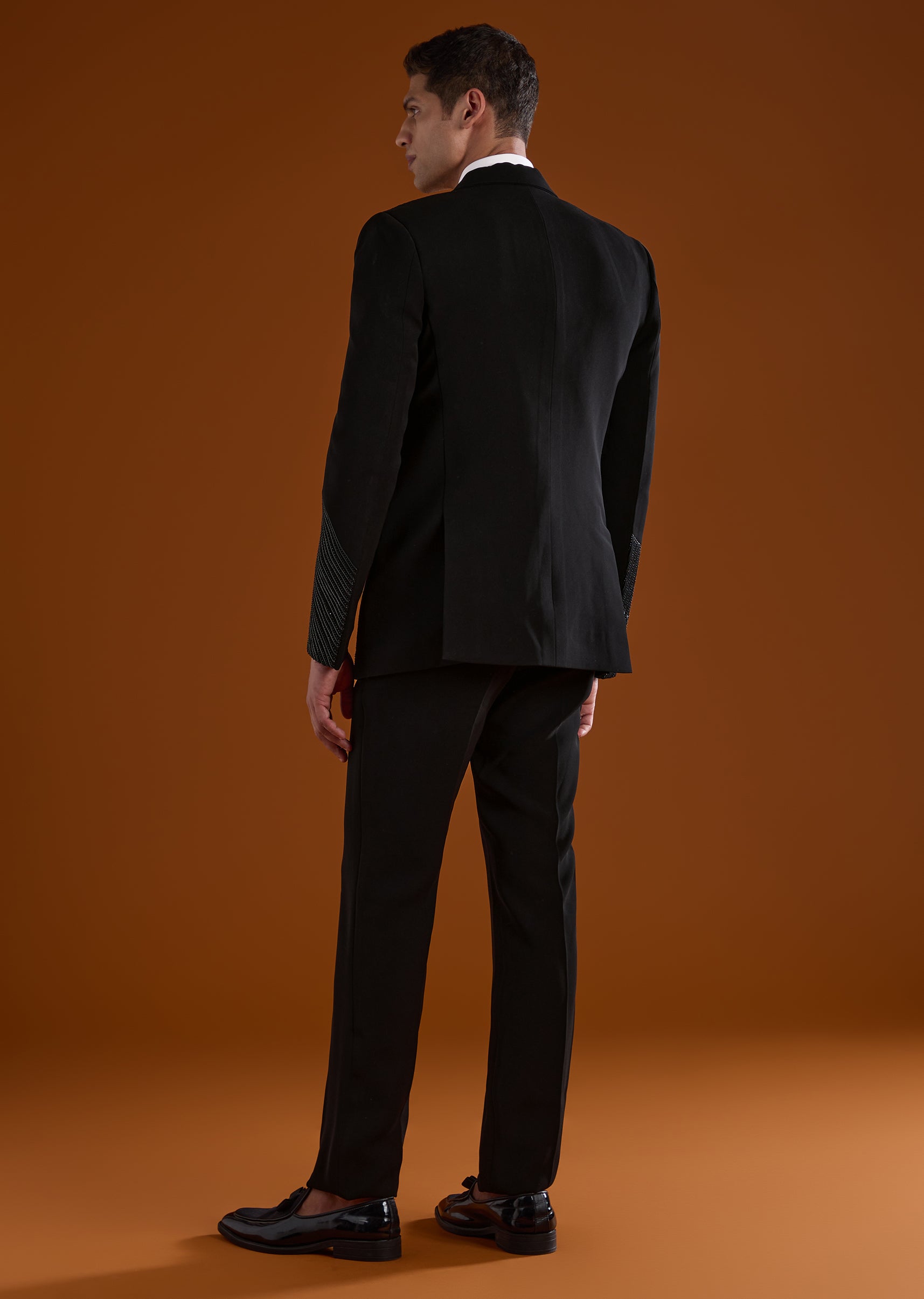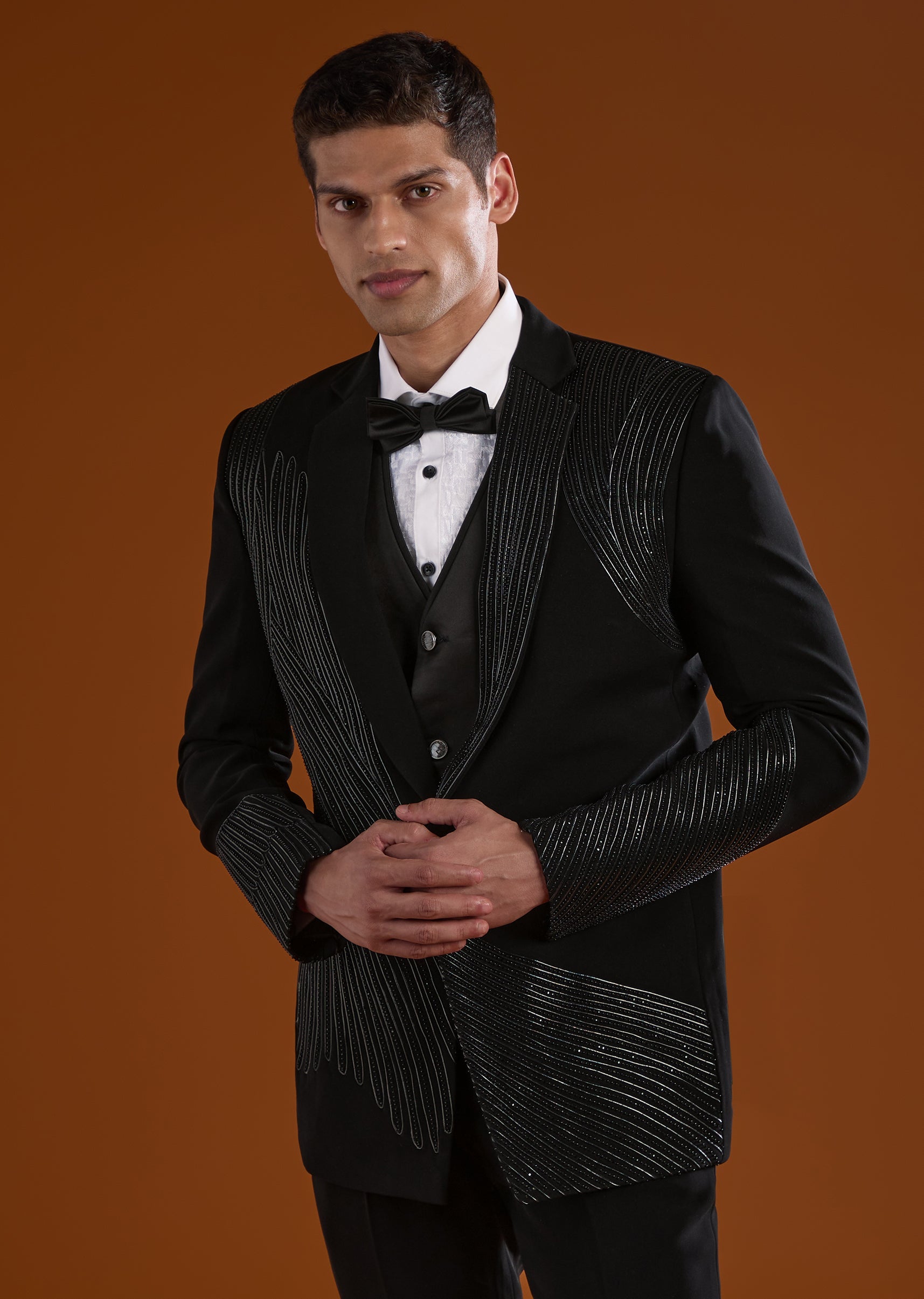 Black Mens Tuxedo With Dori Work And Leather Accents
