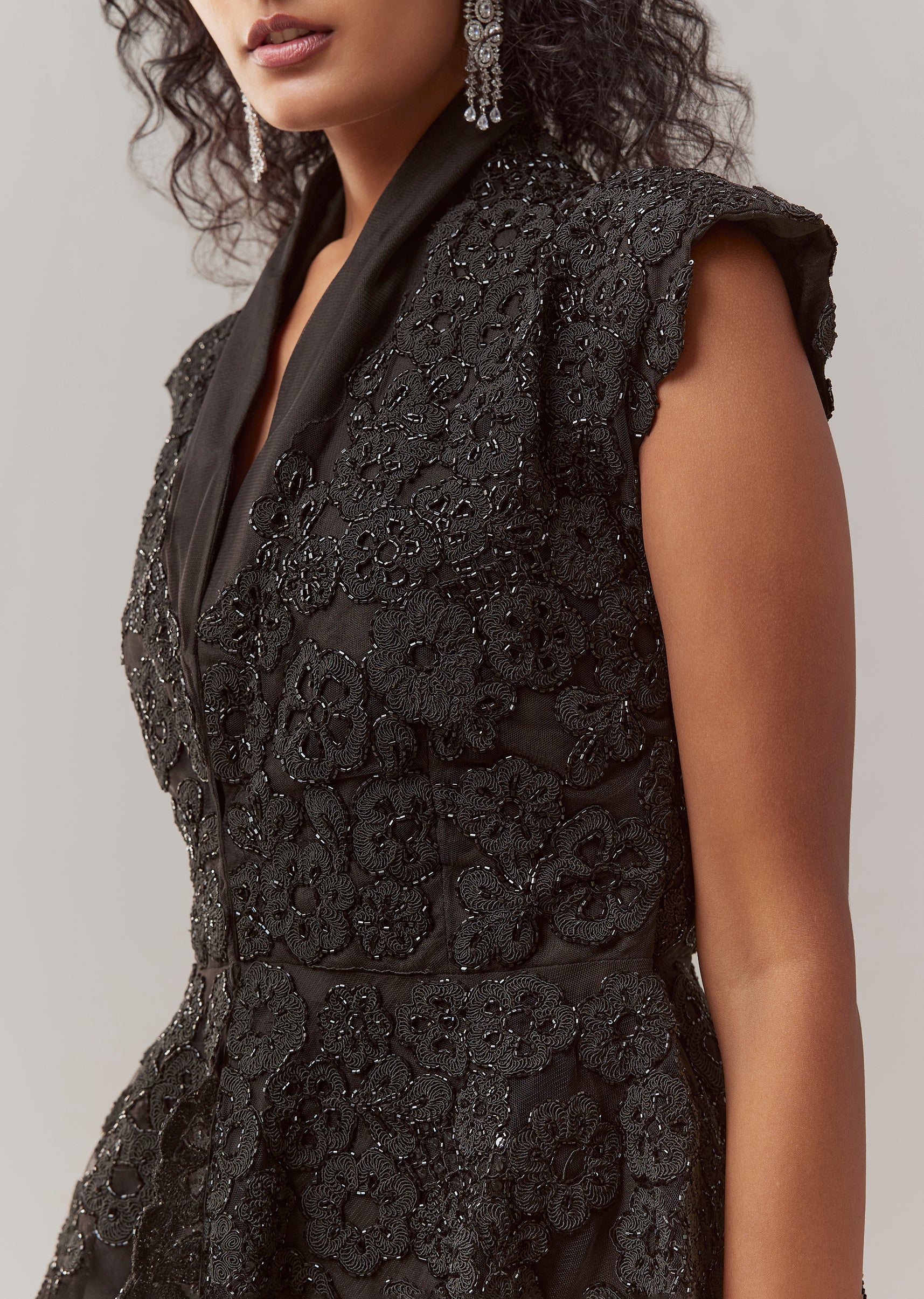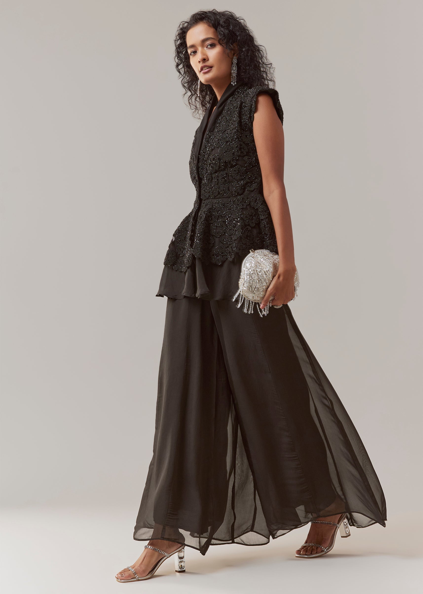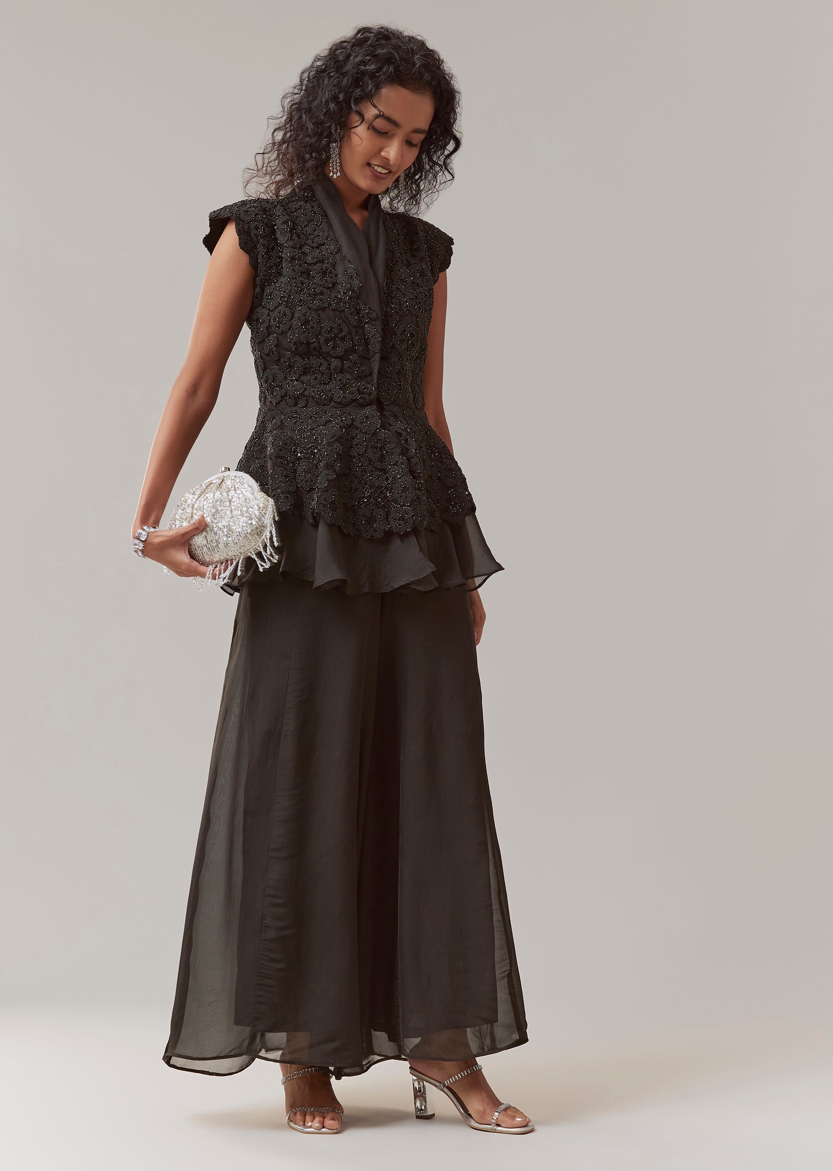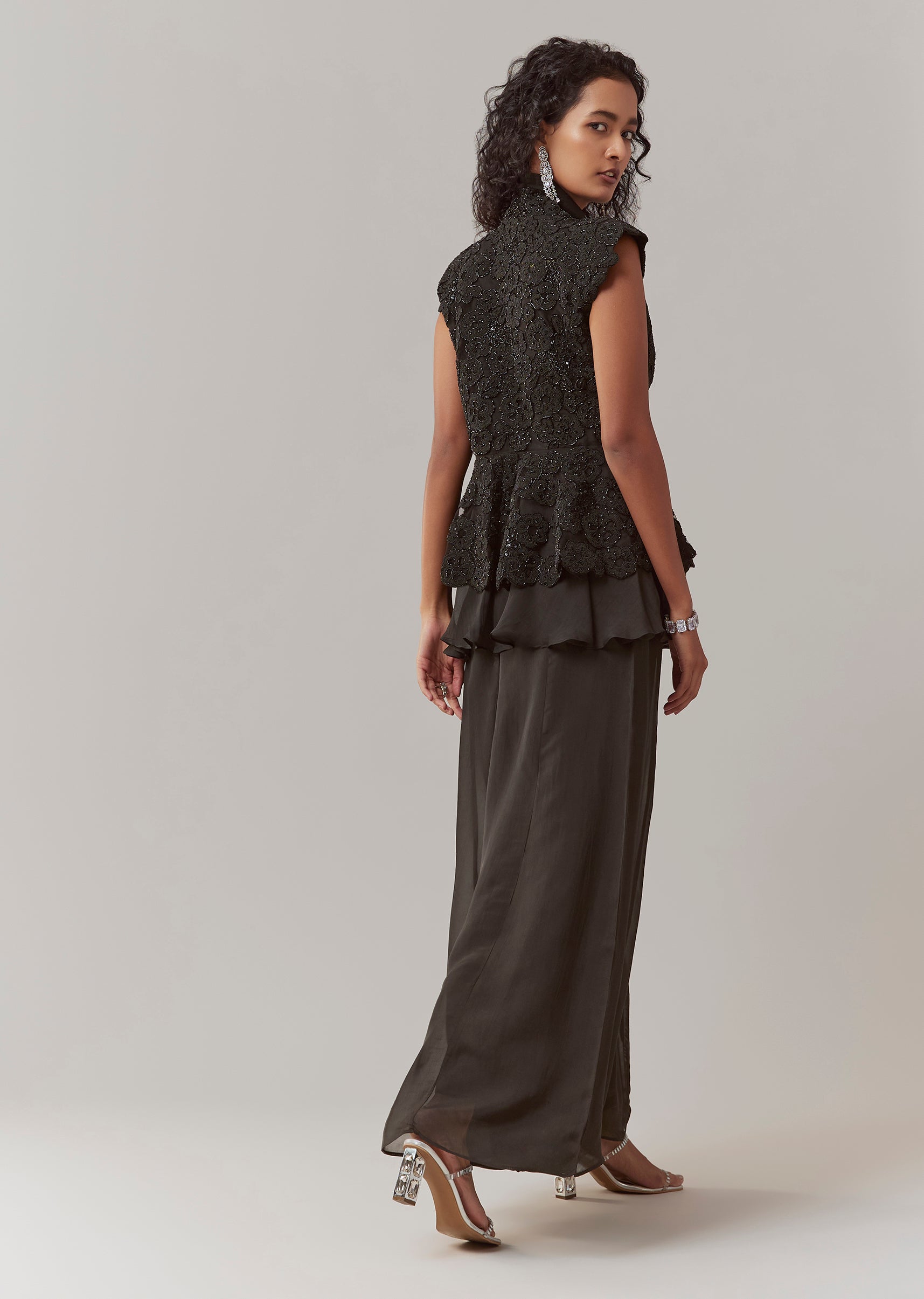 Black Organza Peplum Palazzo Set