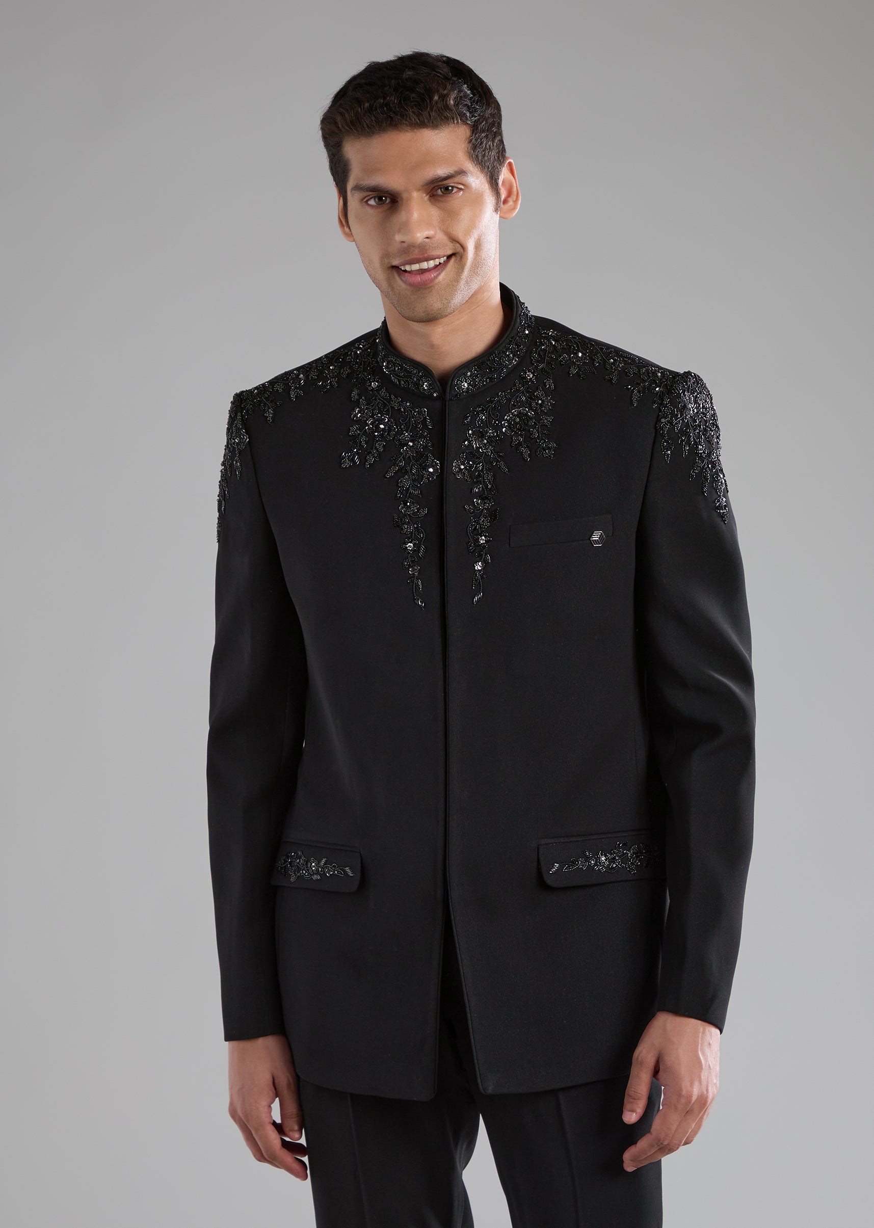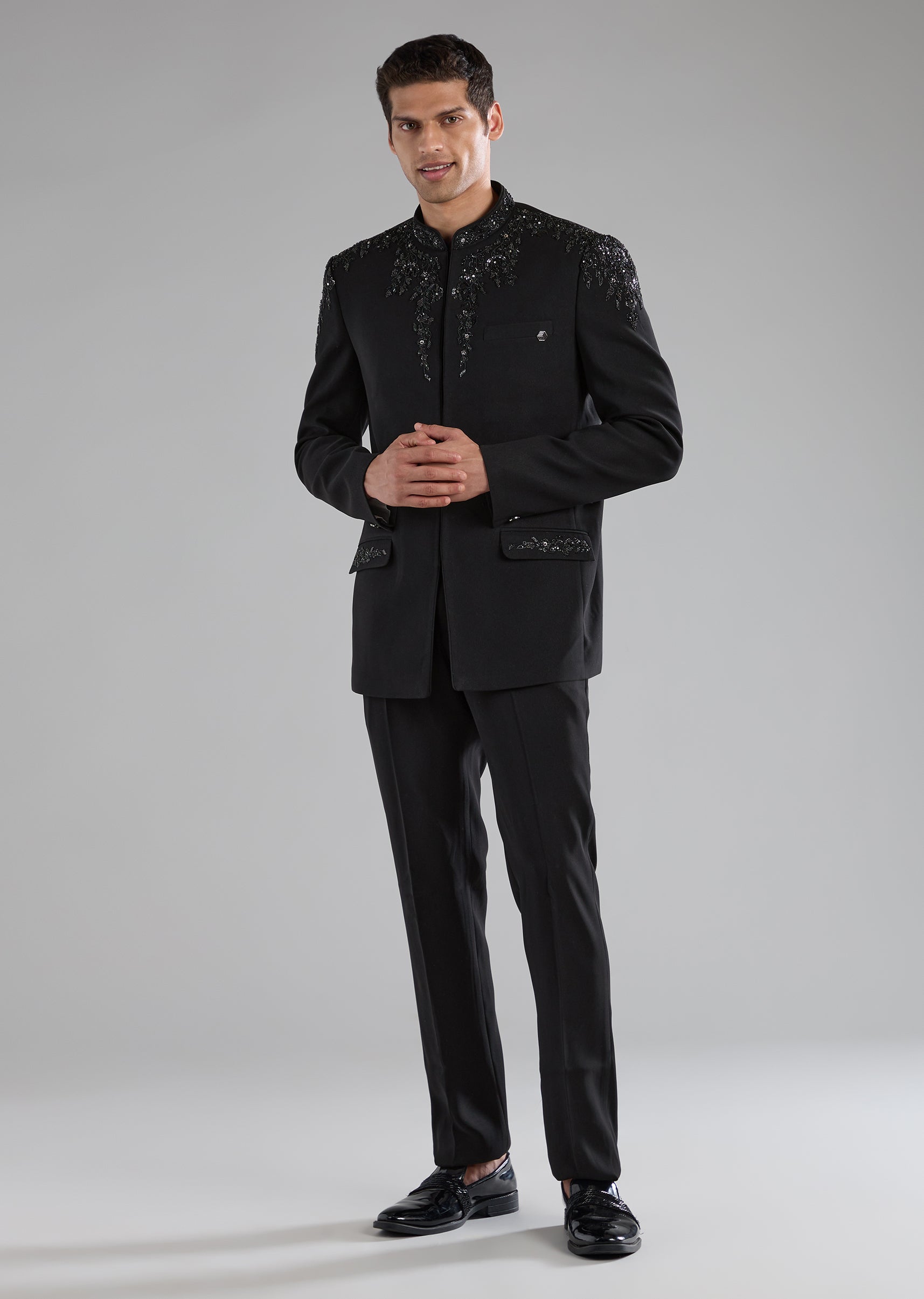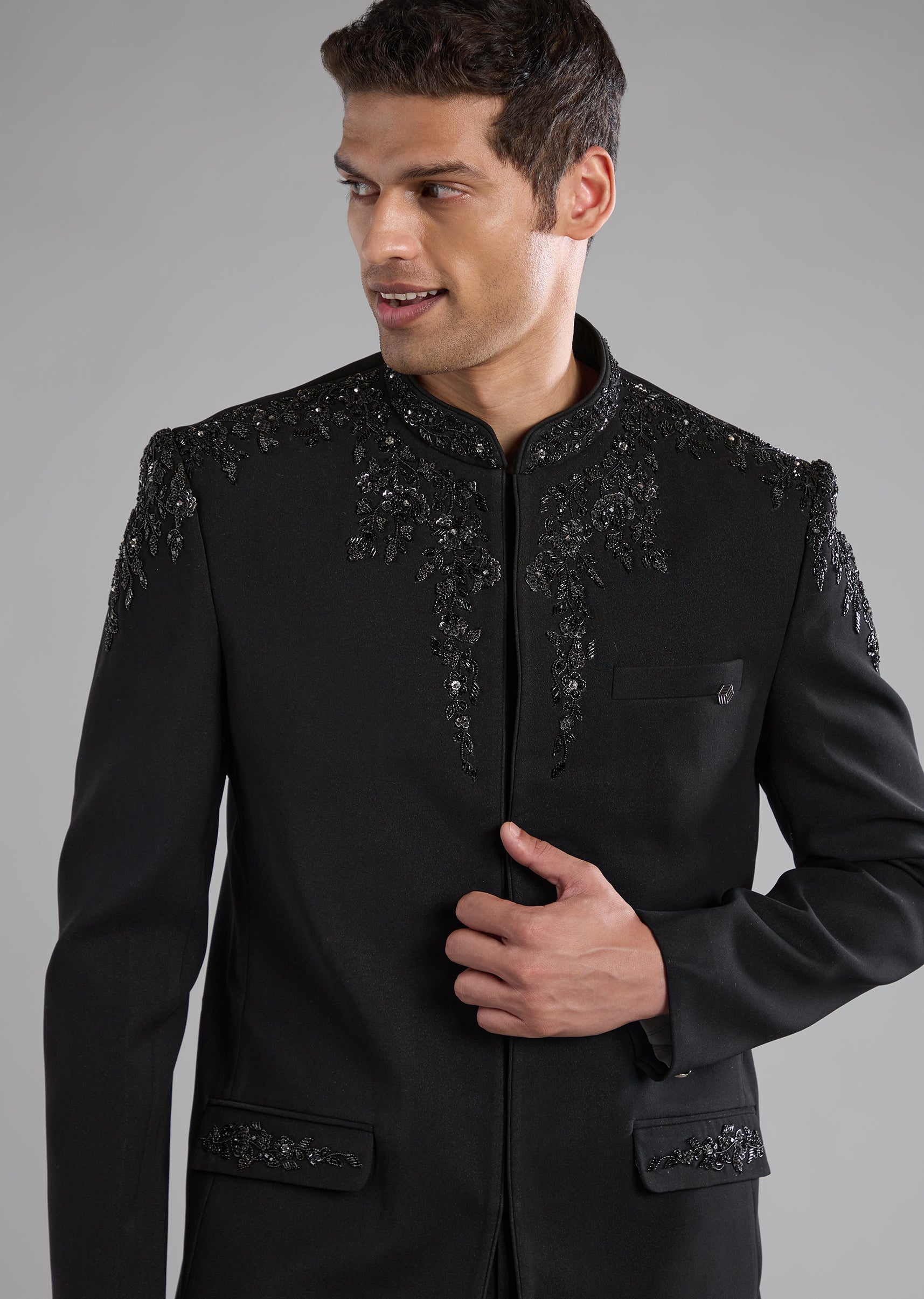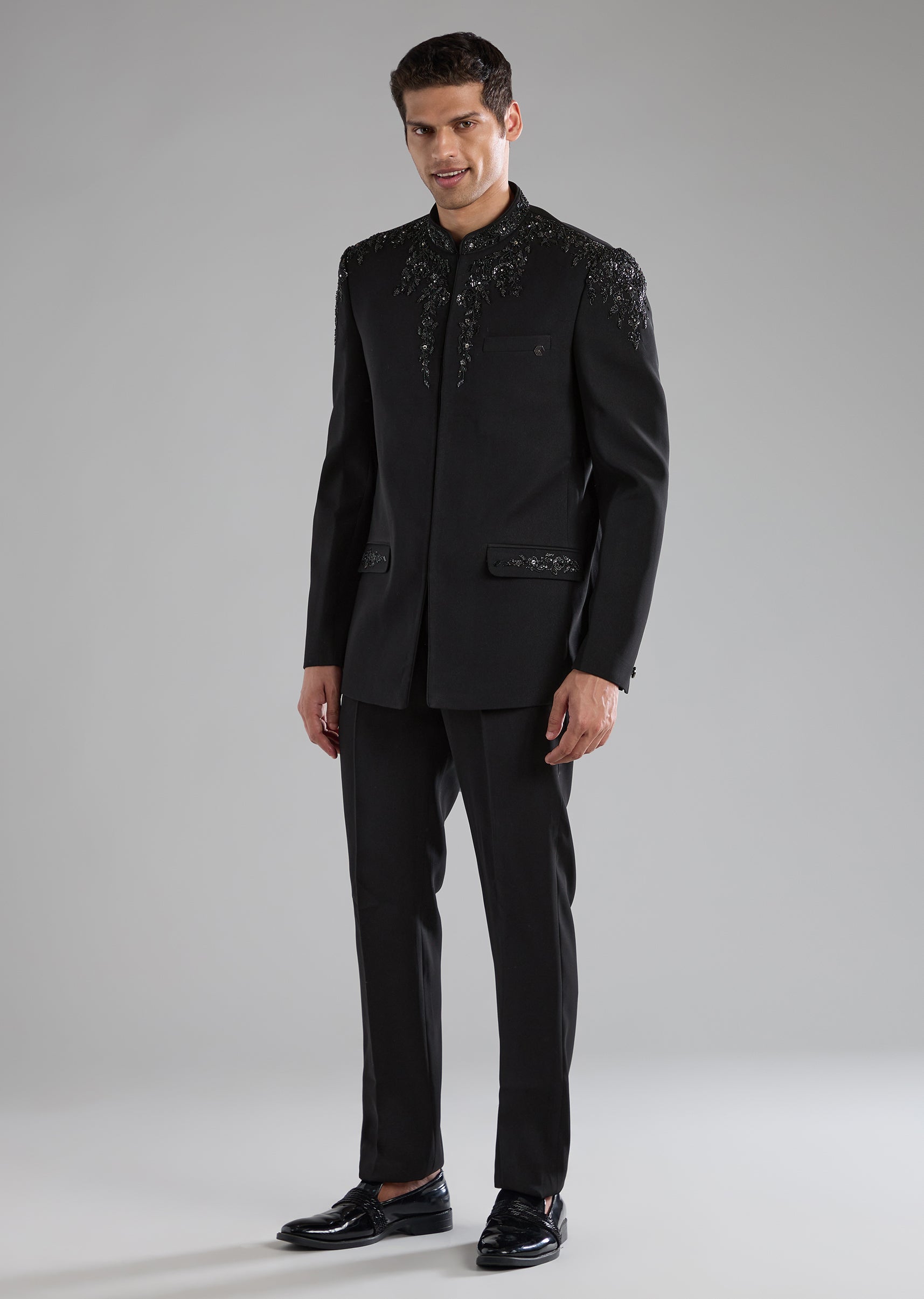 Black Rayon Jodhpuri Pant Set with Zardozi Work