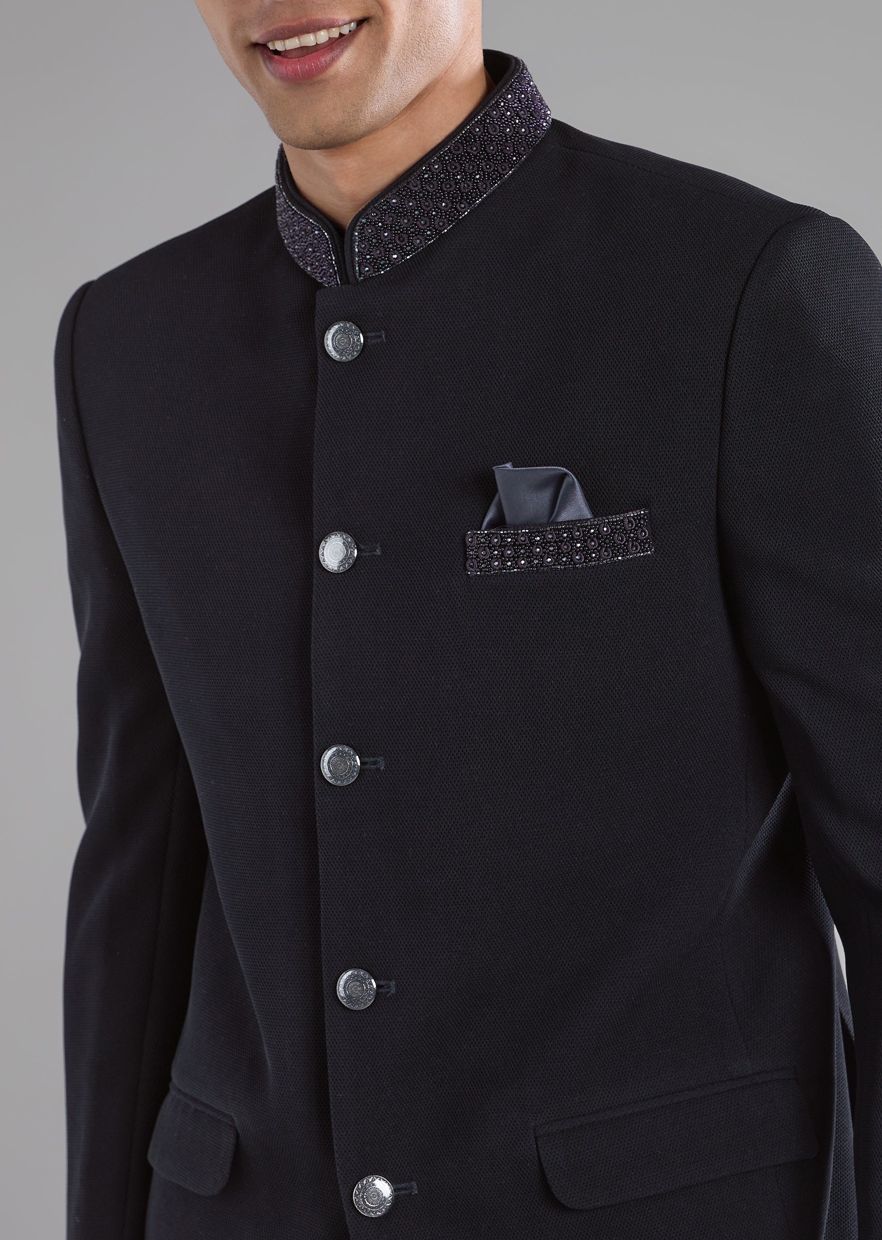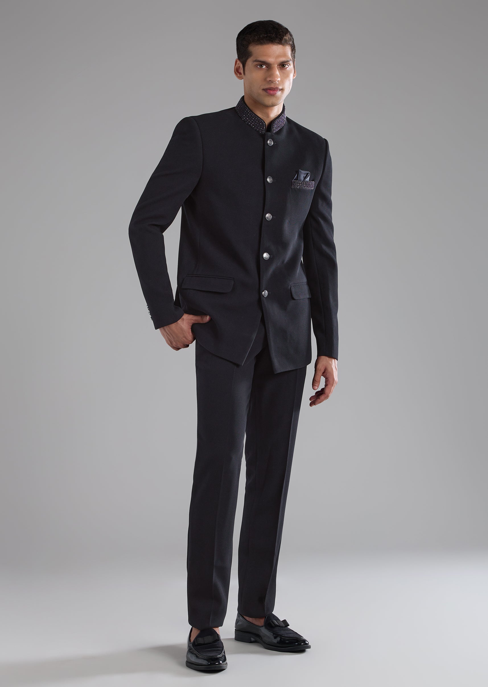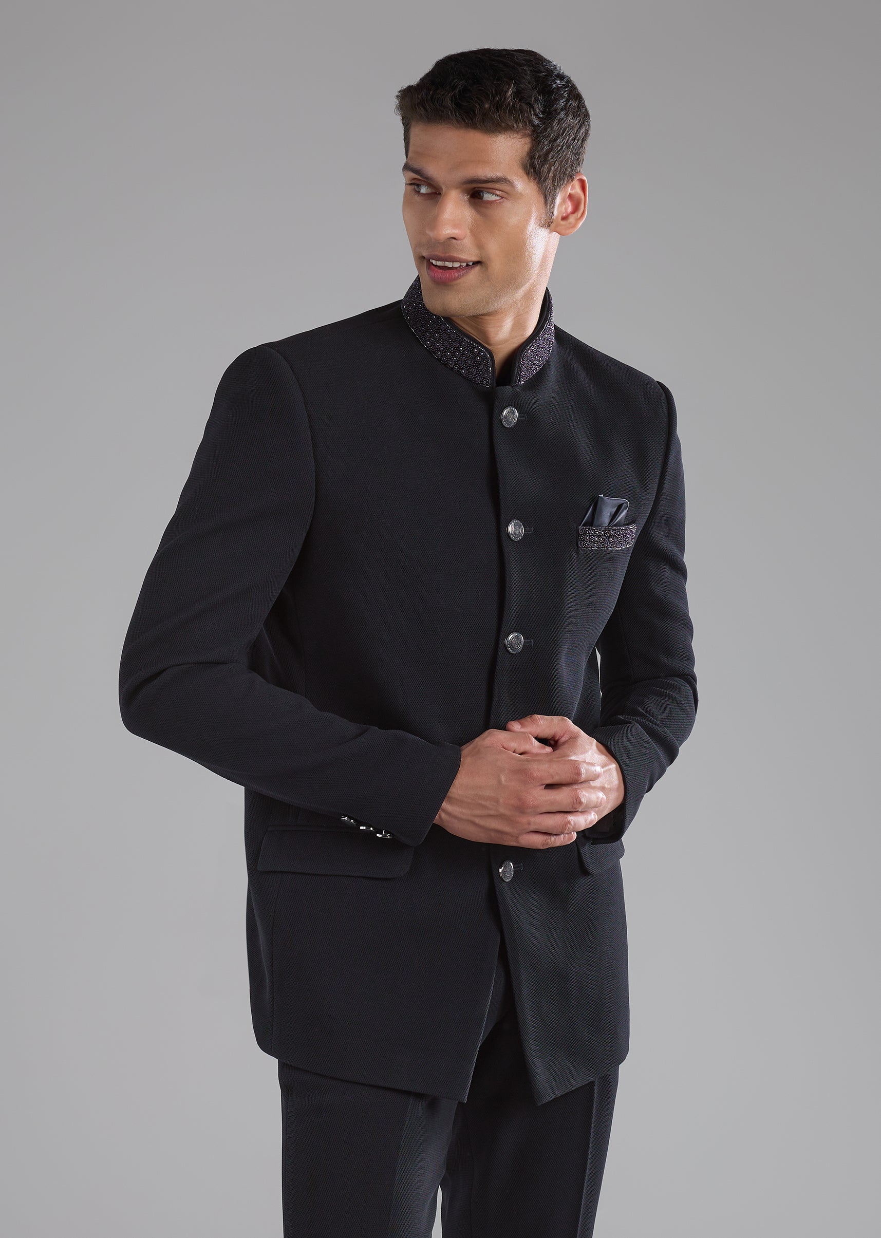 Subtle detailing and clean tailoring define this rayon jodhpuri pants set, created for understated festive elegance. Fine thread and resham embroidery is enhanced with delicate stone and bead accents, lending a refined glow without overwhelming the look. The full sleeves and mandarin collar bring a dignified structure that reflects classic jodhpuri styling. A versatile choice for weddings, festive functions, and formal gatherings where quiet sophistication stands out.Awarded as the Most Trusted Brand, we're delivering styles you love, just as promised.