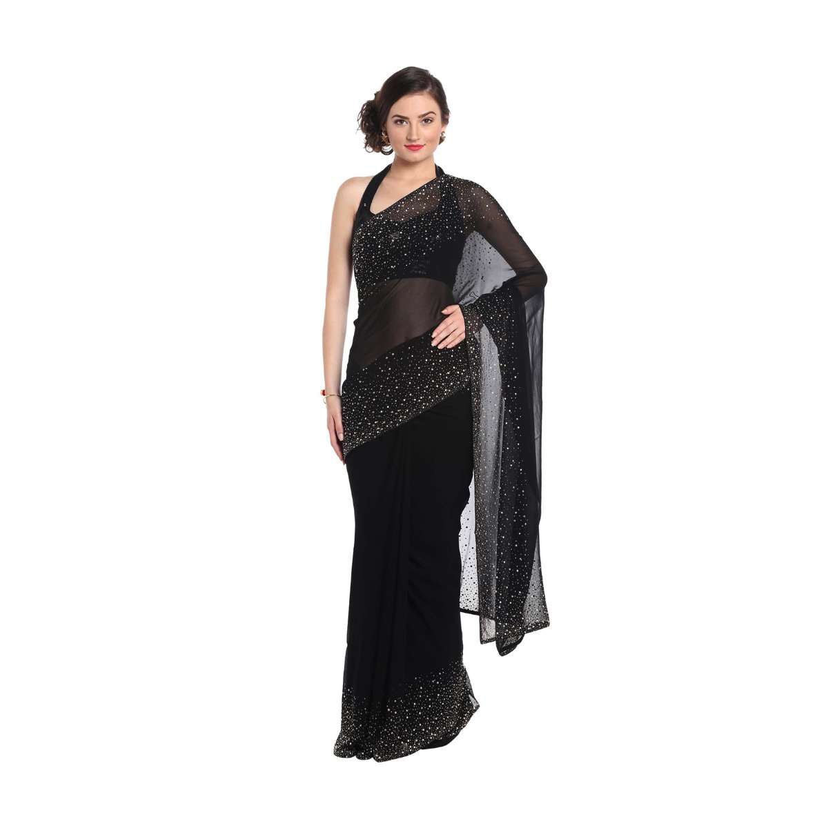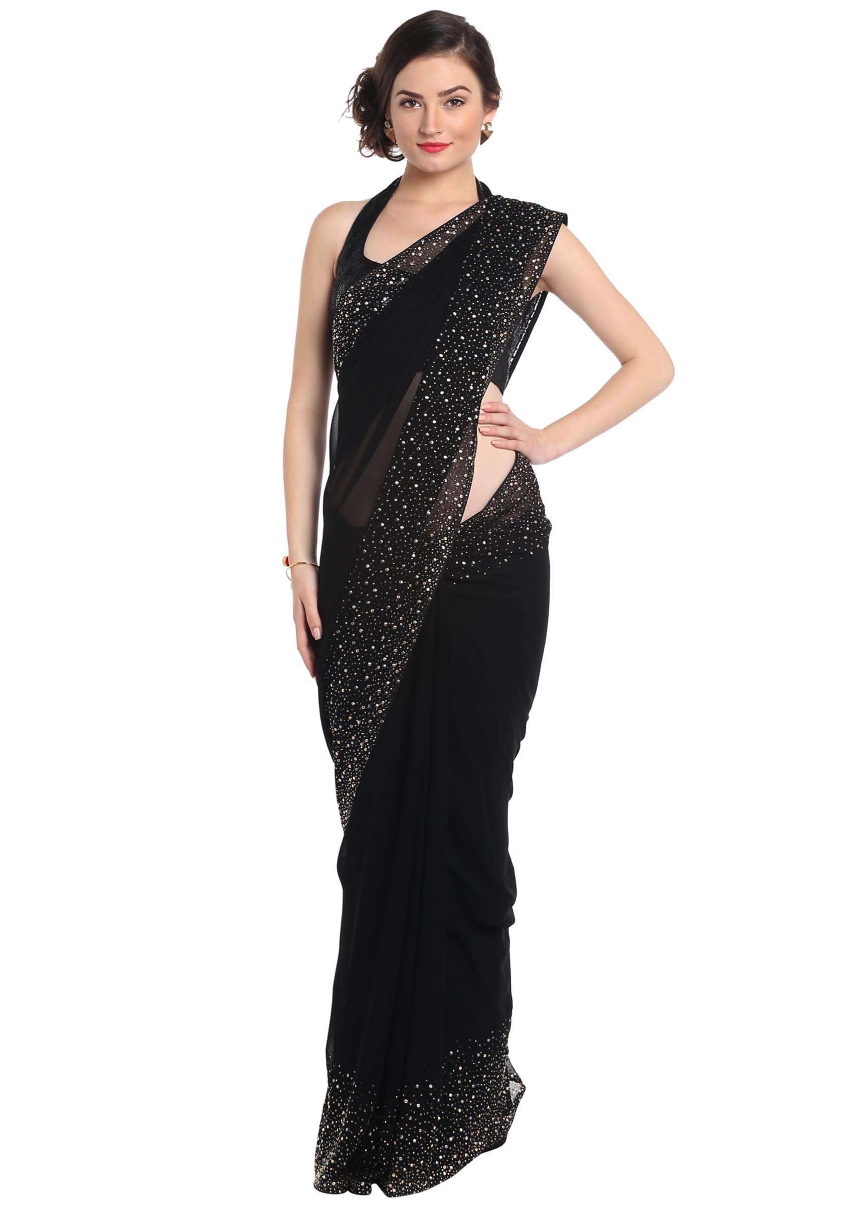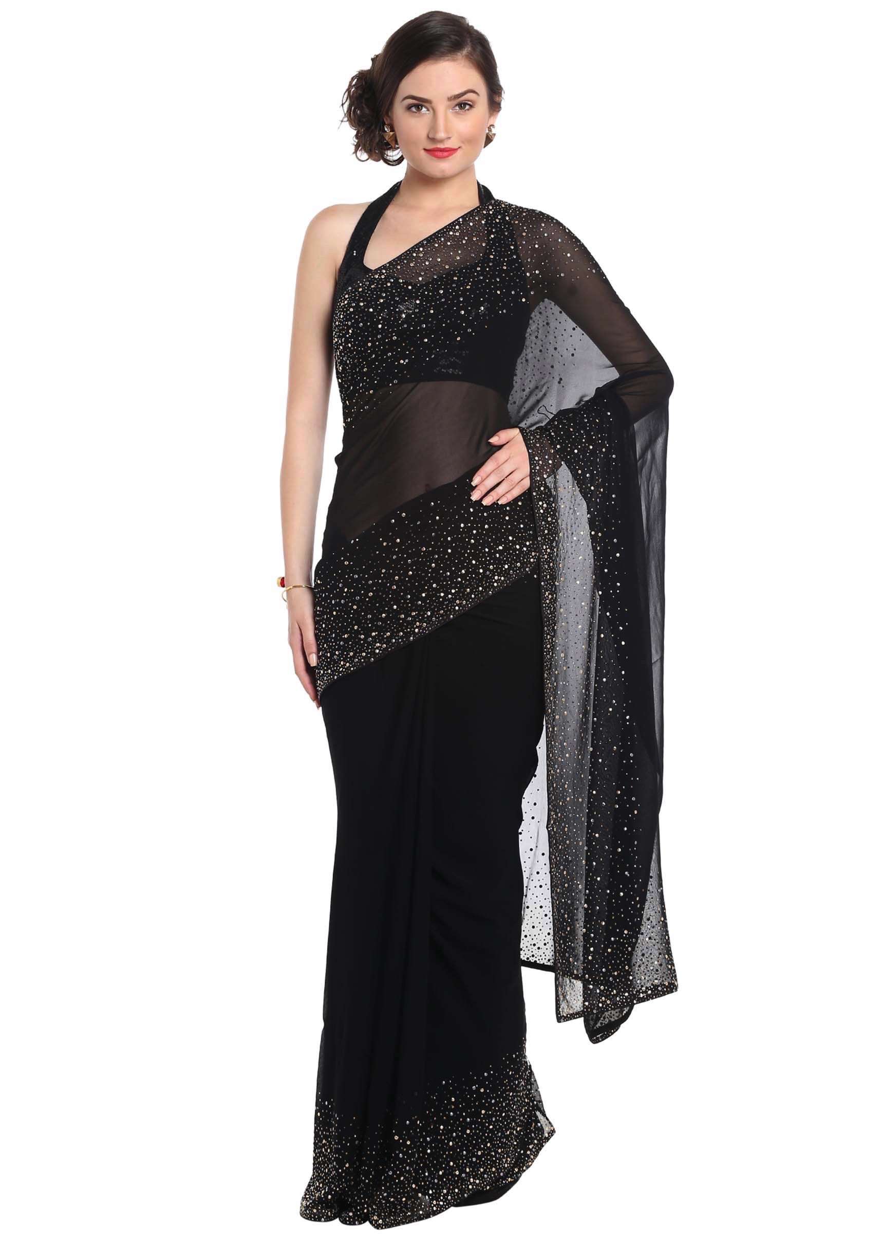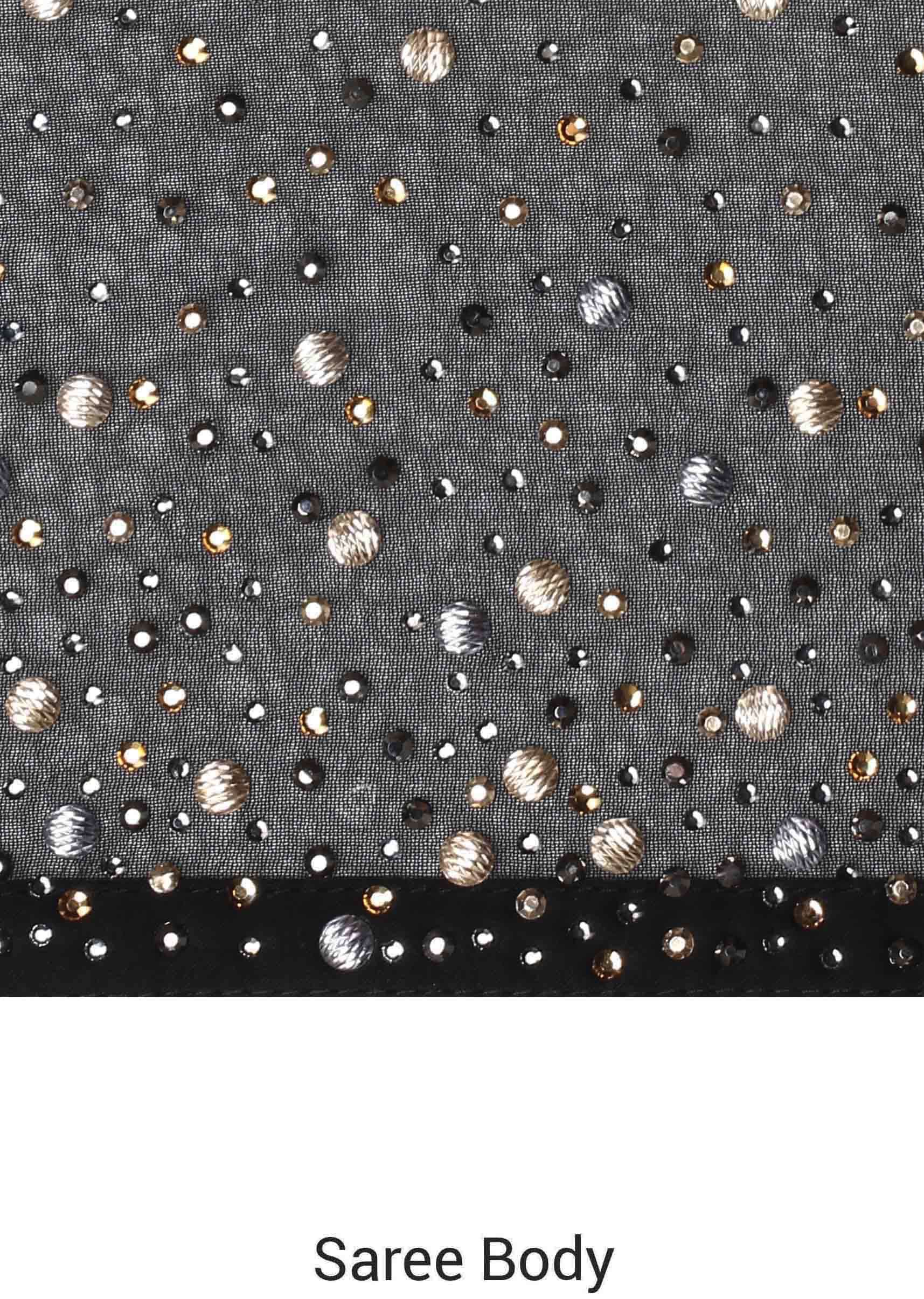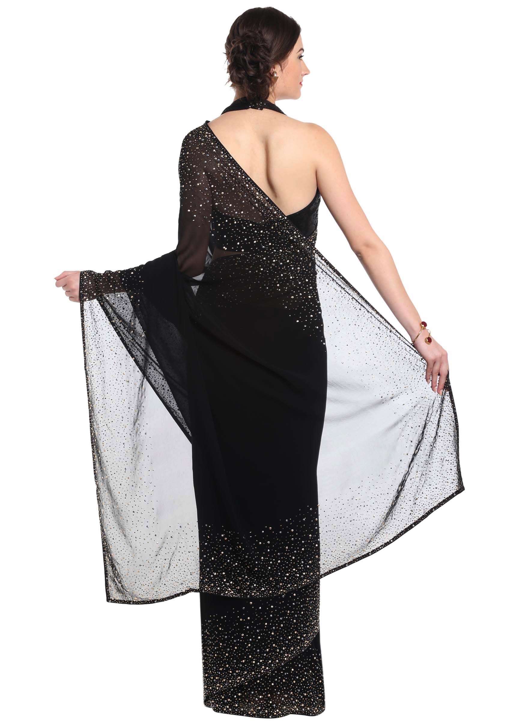 Black saree adorn in gold and silver kundan embroidery only on Kalki
