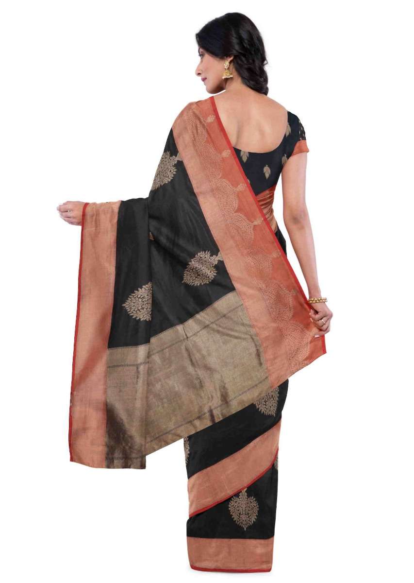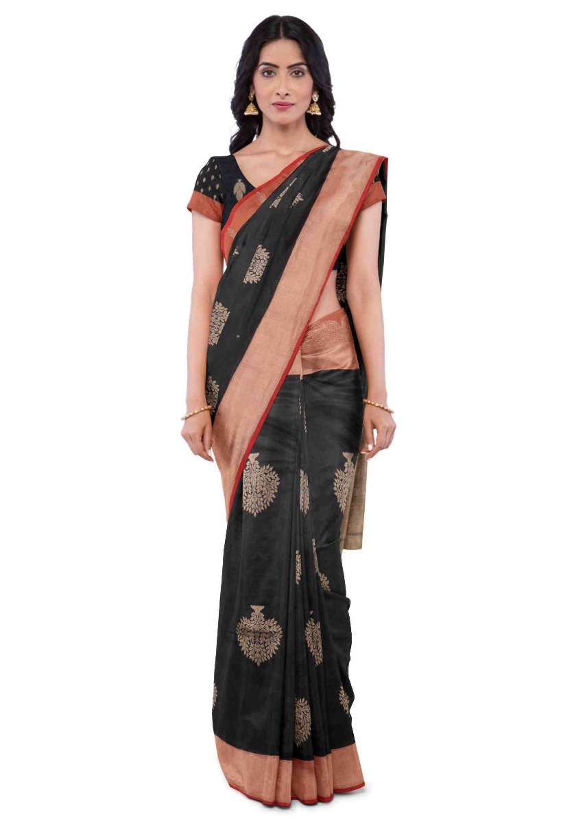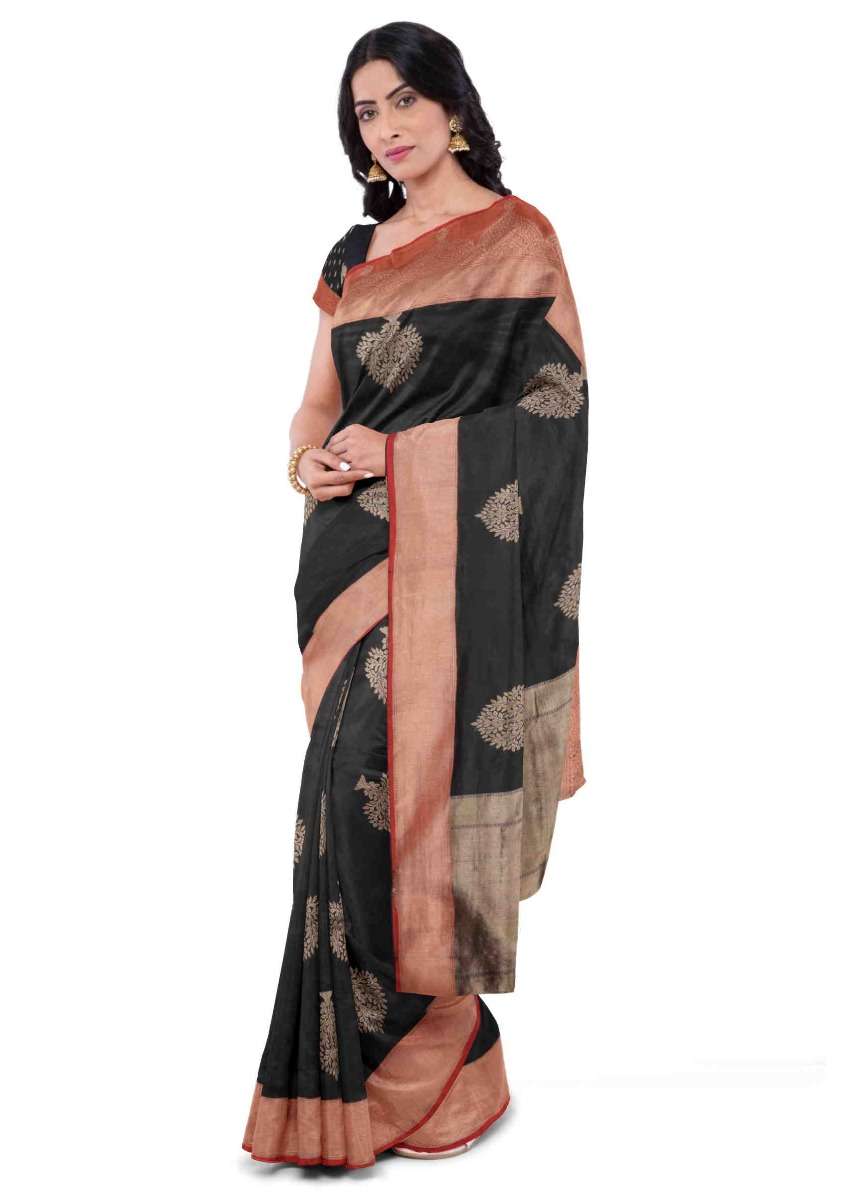 Black Saree In Banarasi Silk With Matching Blouse Piece Online - Kalki Fashion
