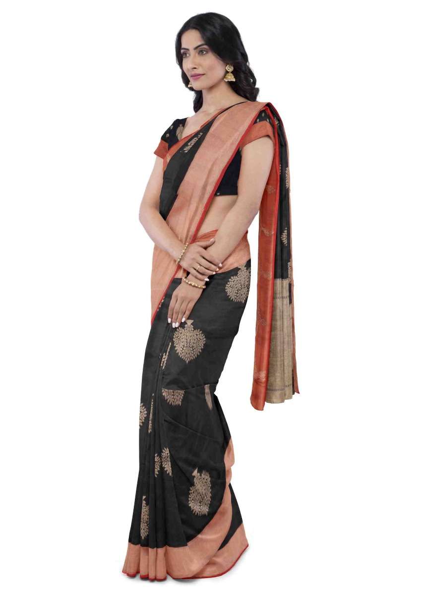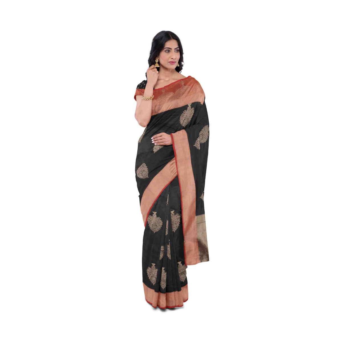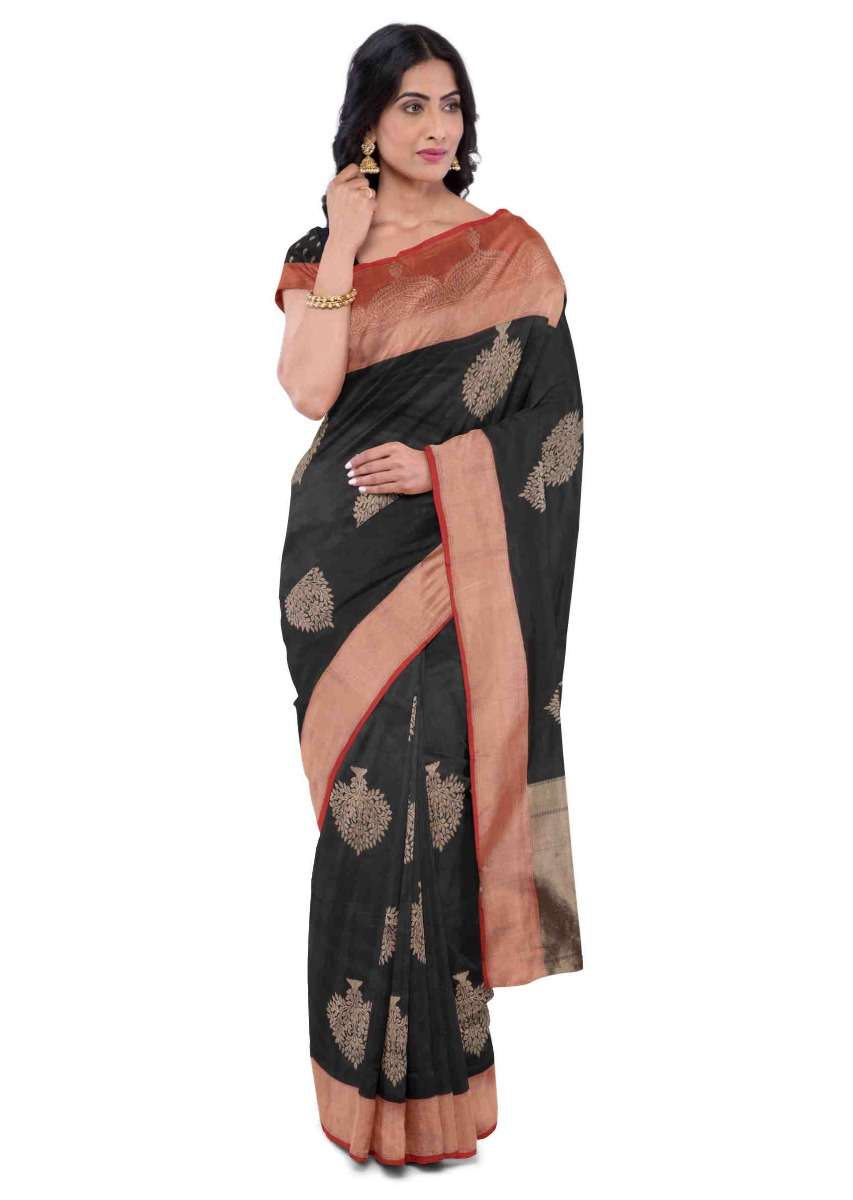 Black Saree In Banarasi Silk With Matching Blouse Piece Online - Kalki Fashion