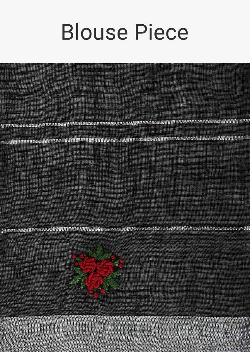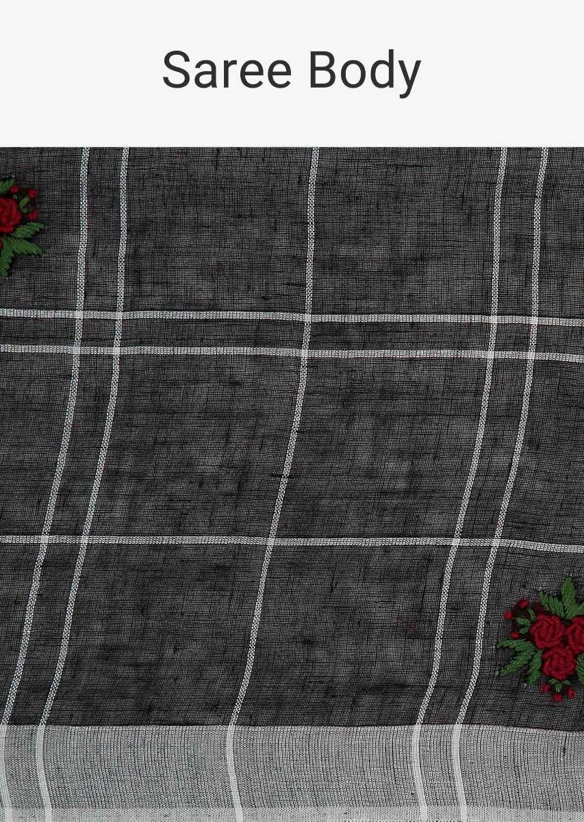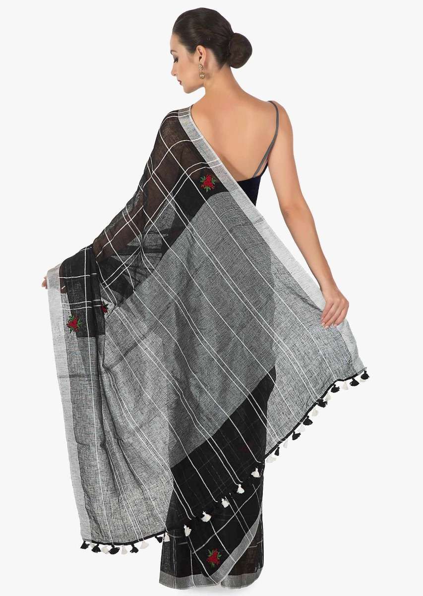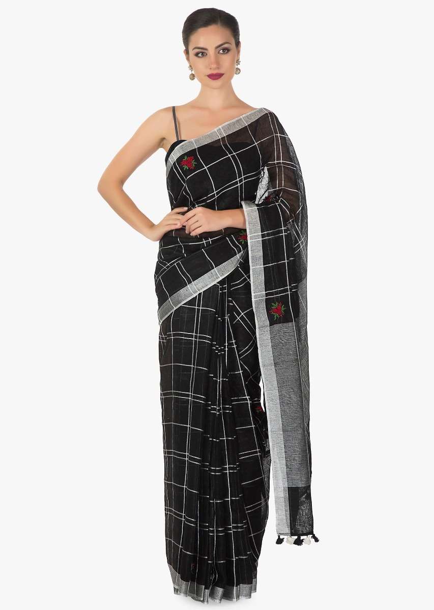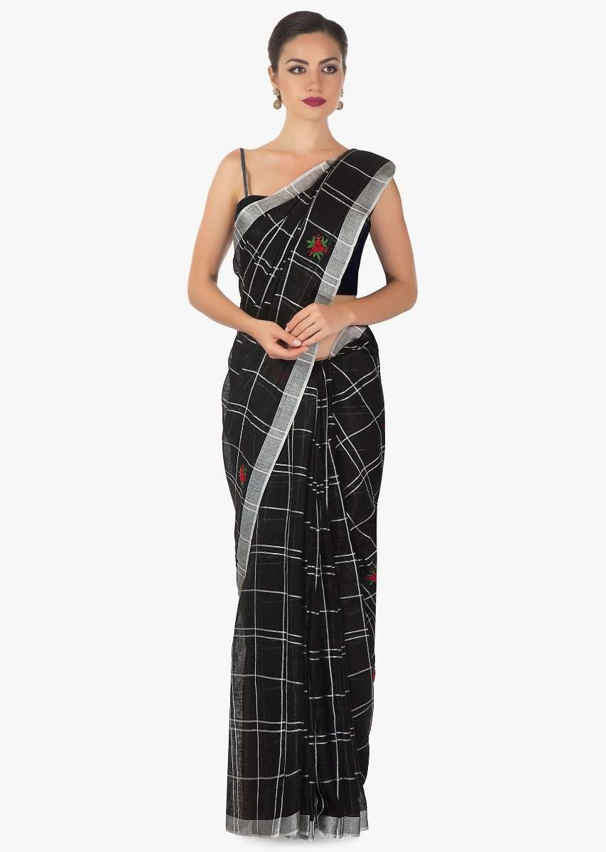 Black Saree In Cotton Silk With Checks Pattern Online - Kalki Fashion