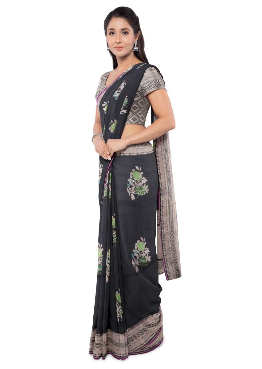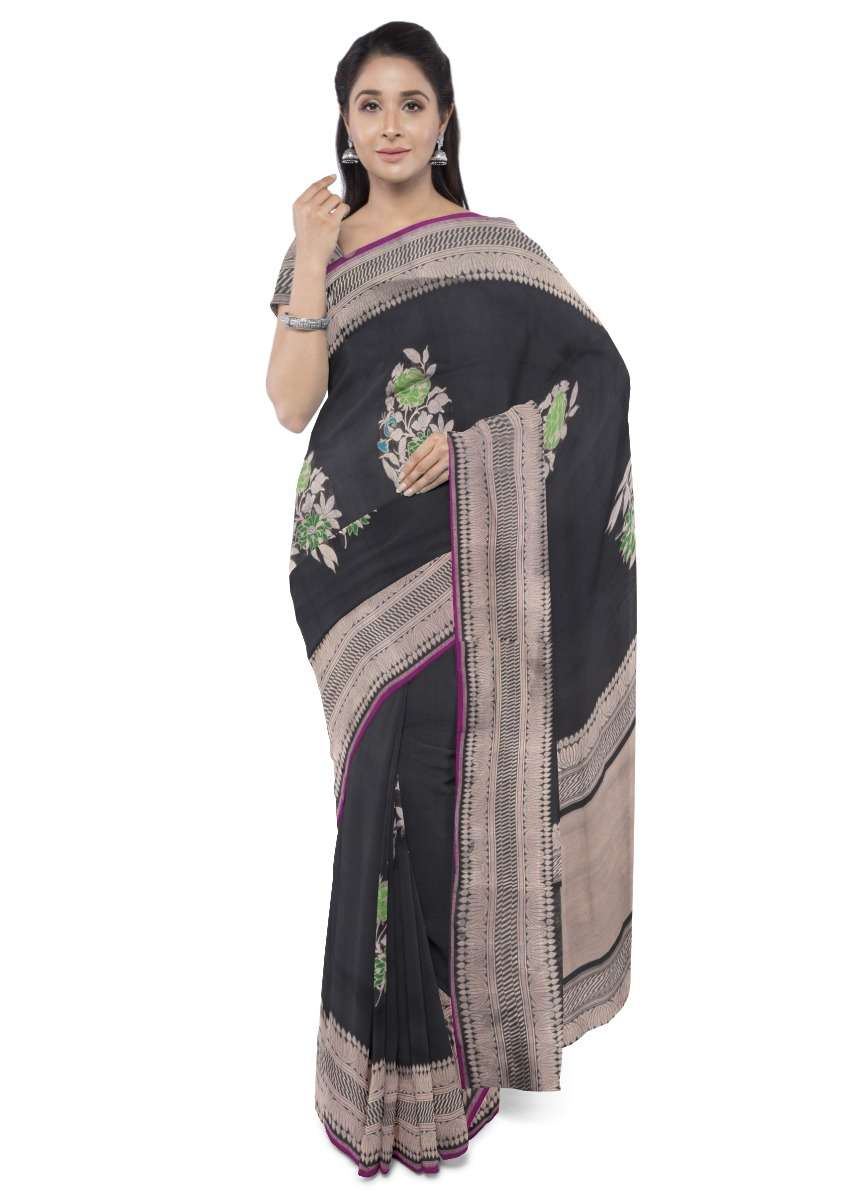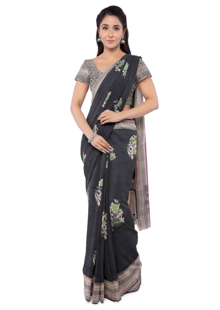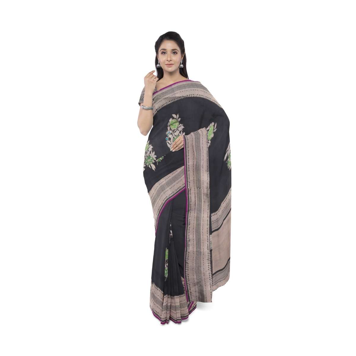 Black Saree In Jacquard Chanderi Silk With Matching Blouse Piece Online - Kalki Fashion
