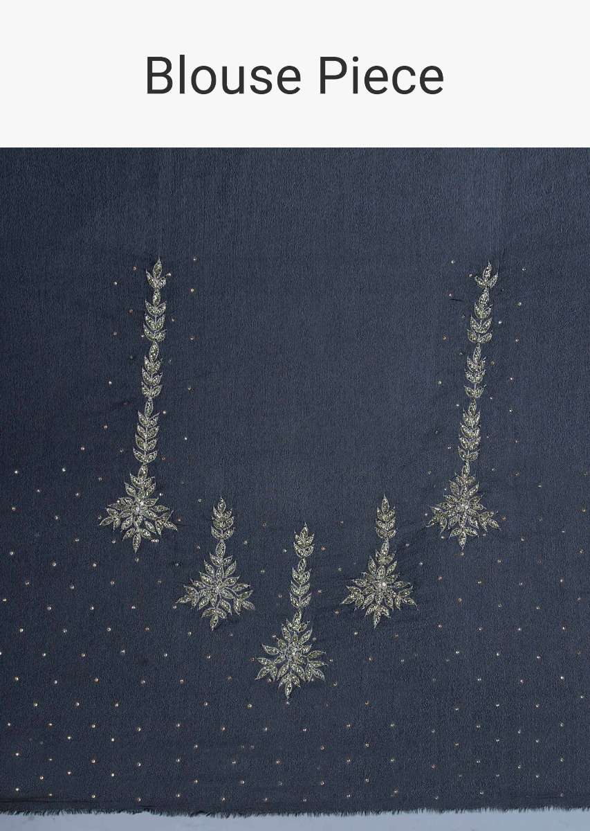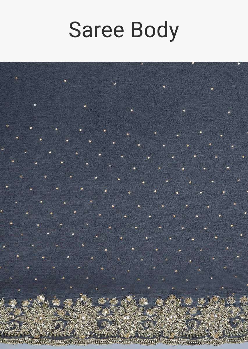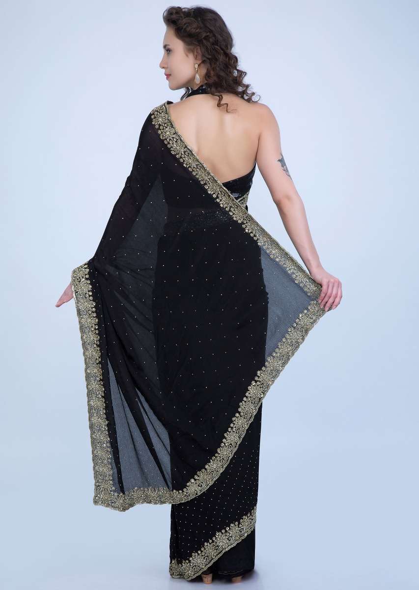 Black Satin Saree In Chiffon With Heavy Floral Embroidered Border Online - Kalki Fashion