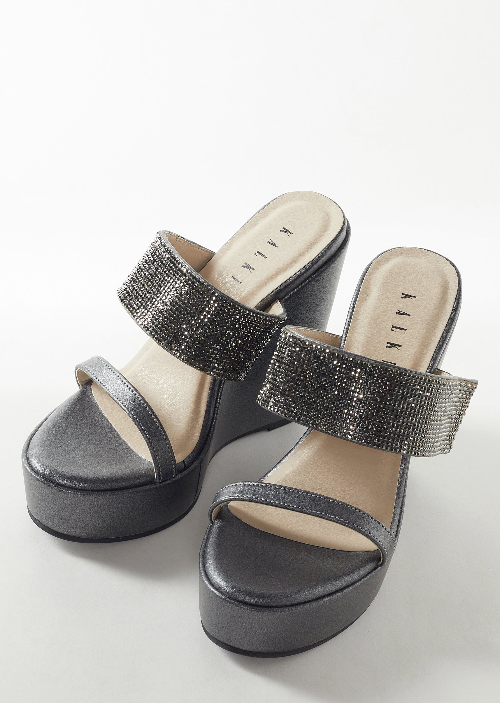 Stylish and versatile, these black festive footwear pieces are crafted in smooth faux leather with subtle embellished detailing that adds a touch of refined sparkle. Designed with a tabletop face... More Product Details