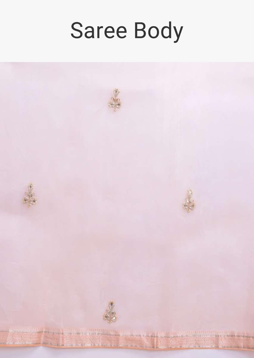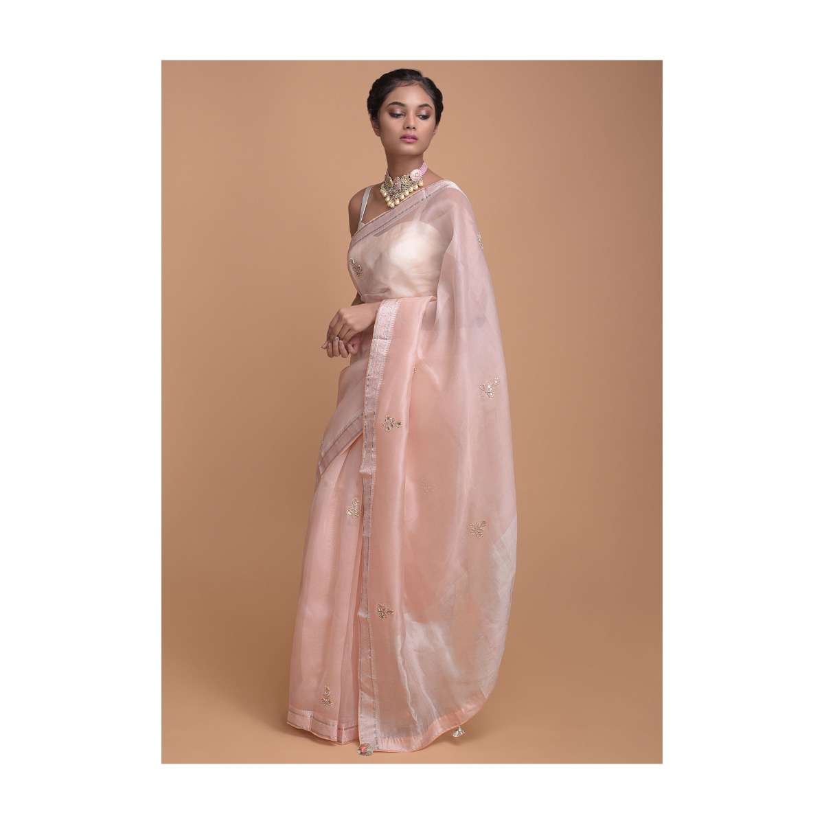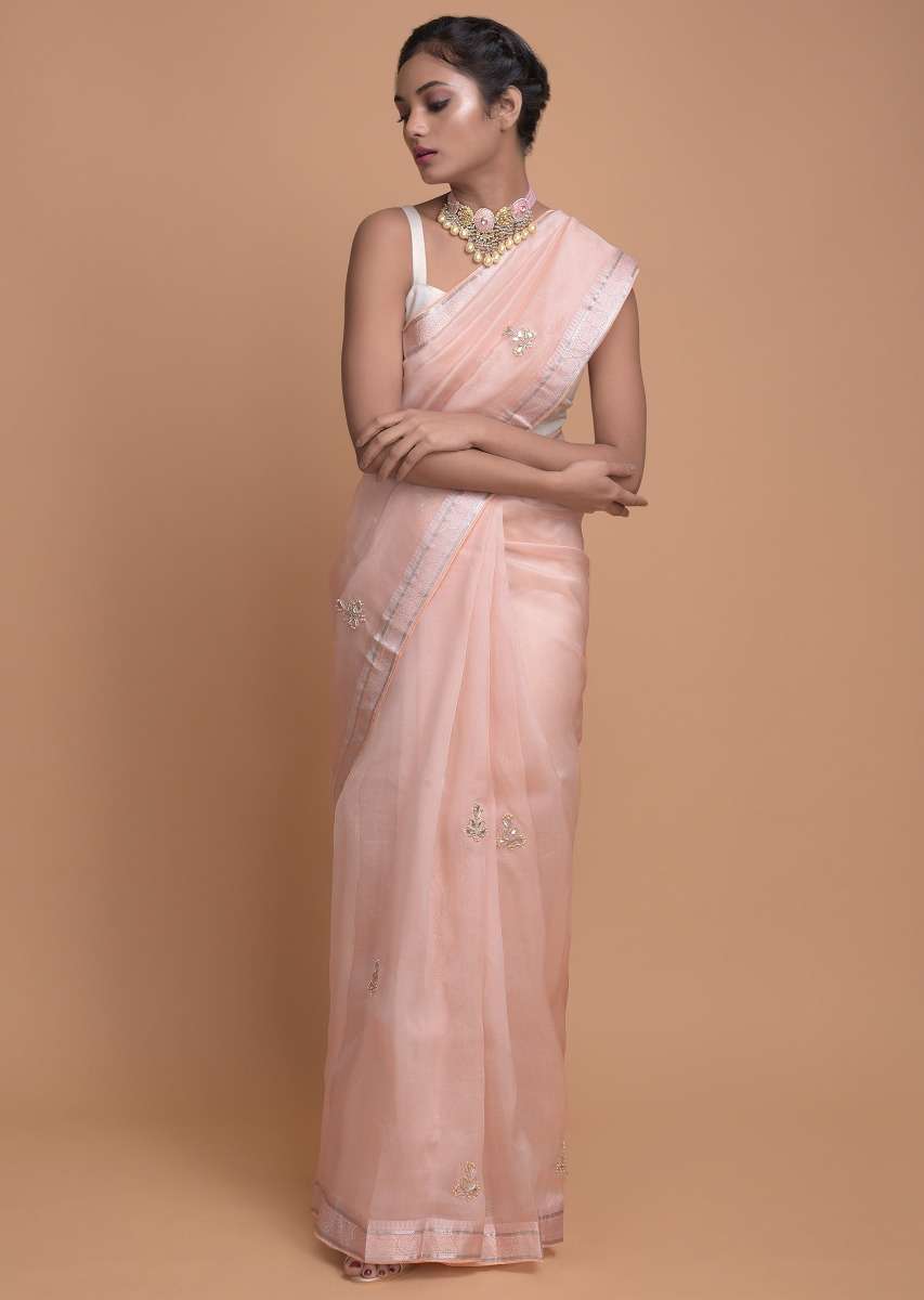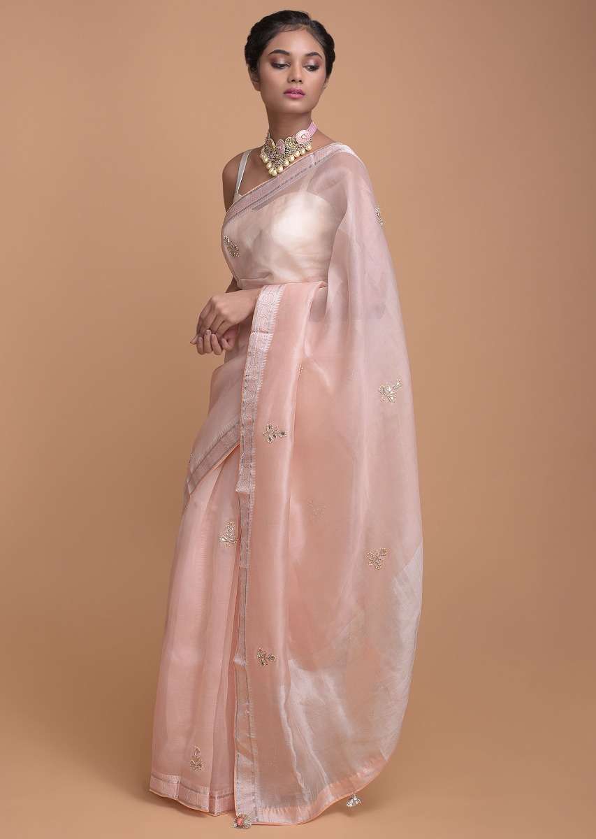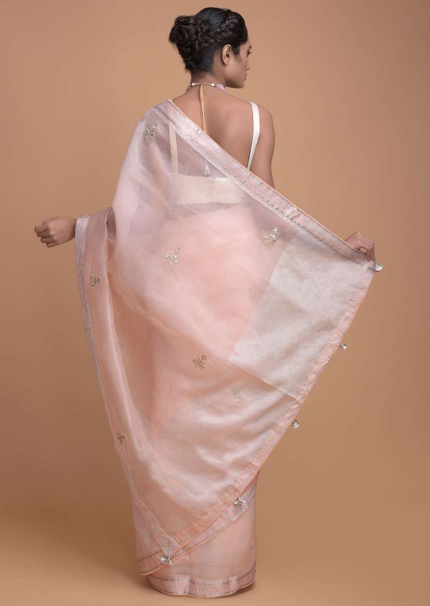 Blossom Peach Saree In Organza Silk With Embroidered Buttis Online - Kalki Fashion