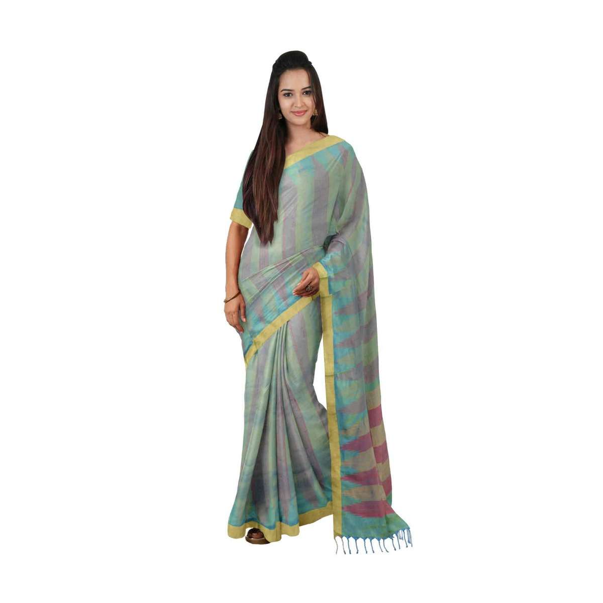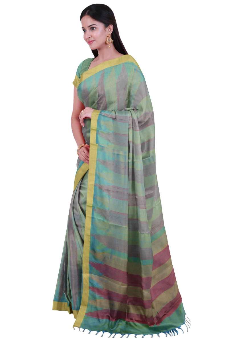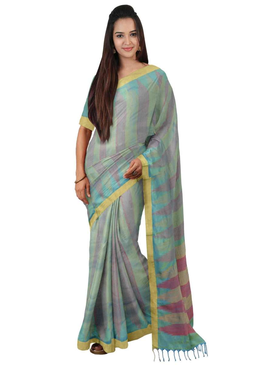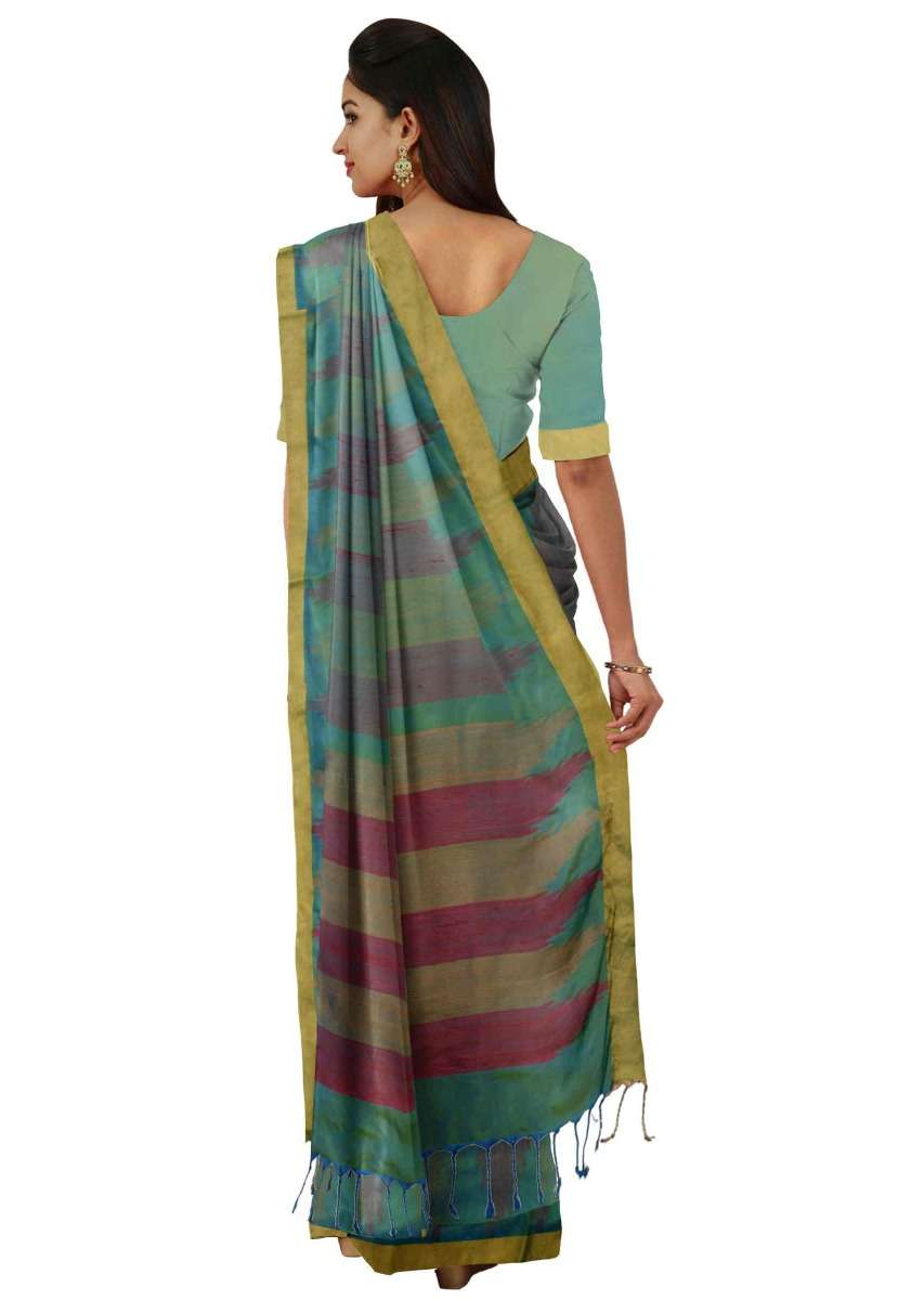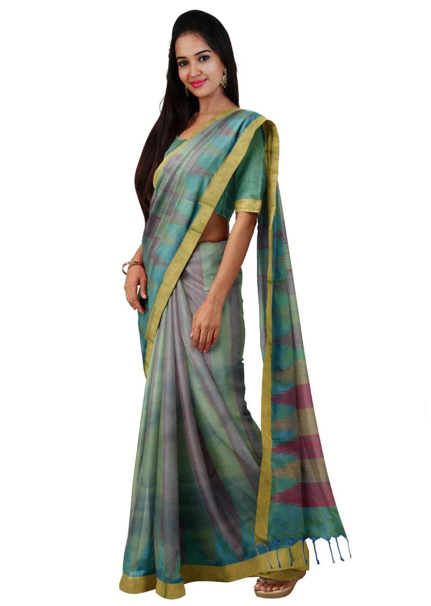 Blue And Green Banarasi Saree In Two Toned Silk With Matching Blouse Piece Online - Kalki Fashion