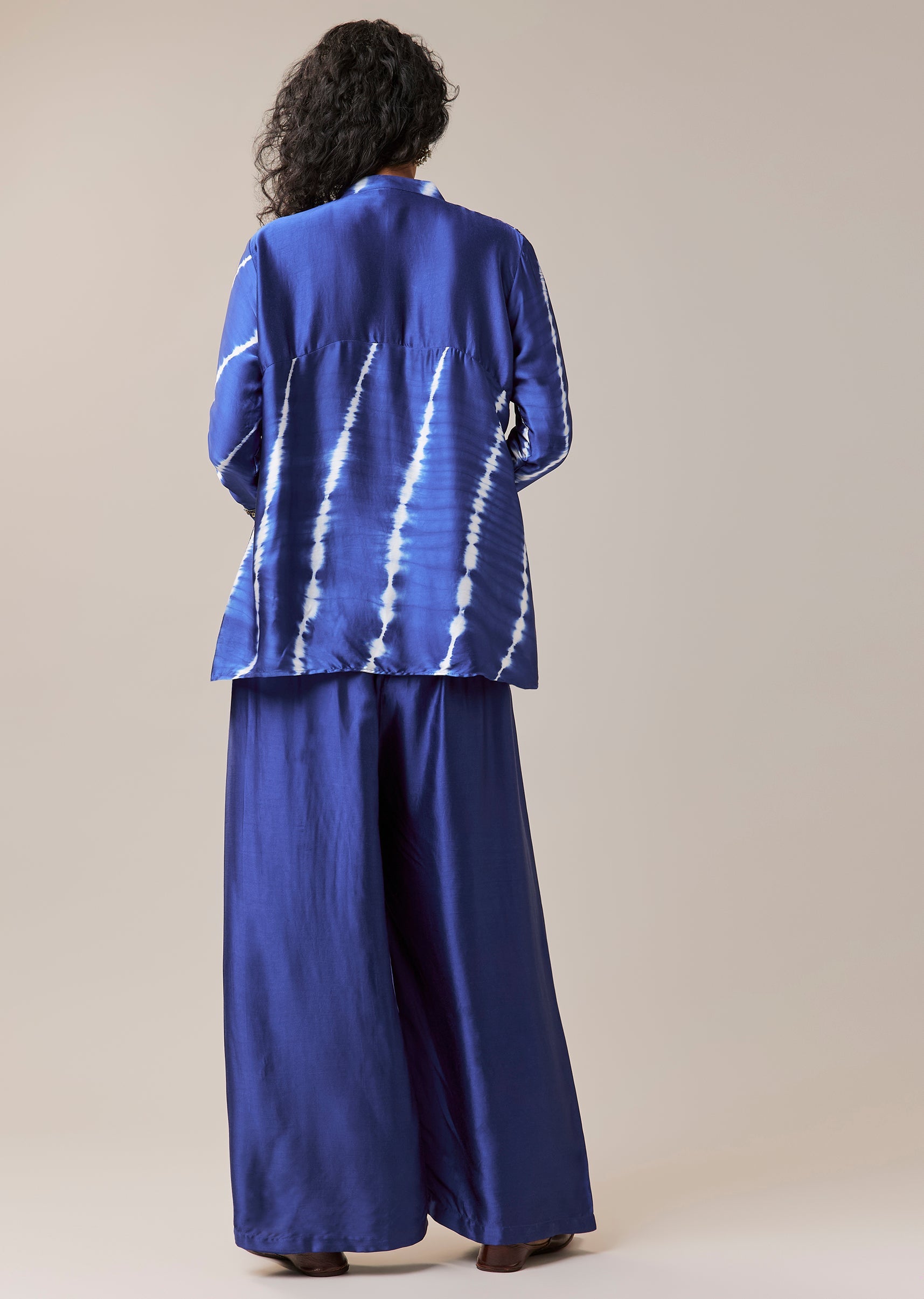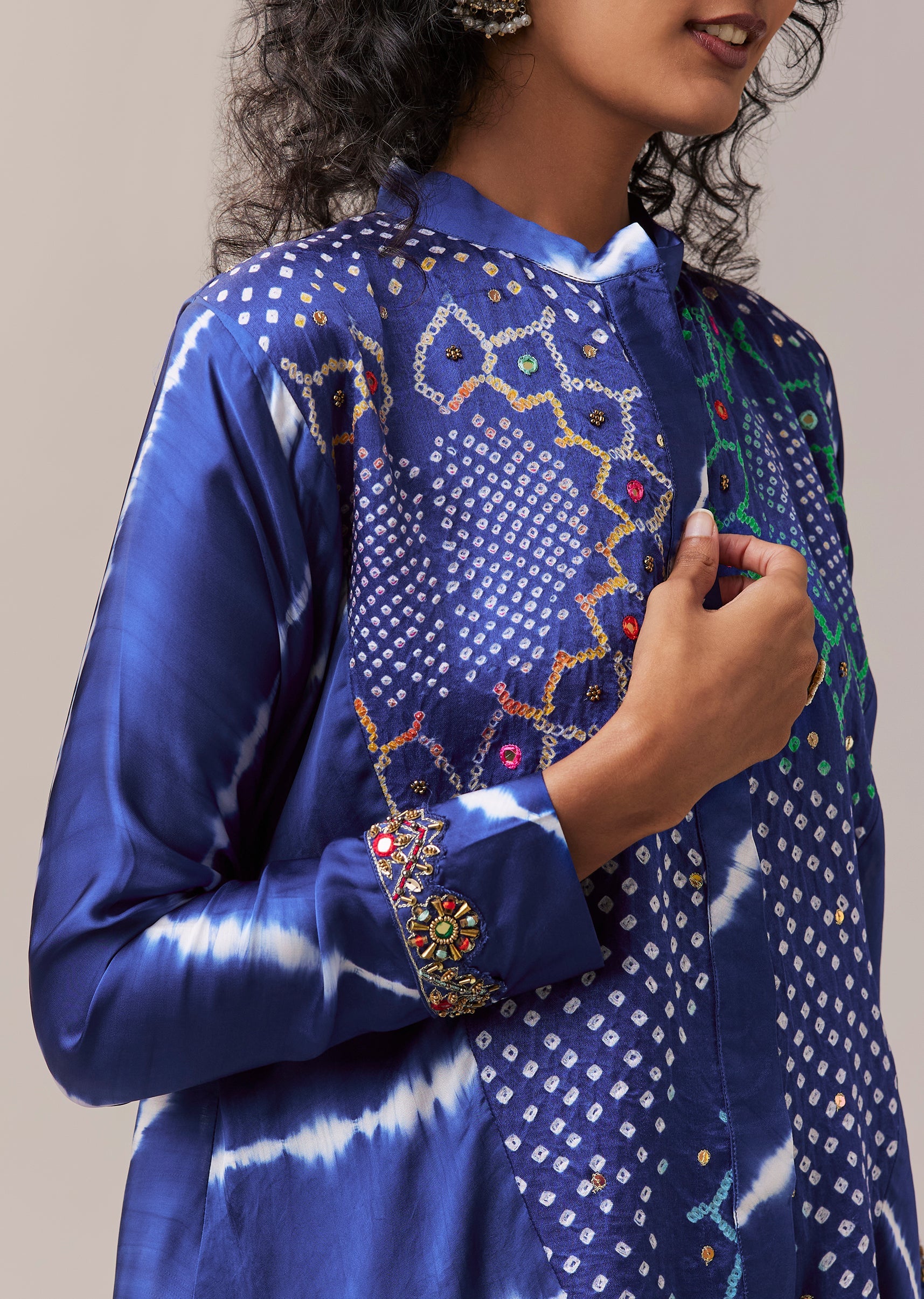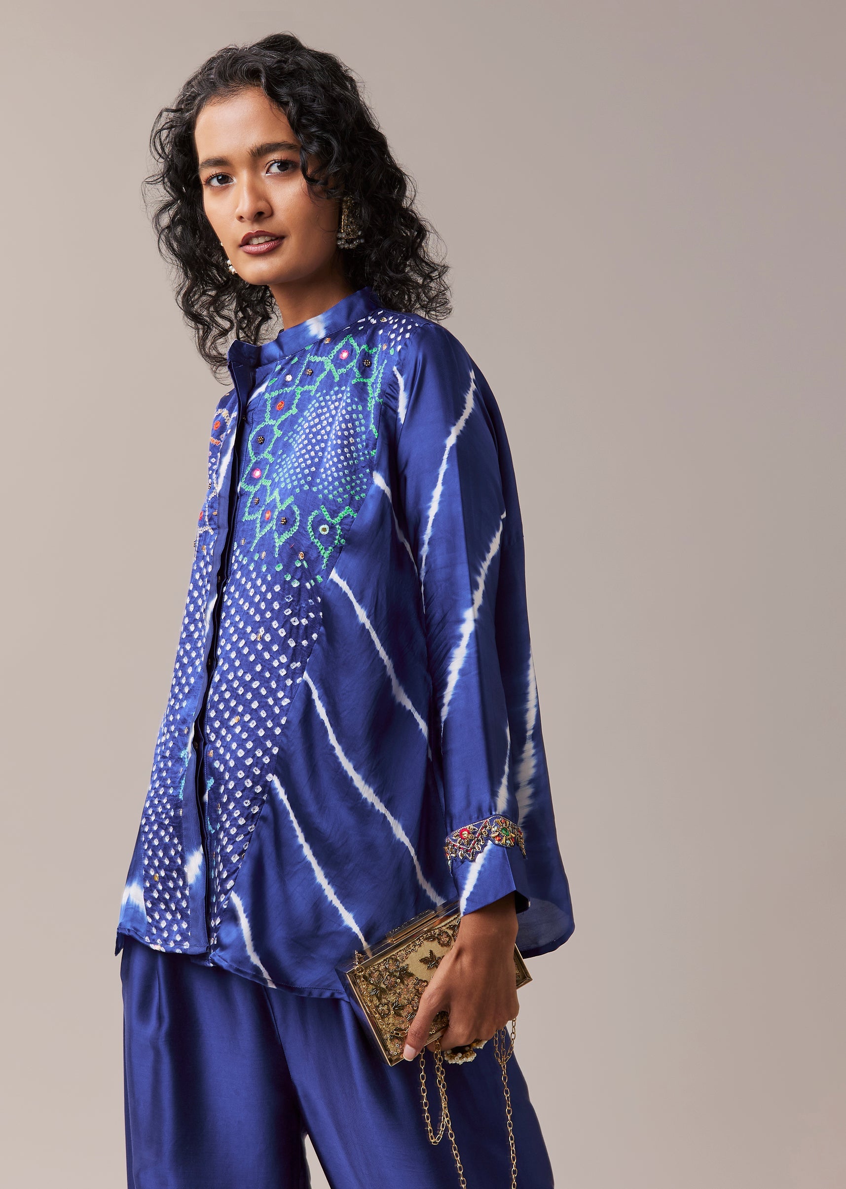 Blue Bandhani and Leheriya Hand Dyed Shirt Pant Set