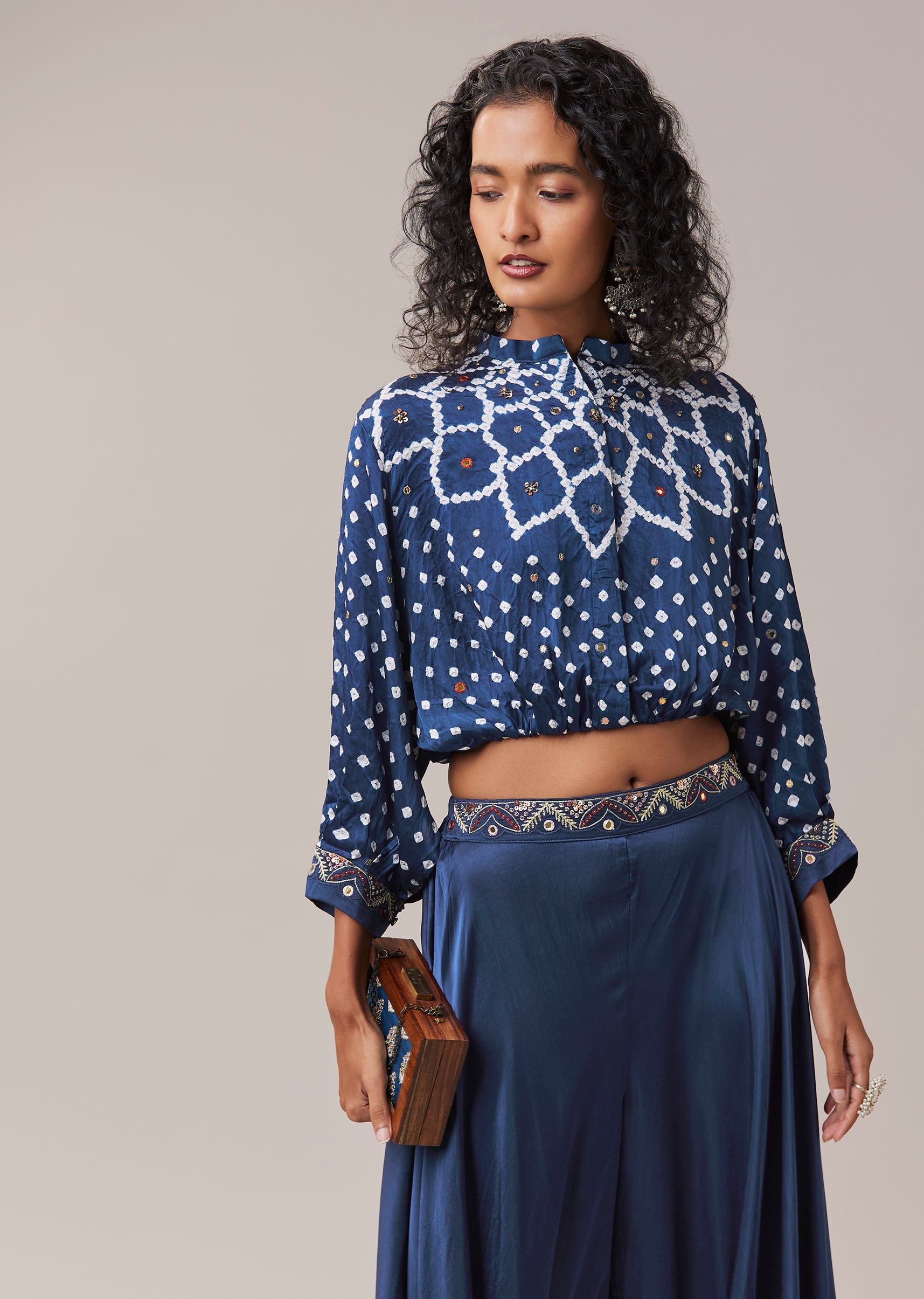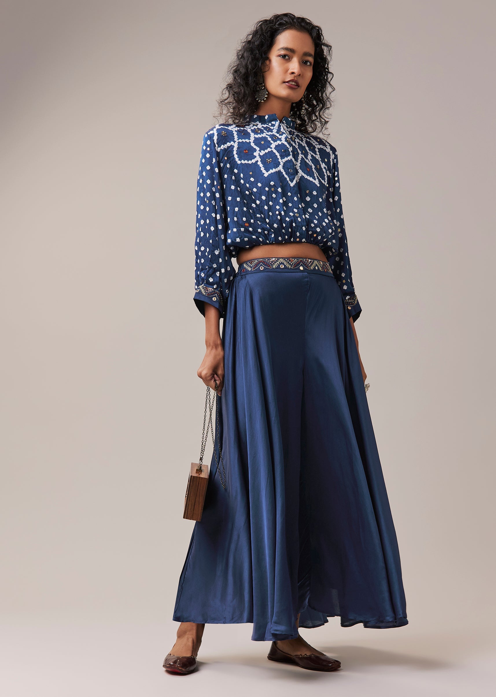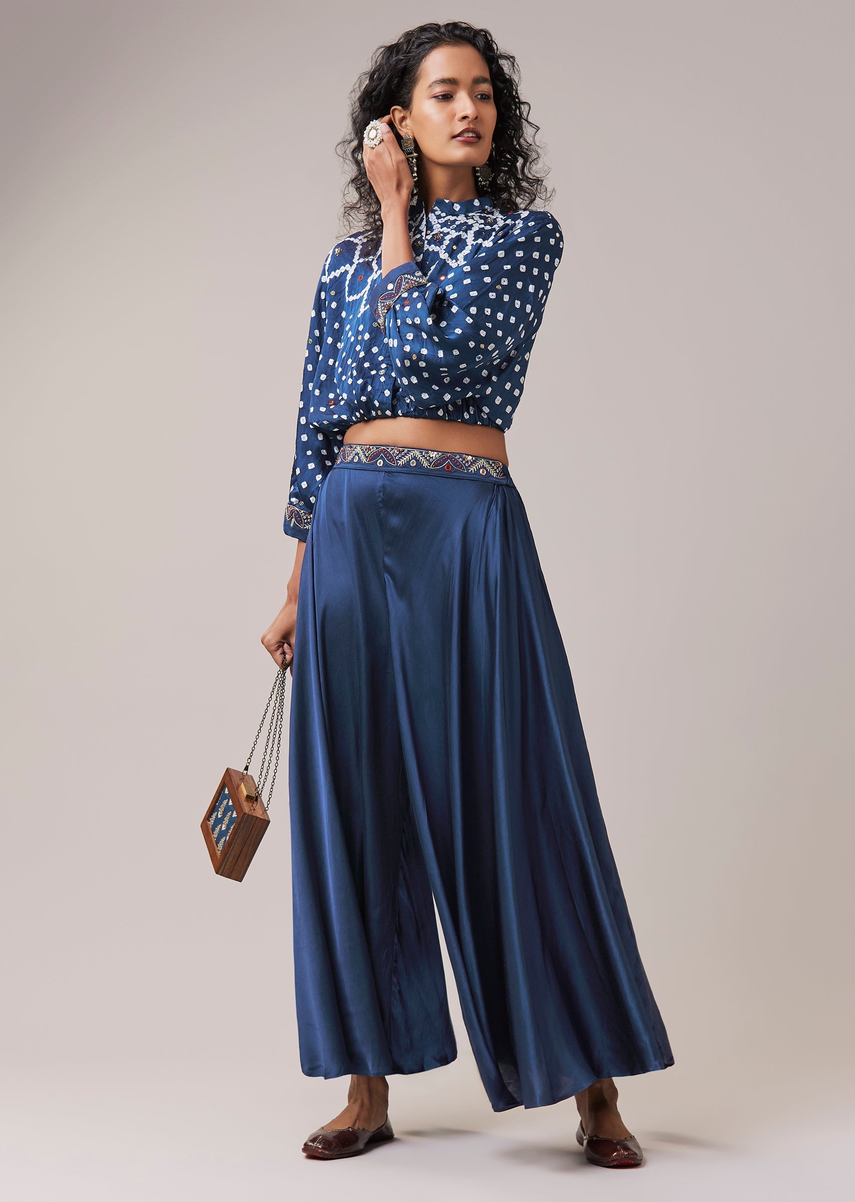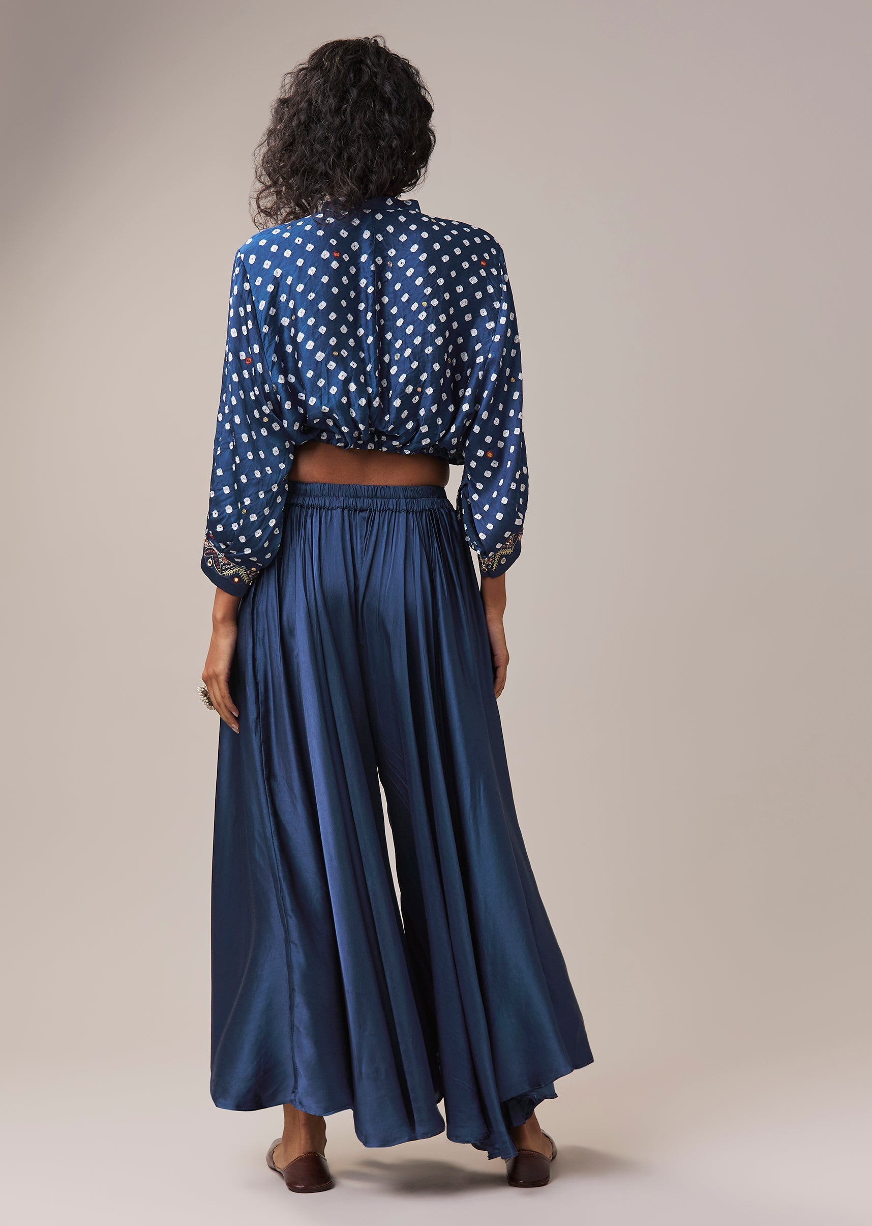 Blue Bandhani Hand Dyed Crop Top and Palazzo Set
