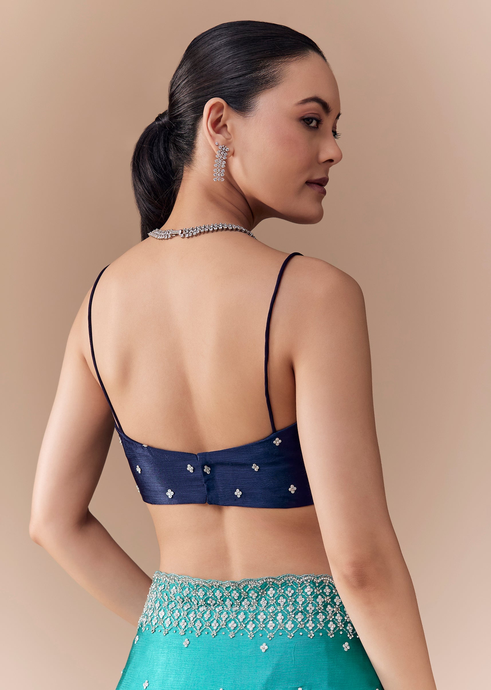 Blue Dual Shaded Embellished Saree with Blouse Fabric