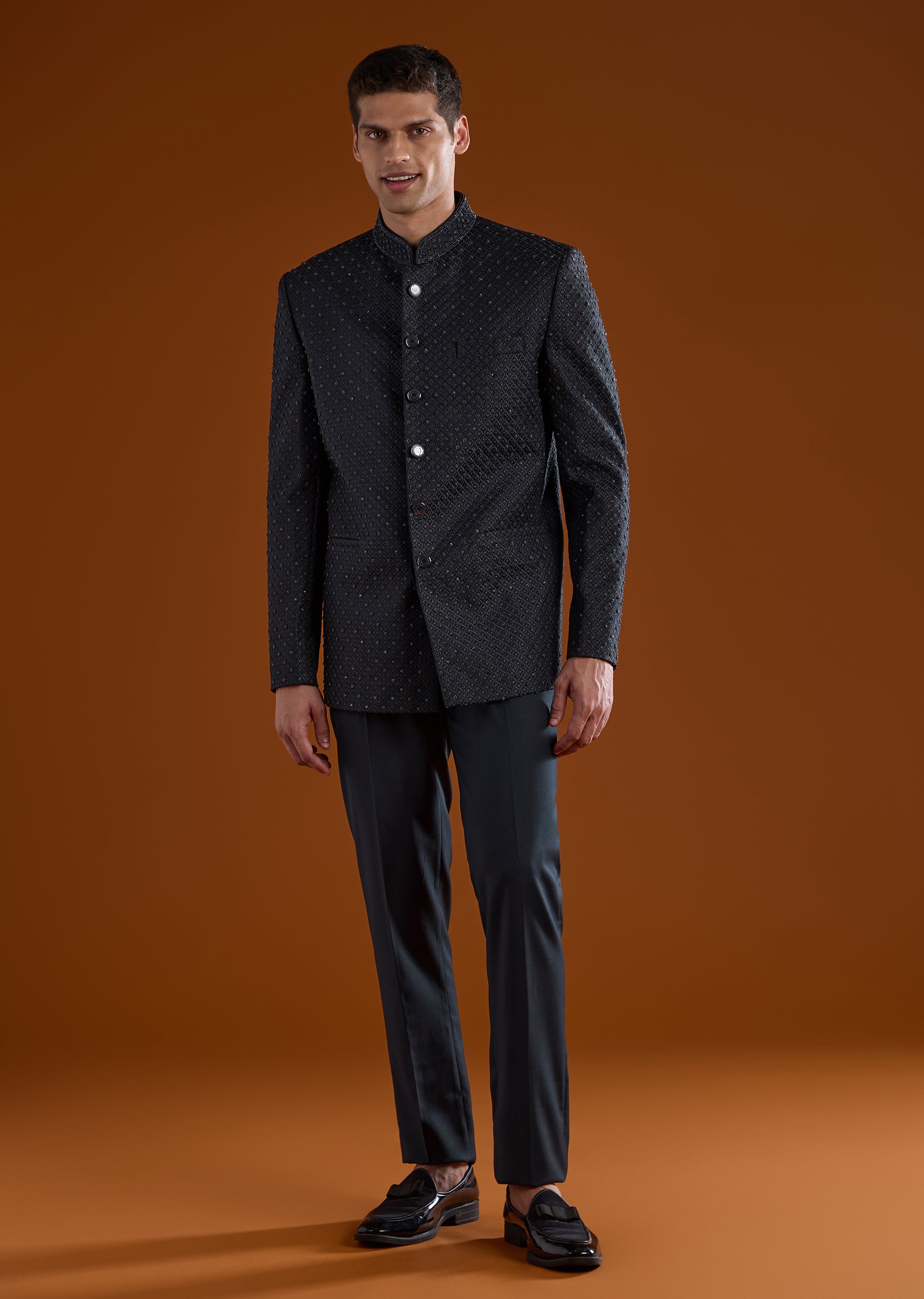 Fit Tips:The jodhpuri should sit neatly on the shoulders and chest, with enough ease through the arms for comfort across long celebrations.