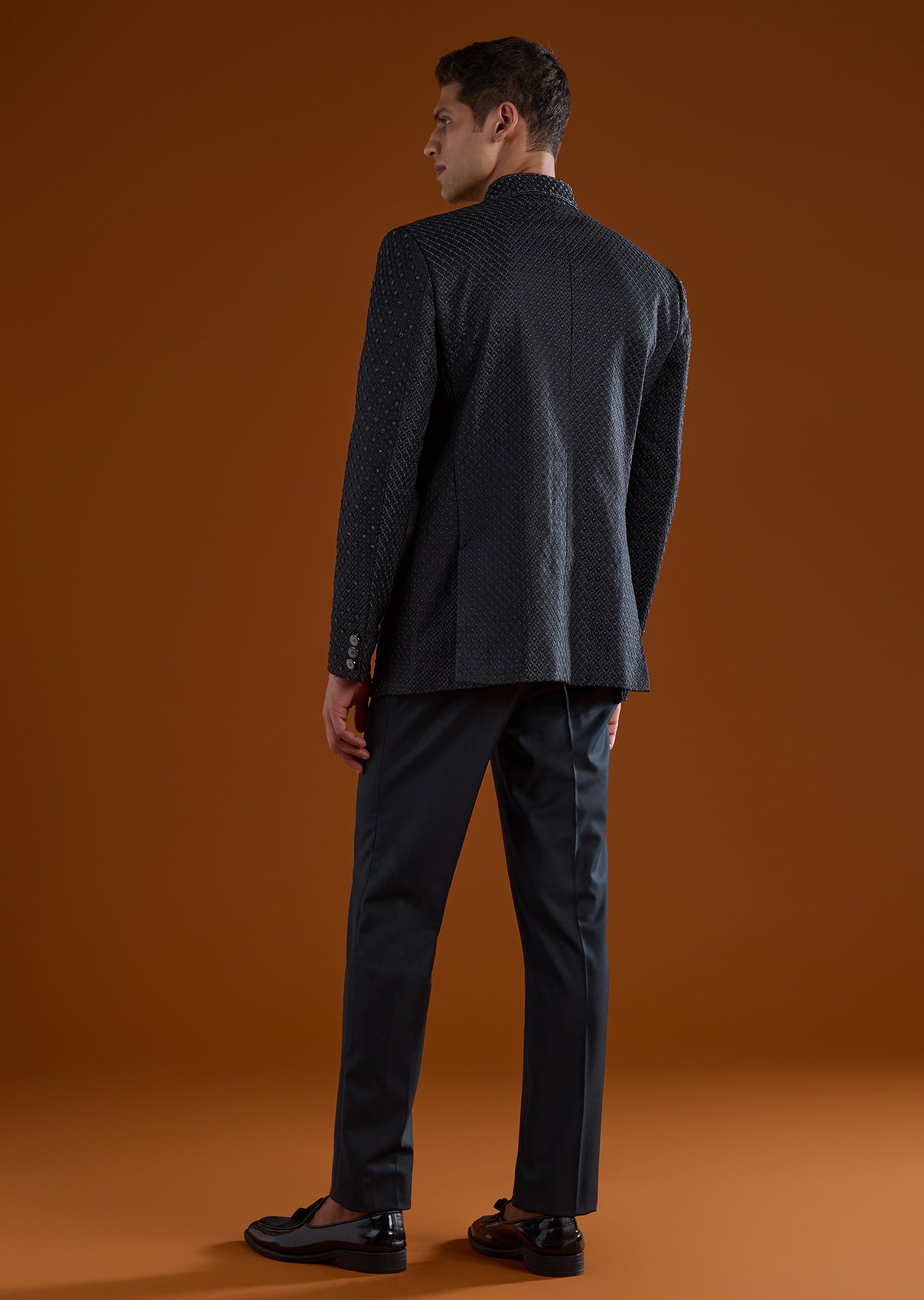 Designed for sangeet and reception celebrations, this blue jodhpuri brings together festive elegance and structured tailoring. Crafted in rayon and elevated with refined bead and thread work, it delivers a... More Product Details
