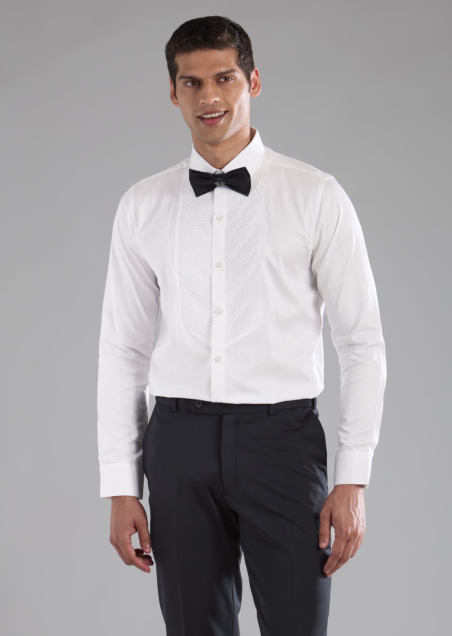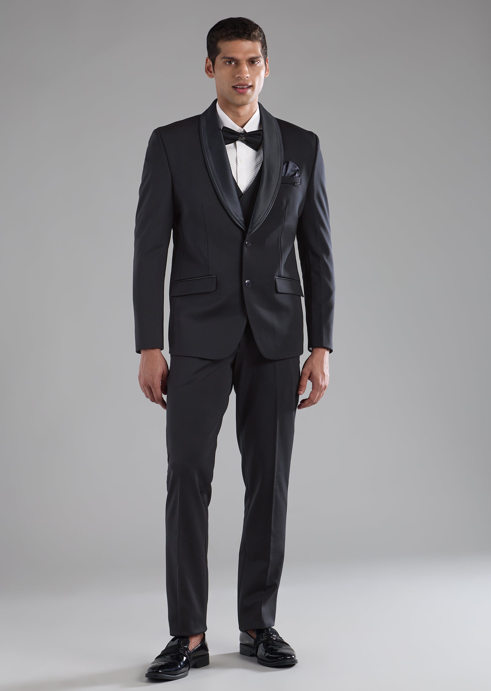 Pair with classic formal shoes and a sleek hairstyle to maintain a sharp, modern tuxedo appearance.