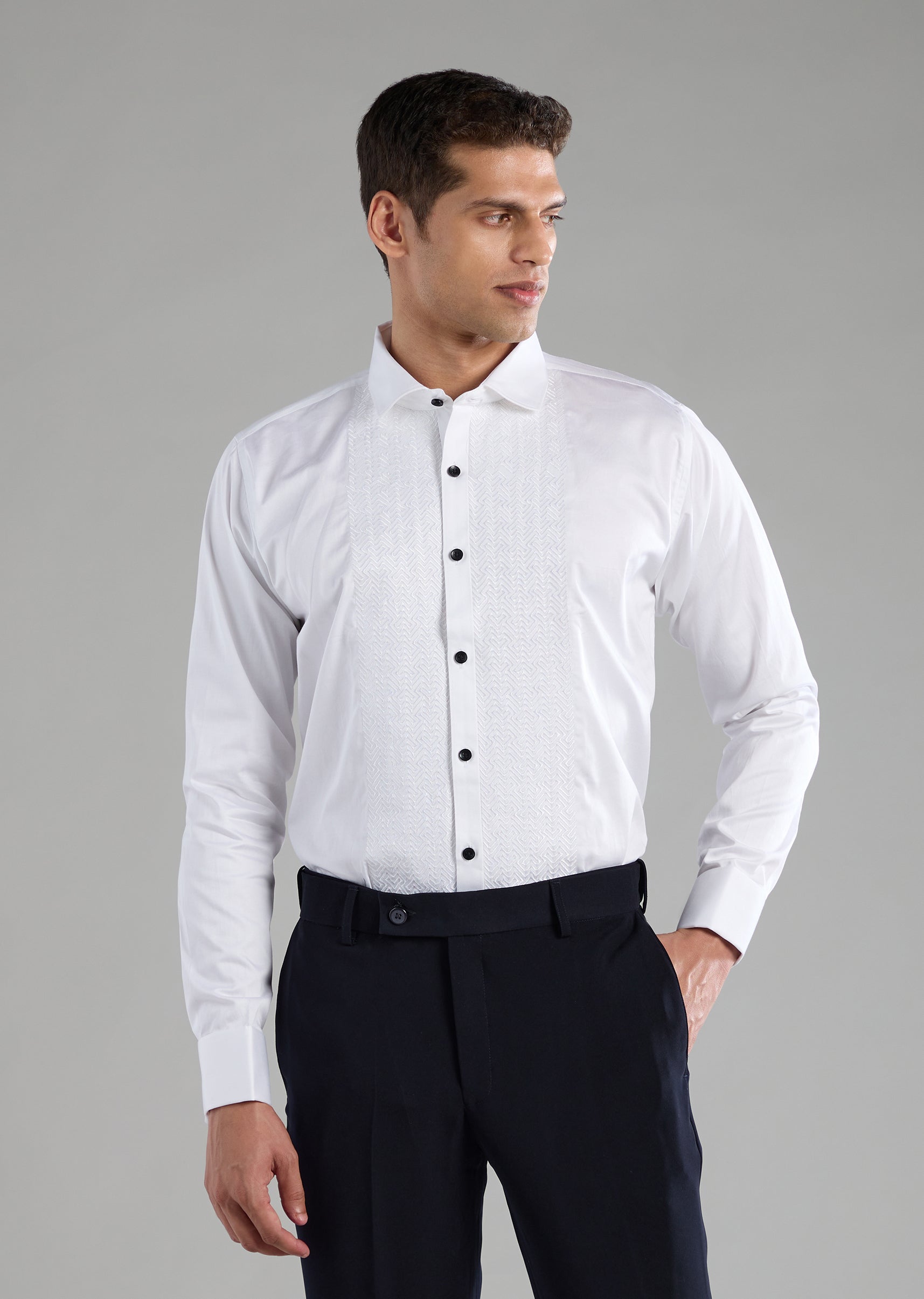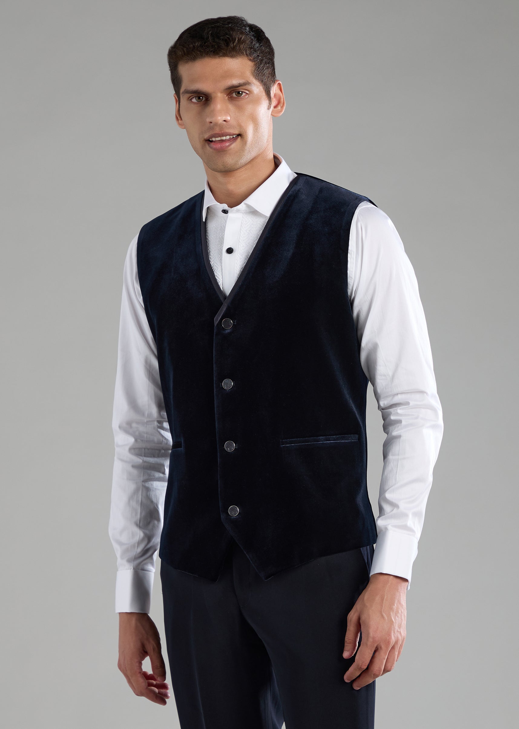 Make a powerful entrance with this impeccably tailored tuxedo set crafted in premium imported fabric and elevated with rich zardosi embroidery. The mandarin collar adds a contemporary royal twist, while the coordinated waistcoat, bow, shirt, and trouser complete the ensemble with polished sophistication. A perfect pick for evening galas, receptions, and high impact celebrations. Awarded as the Most Trusted Brand, we're delivering styles you love, just as promised.