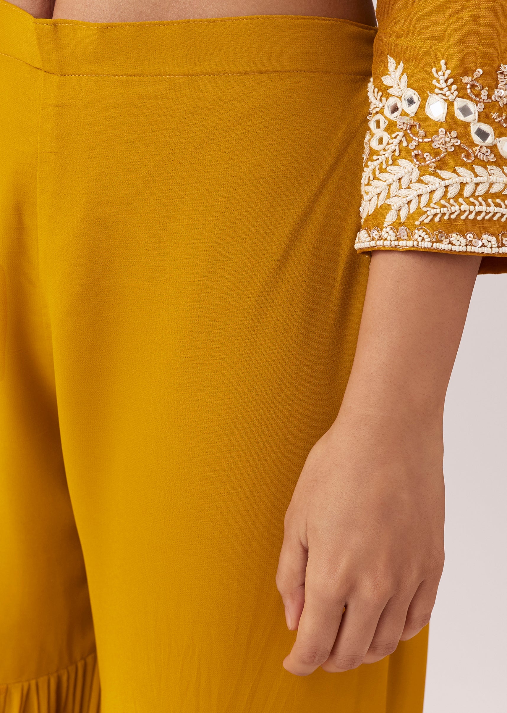 Bright Yellow Sharara Set With Mirror Work